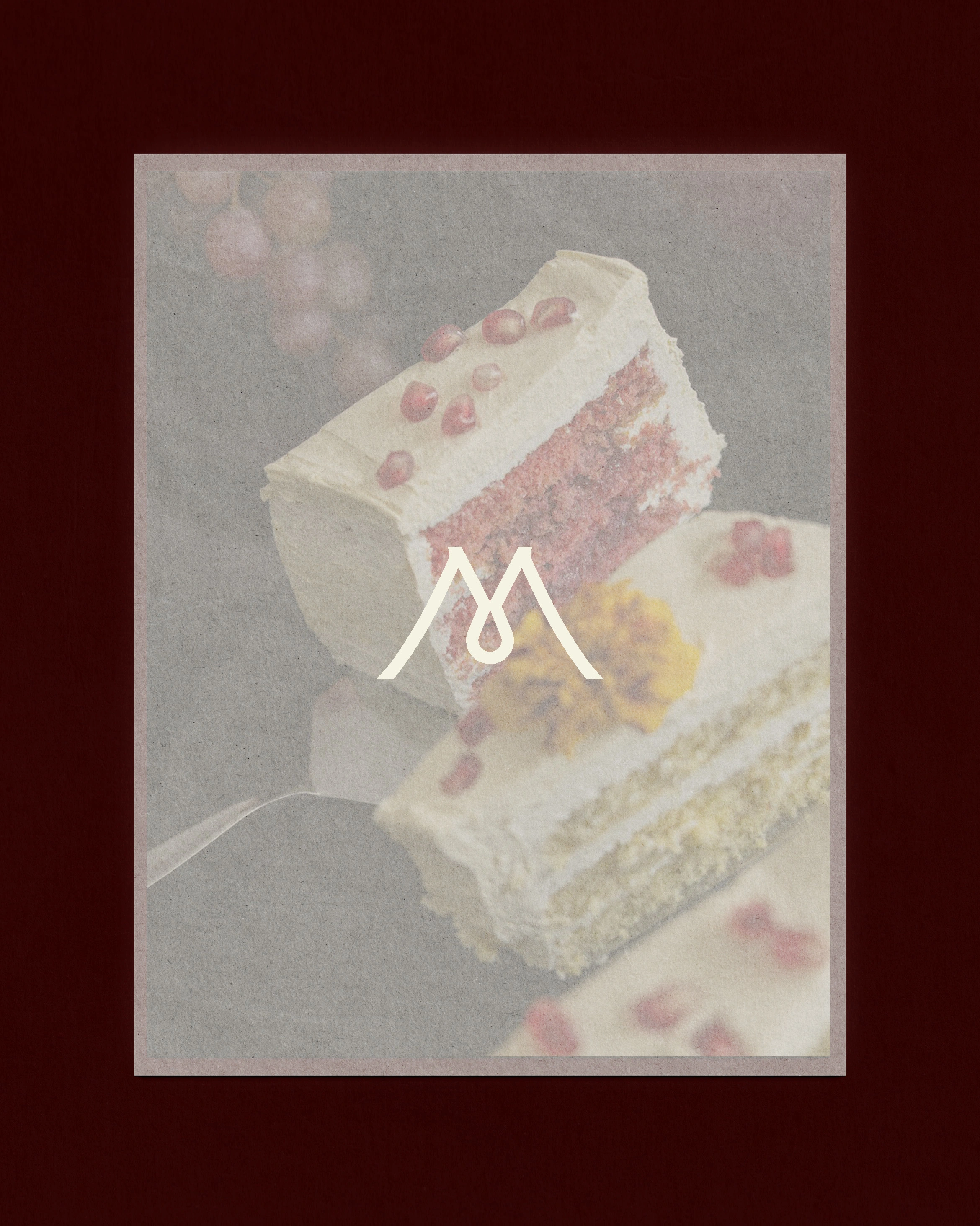 The M monogram holds two things at once. Mountains and a honey drop. Deep burgundy. Refined typography. The kind of visual identity that doesn't introduce itself. It just sits there looking expensive.