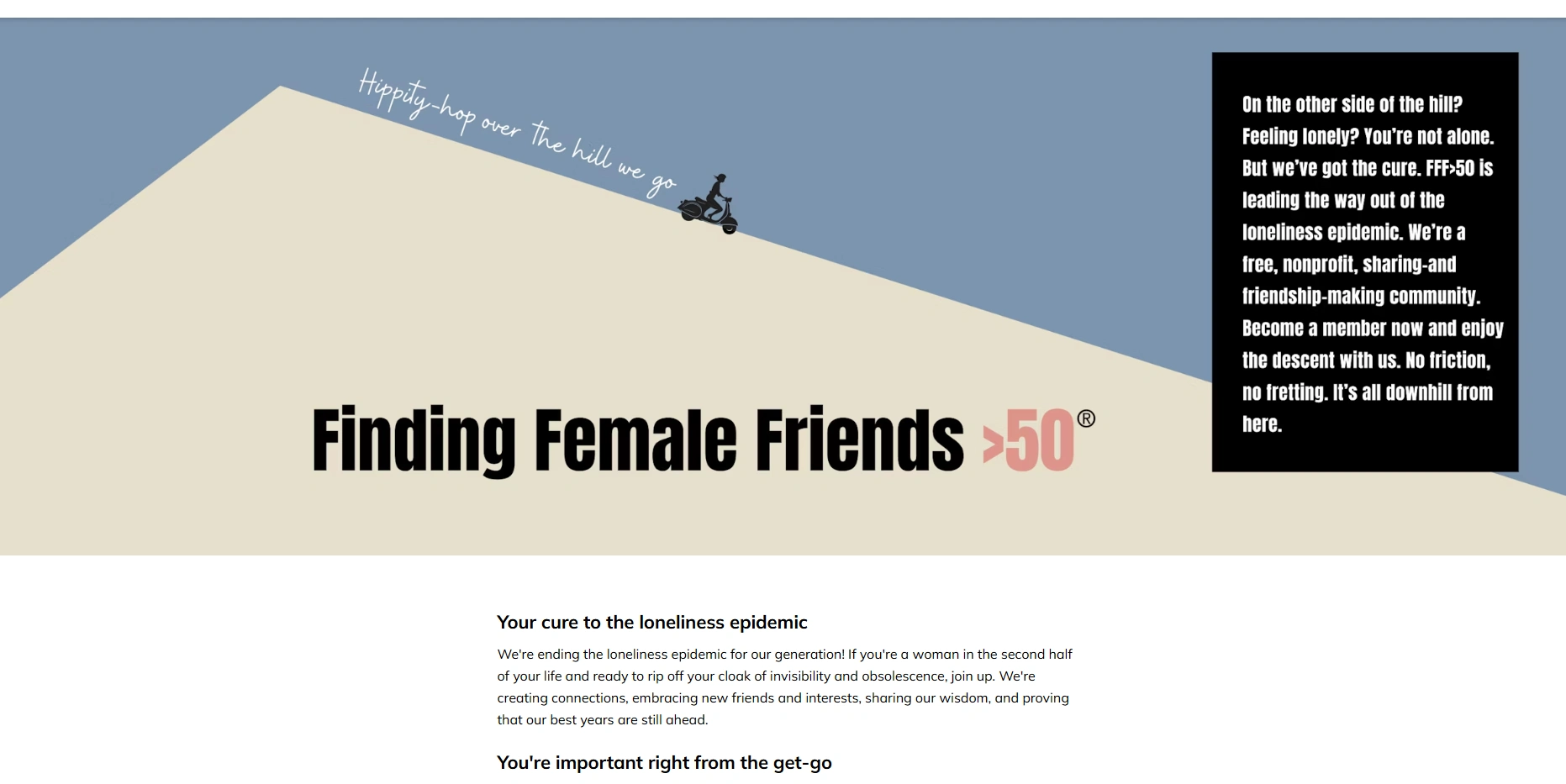 Finding Female Friends Over 50 is a thoughtfully crafted Webflow website designed to create a safe, inspiring, and empowering digital space for women over 50 to connect, share, and build lasting friendships.