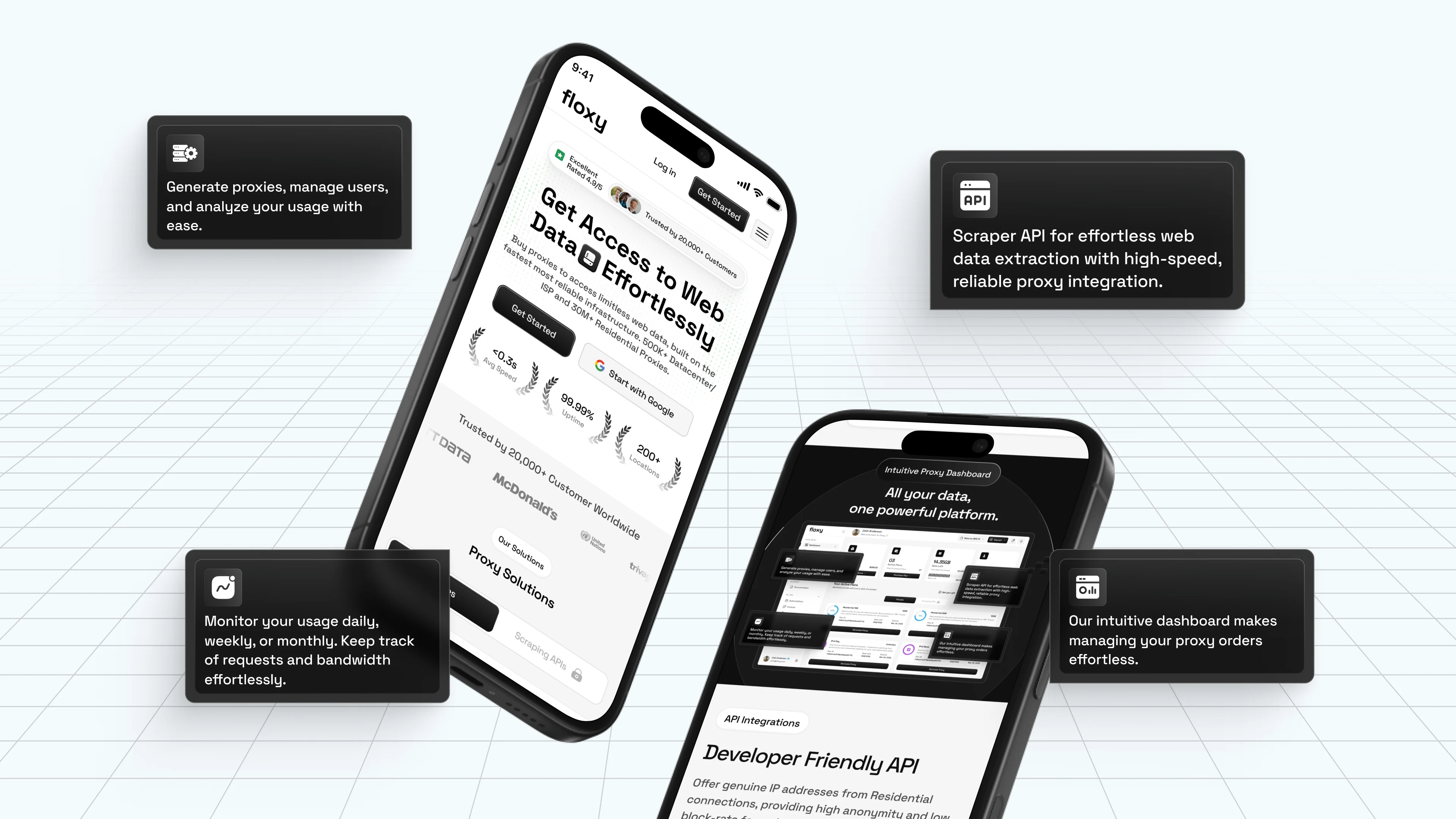 Floxy partnered with us to design their website completely from scratch. As a proxy infrastructure platform operating in a highly technical space, the challenge was to translate complex functionality into a clear, trustworthy, and approachable web experience from day one.