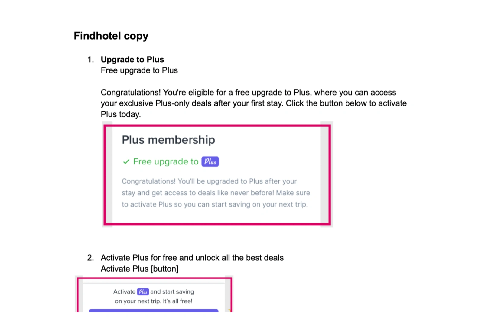 Micro copy for FindHotel/Vio. I used Miro for the mockups of the interfaces and data flows to produce copy that converted and ultimately made sense to the user.