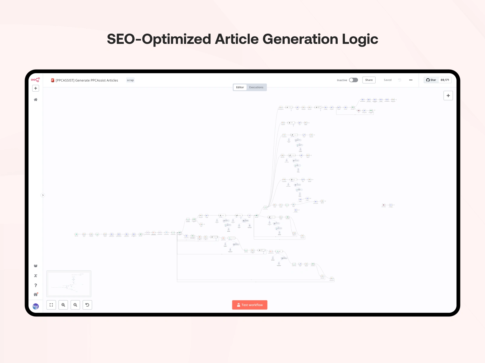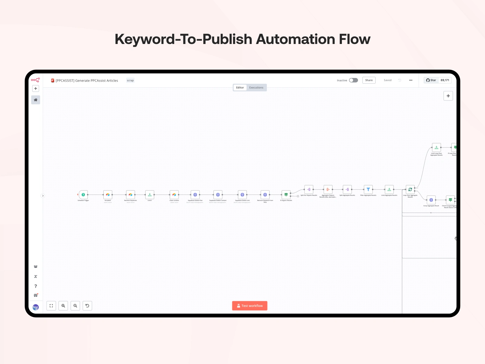 The goal was to build a fully automated, AI-driven content system that could generate high-quality, SEO-optimized blog posts from a single keyword—while naturally incorporating product mentions for ppcAssist without sounding promotional.