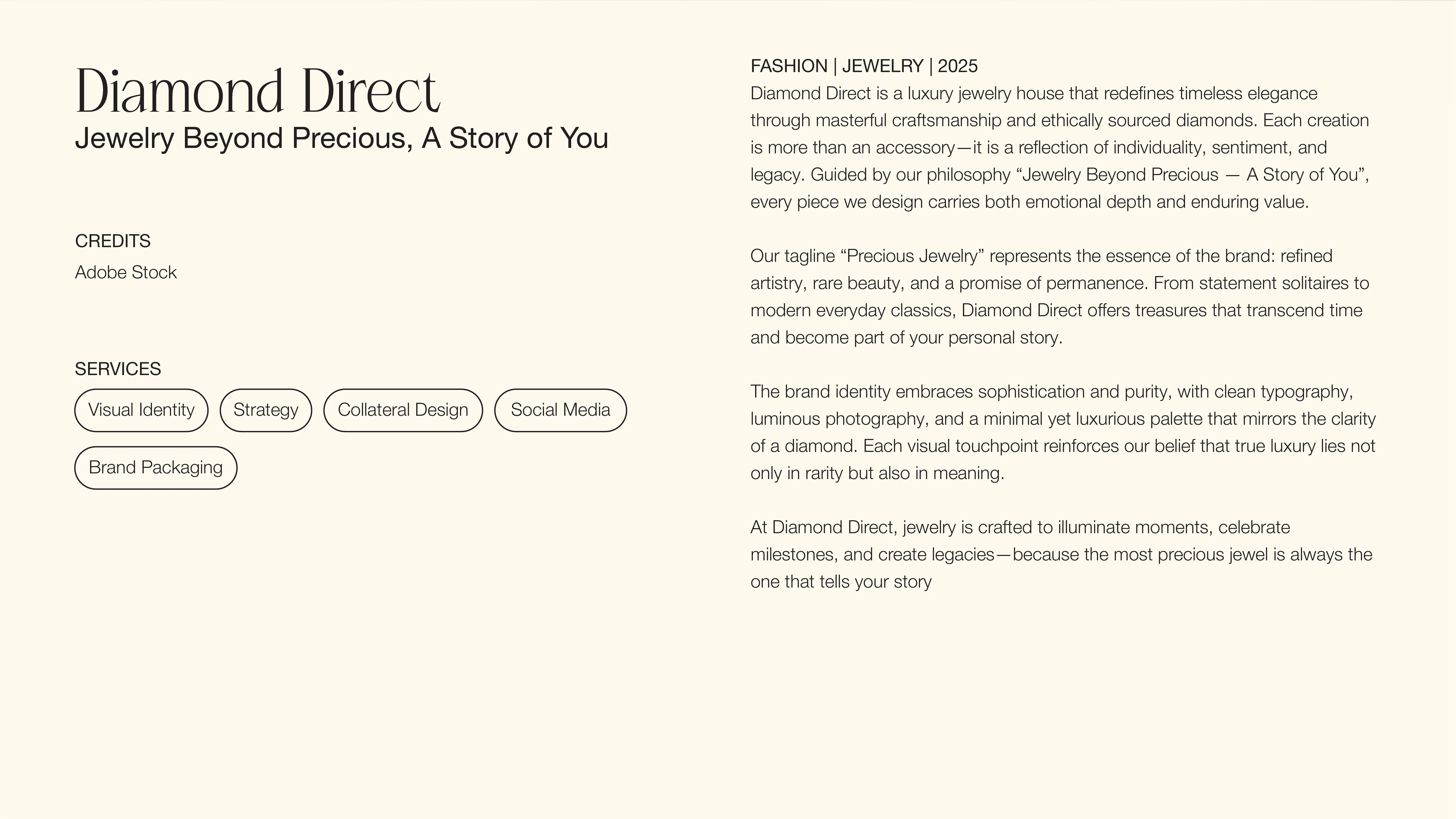 Color Psychology: We defined a palette that balances opulence with modernity. ( Note: Based on the kit, mention specific colors here, e.g., "The use of deep charcoal and metallic gold creates a sense of premium exclusivity, while the ample white space suggests clarity and transparency." )
