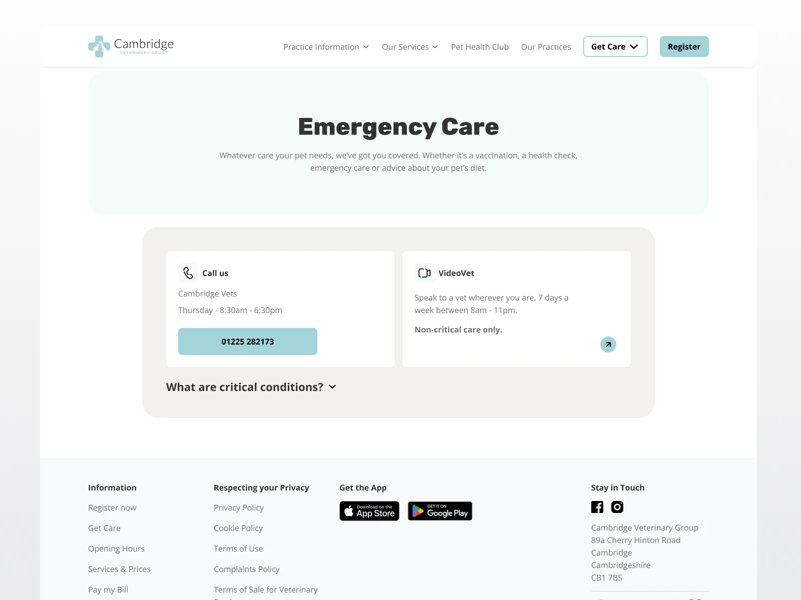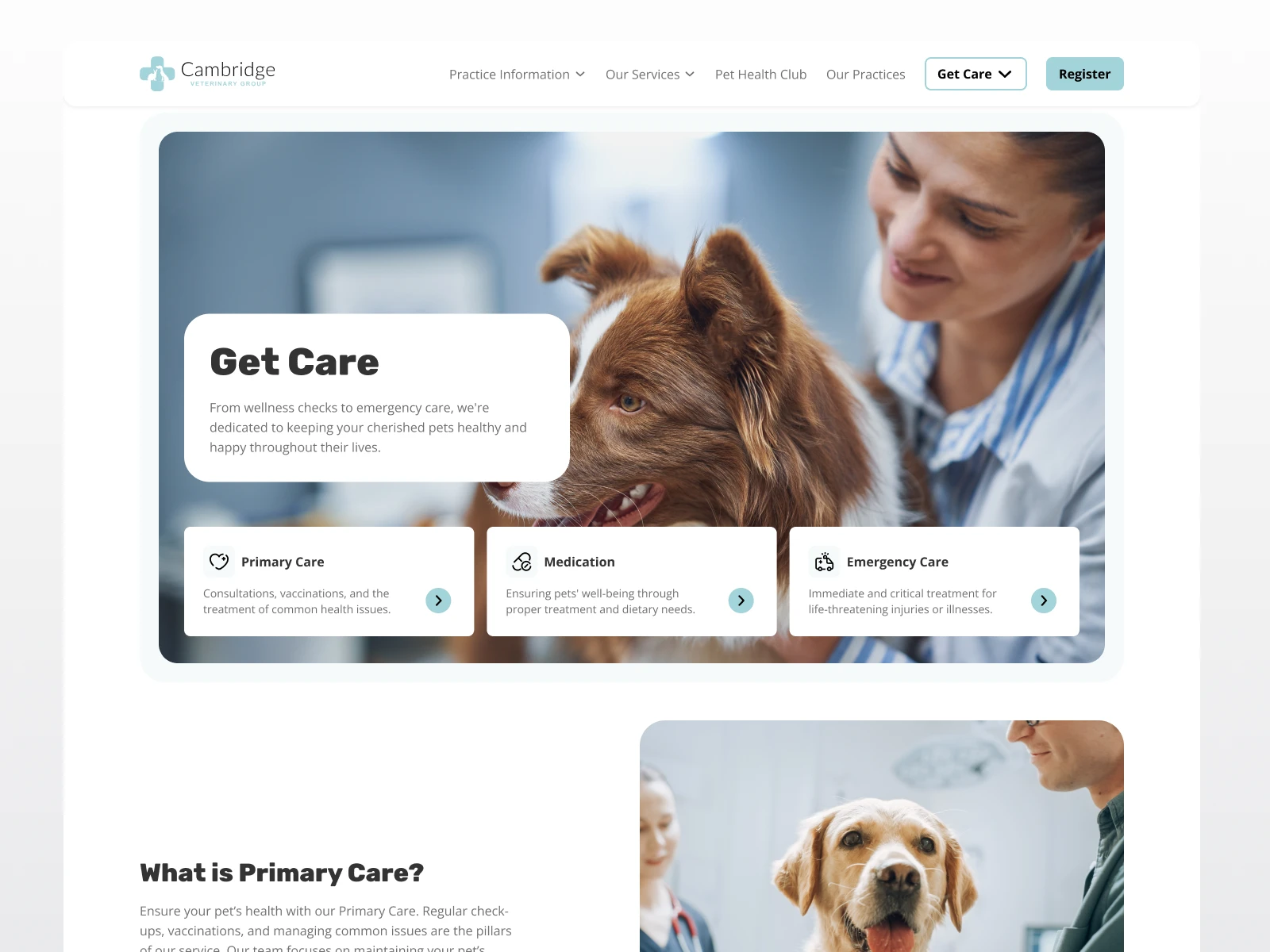 Over time, their practice website template had become bloated and confusing. Pages were added for niche tasks that only a handful of clients needed, burying the core Jobs To Be Done (JTBD). As a result, pet owners found it harder to carry out simple tasks like registering a new pet, booking an appointment, or understanding the costs of care.
