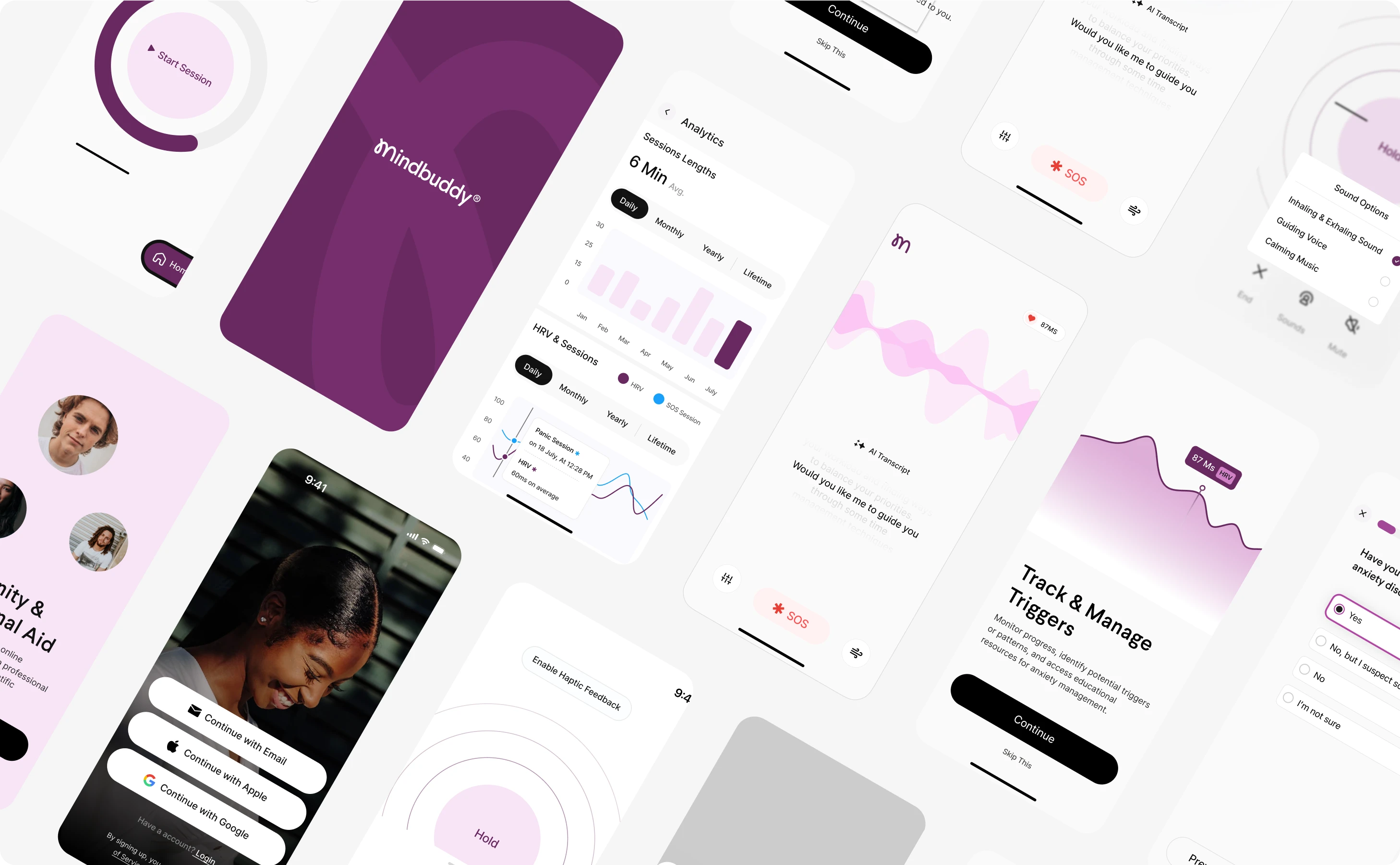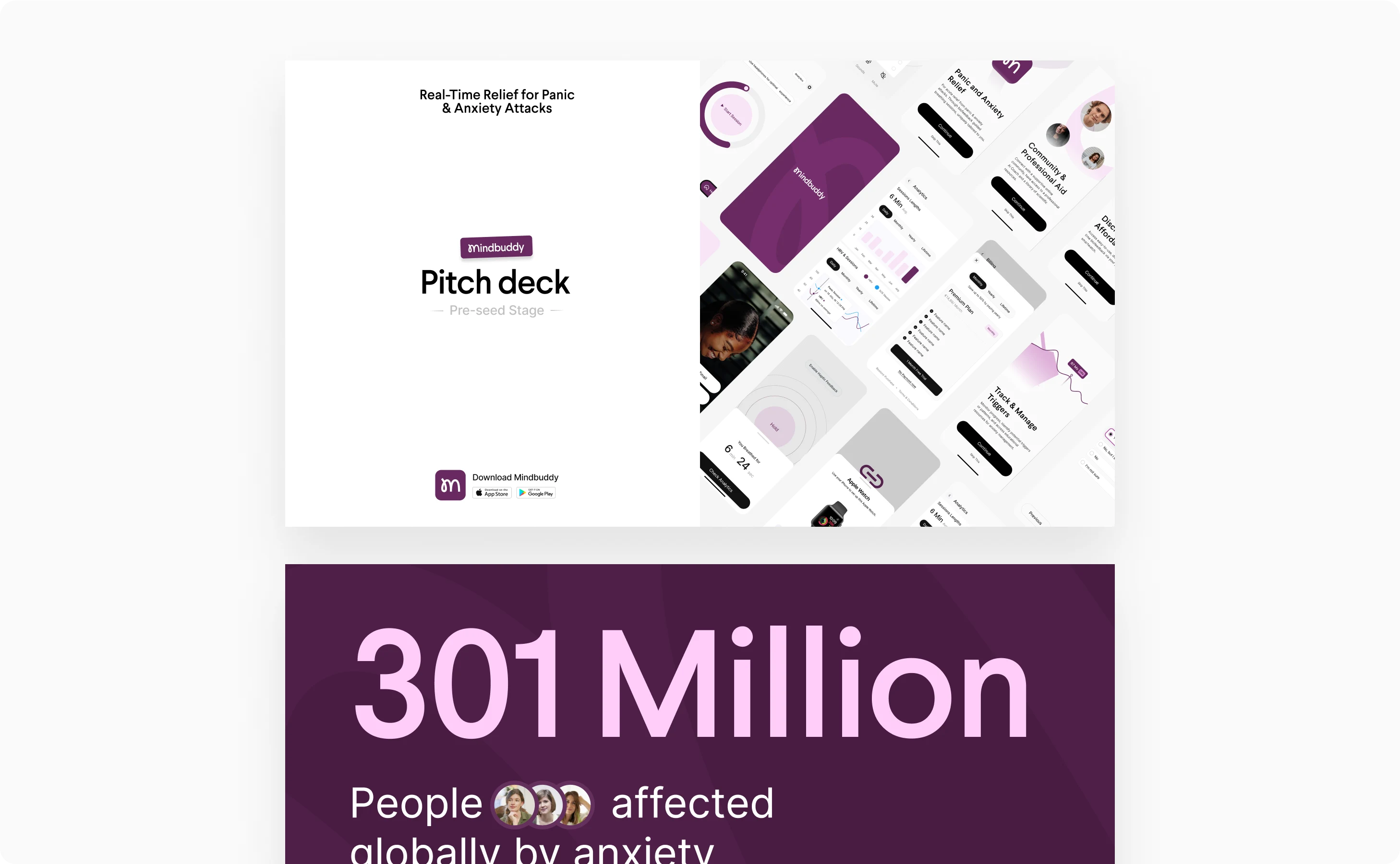 Product design, branding and pitch deck for mindbuddy - a healthtech start-up coming out