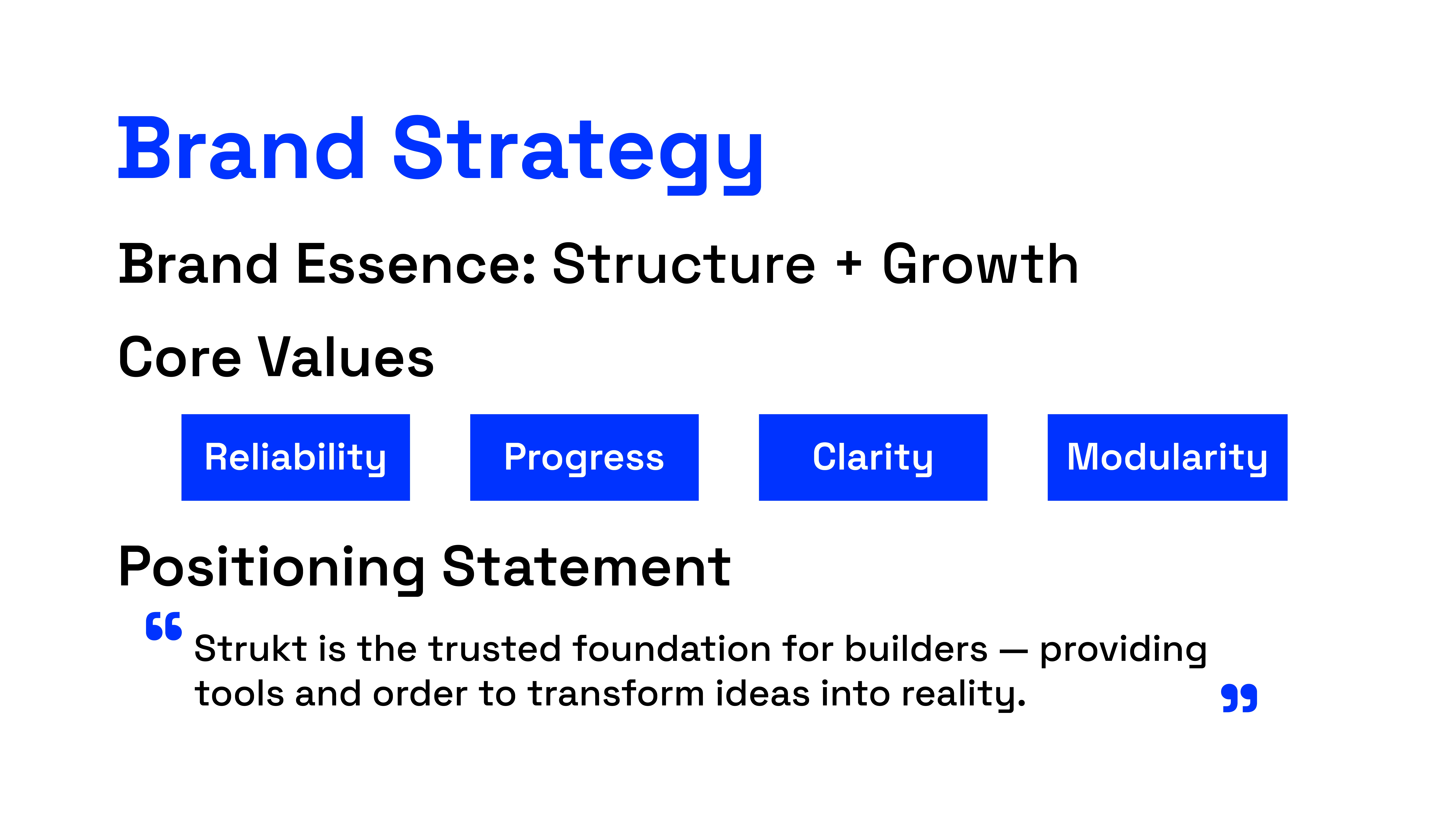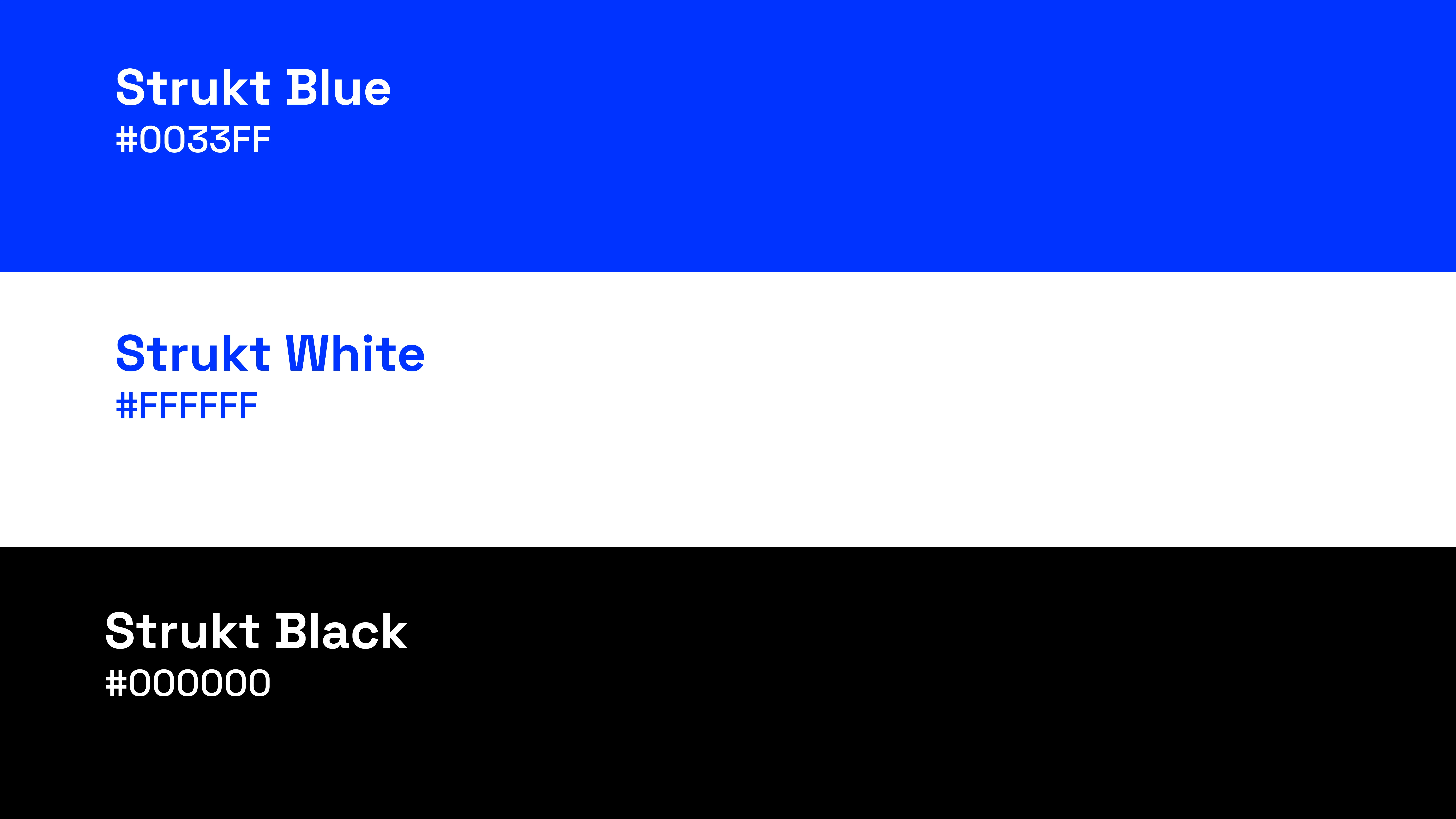 Strukt Blue (#0057FF): Bold, innovative, energetic.