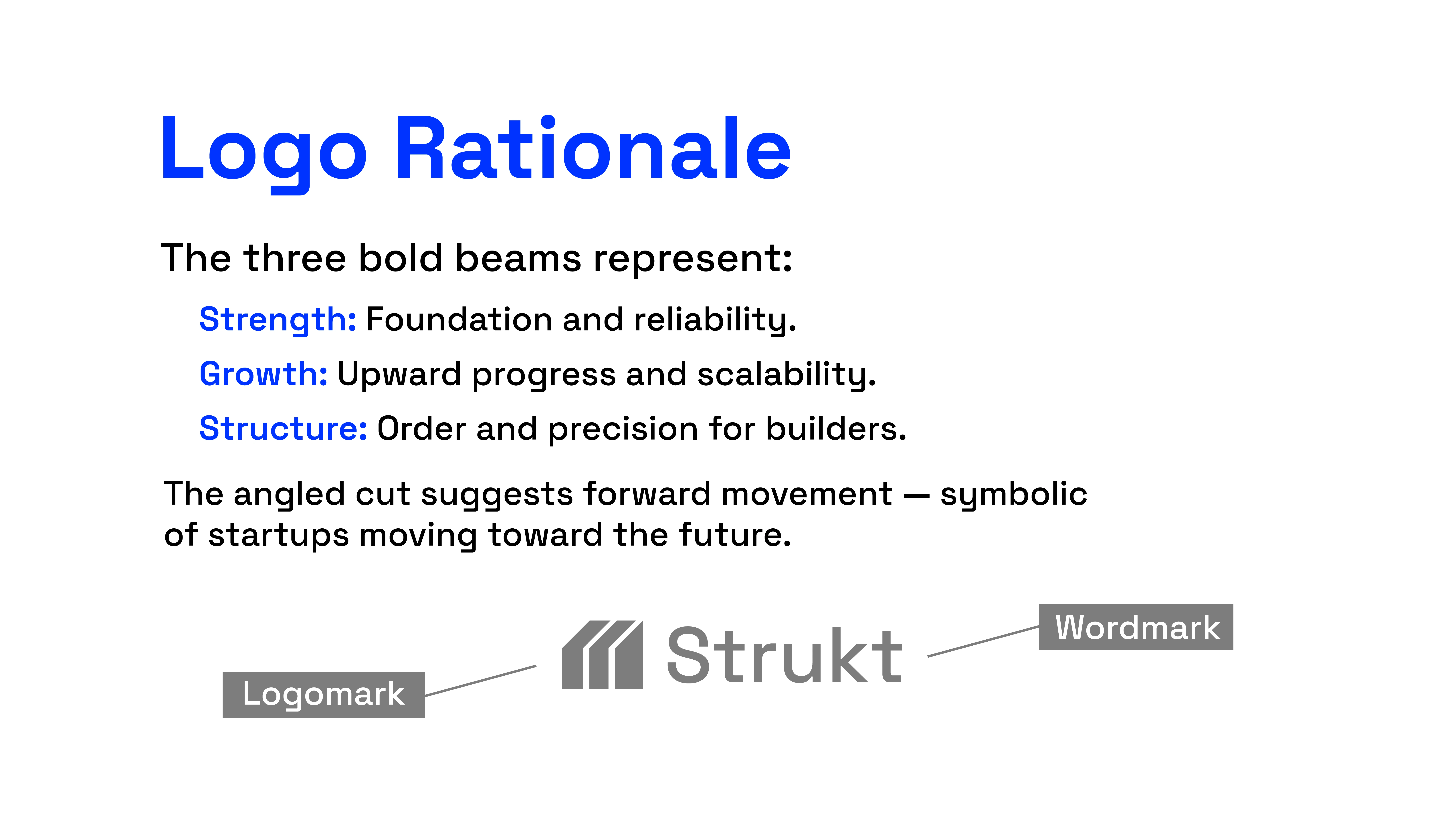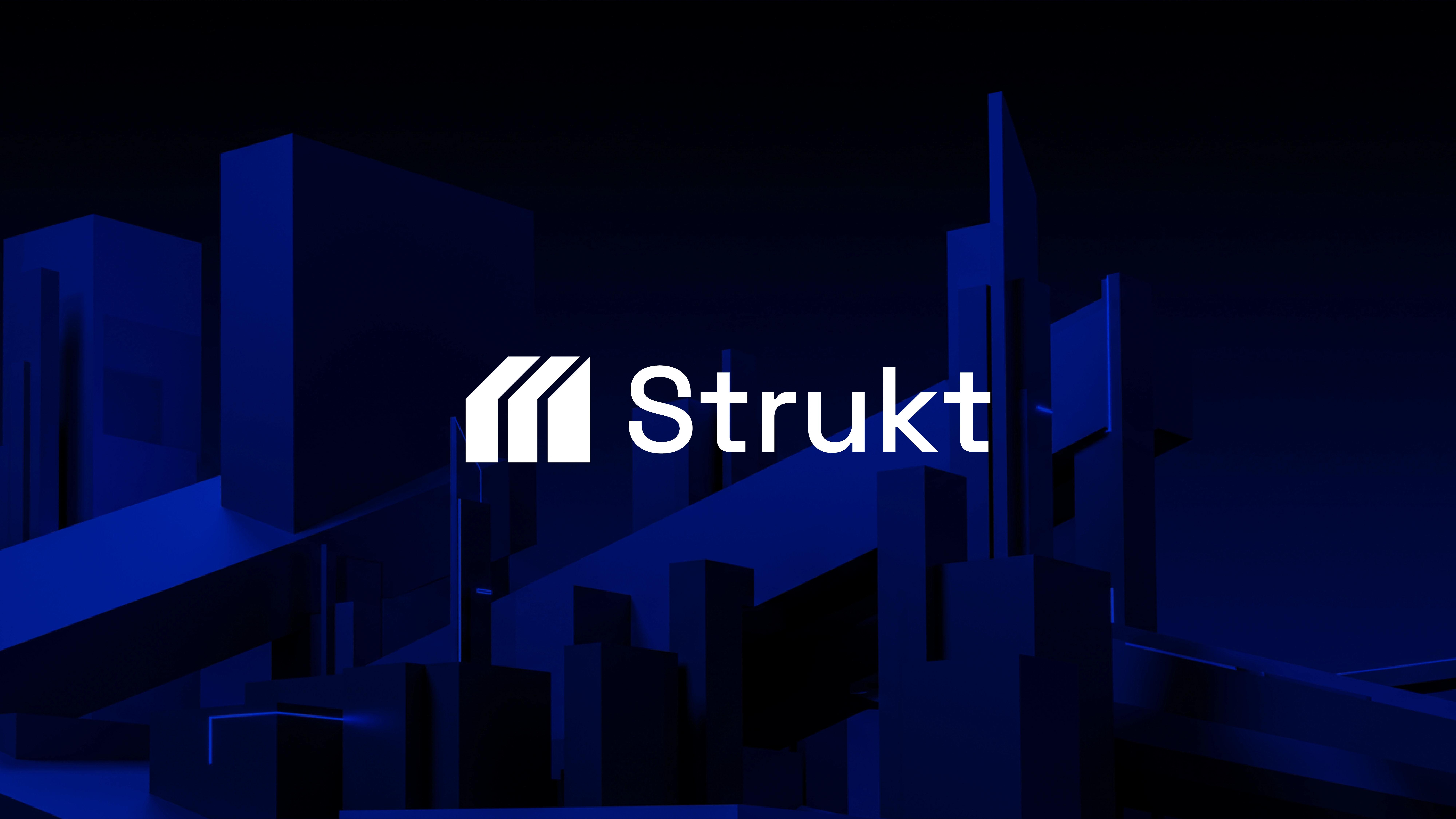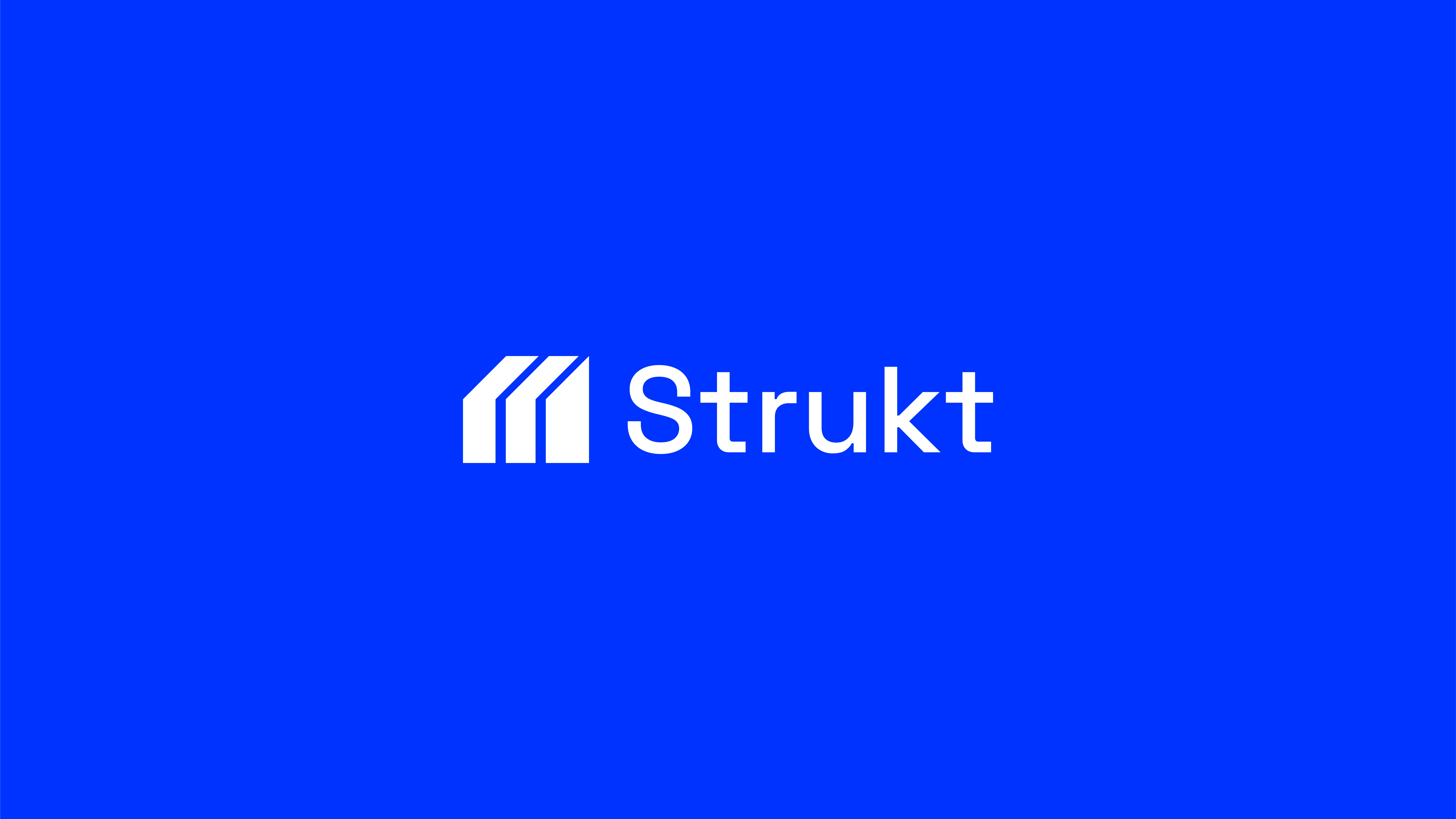 Strukt final logo is a bold wordmark supported by a modular symbol.