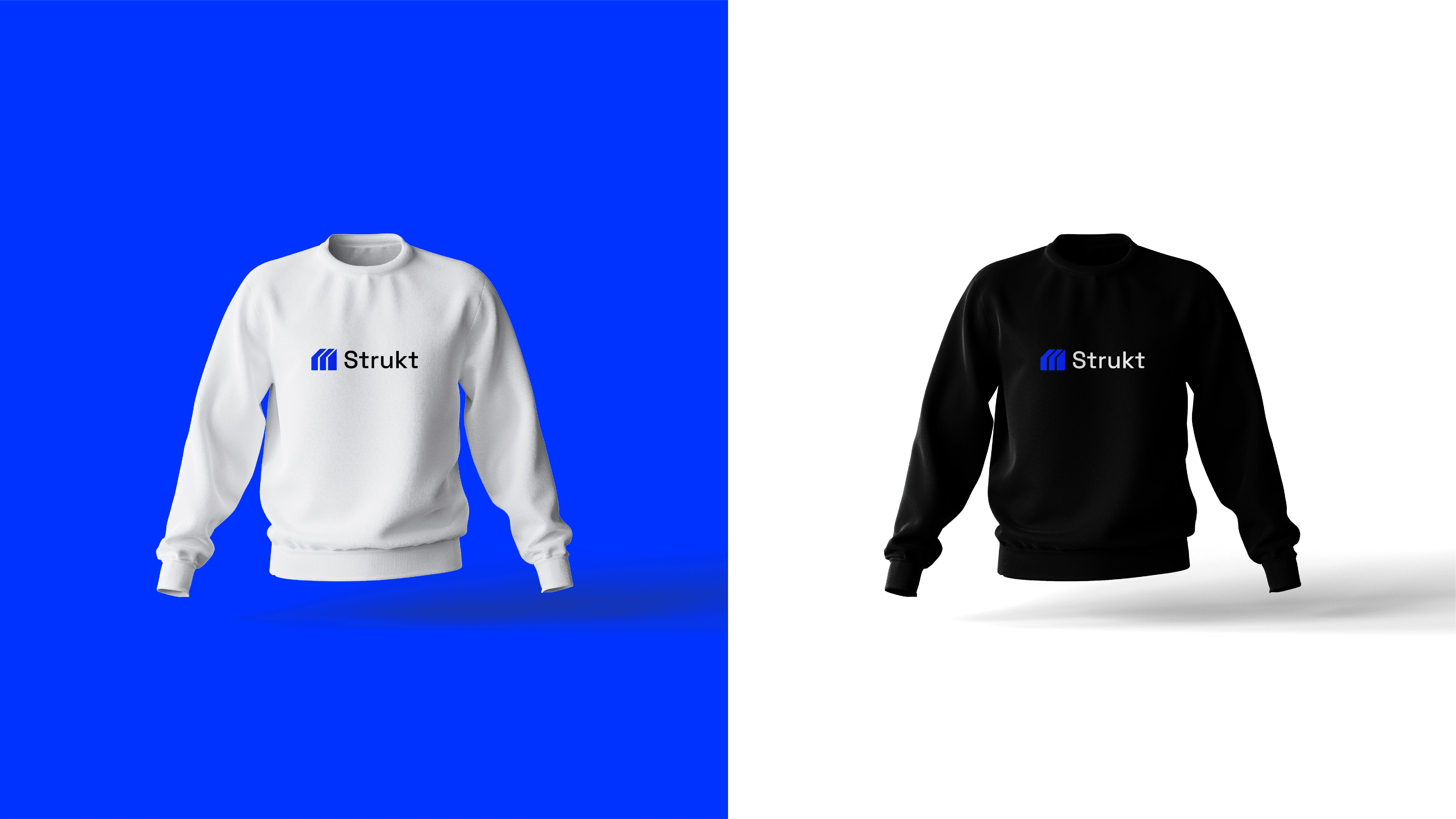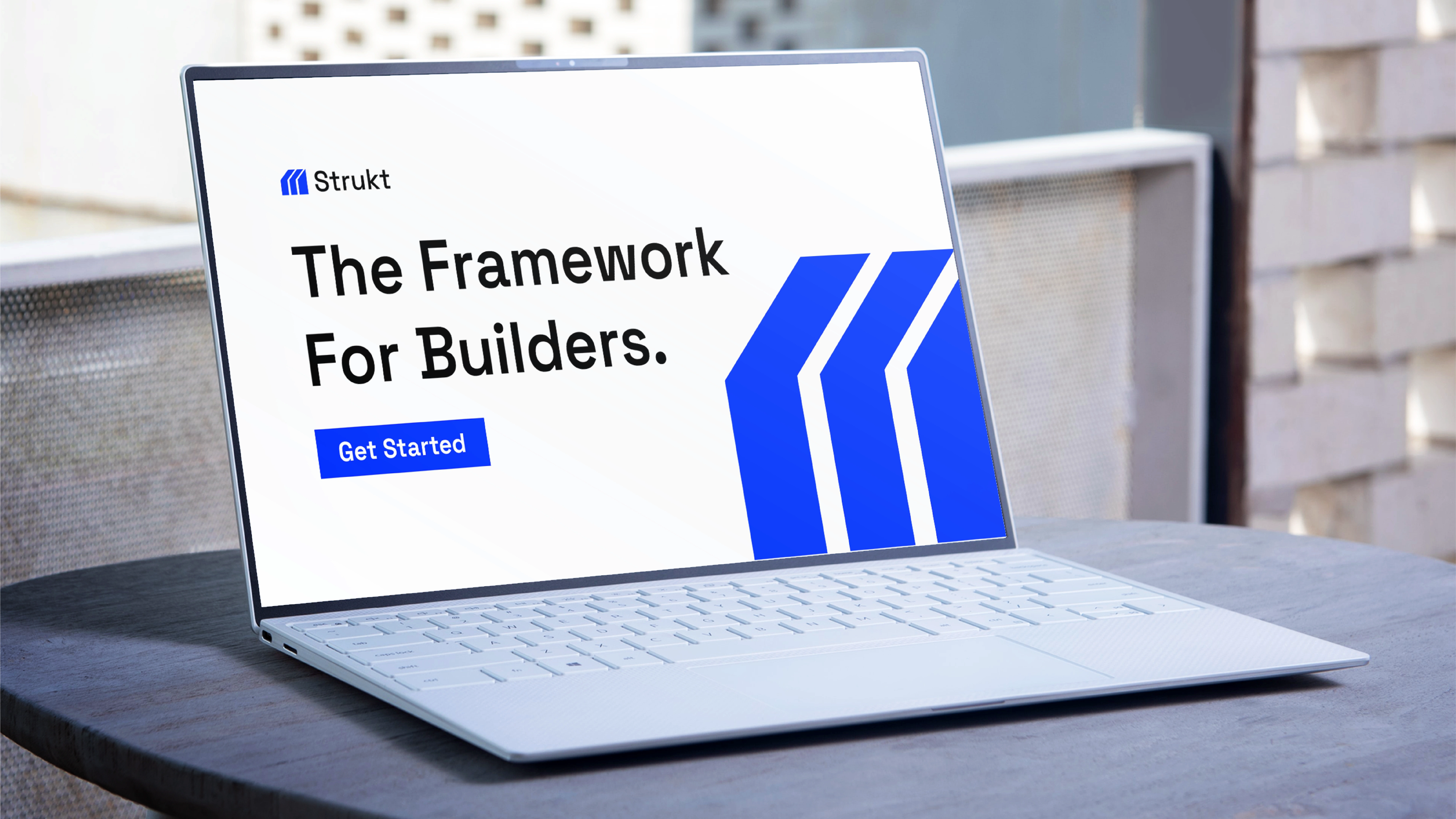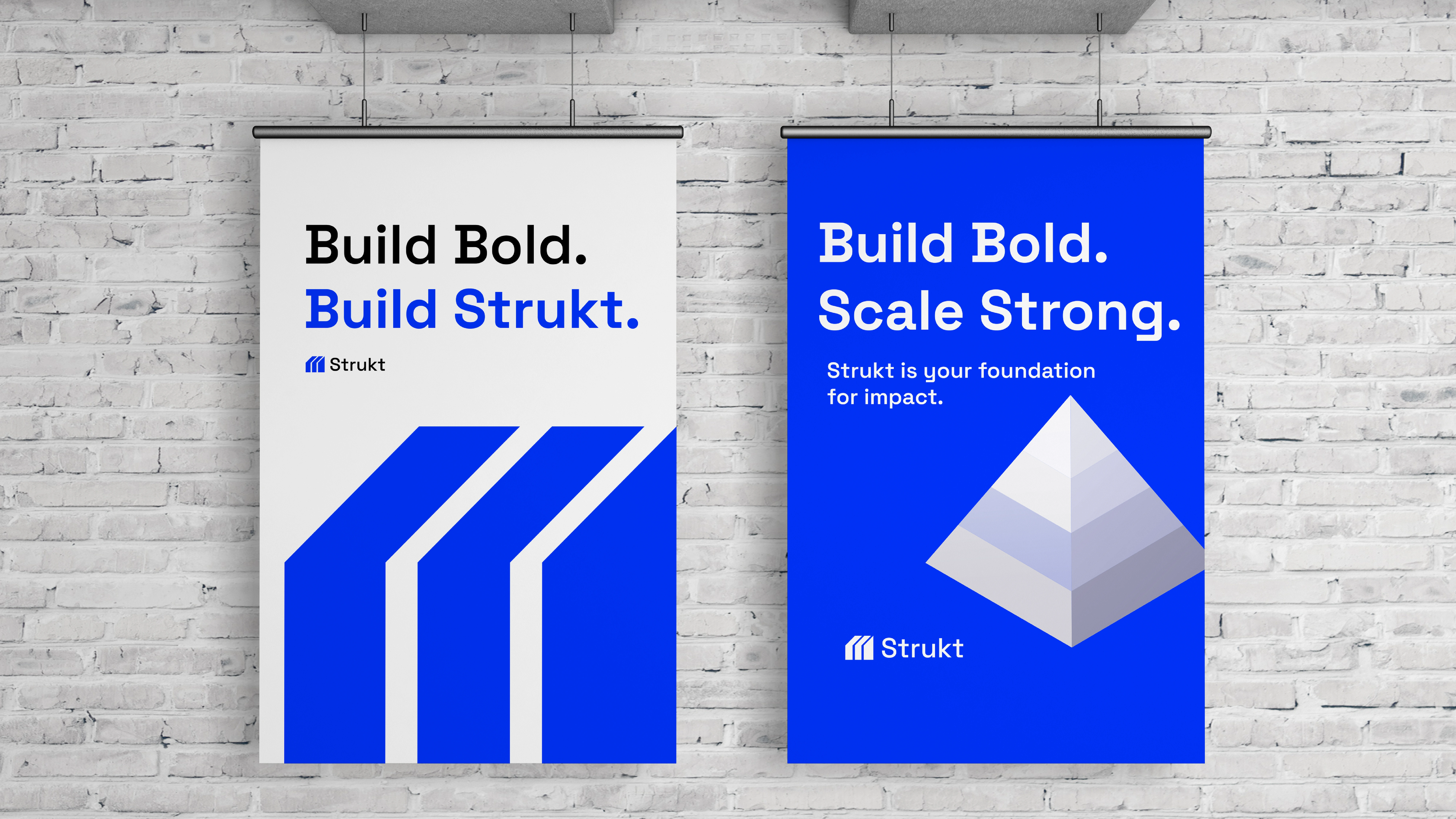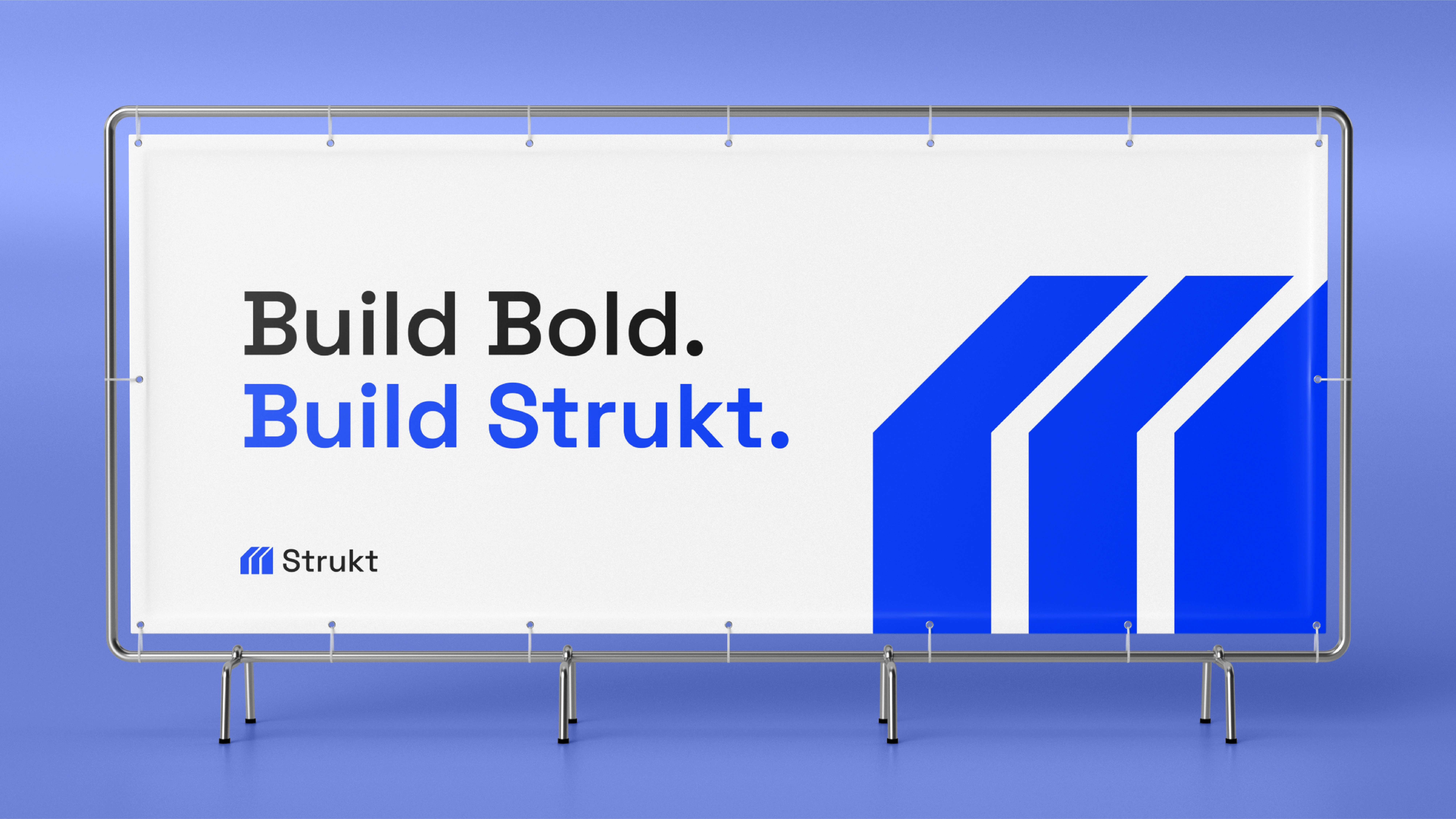 Strukt final logo is a bold wordmark supported by a modular symbol.
