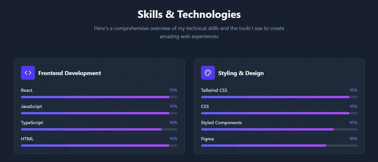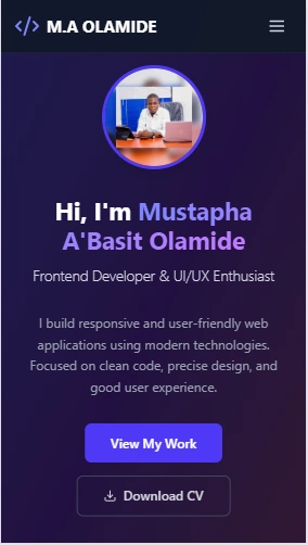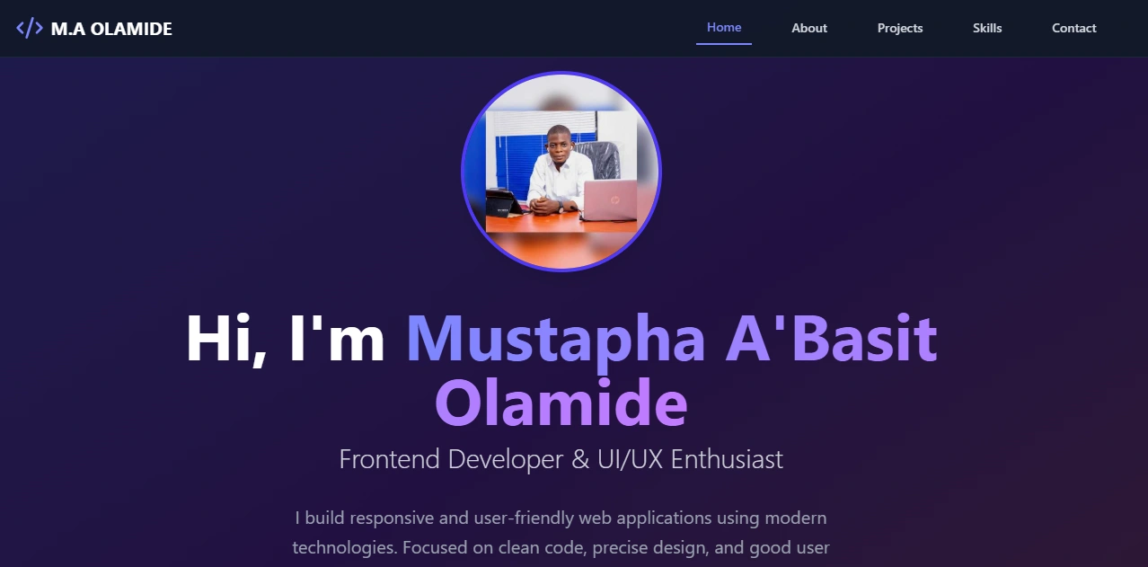 A sleek and responsive portfolio website designed to showcase my frontend development skills. Built with React and Tailwind CSS, the site emphasizes simplicity, speed, and usability.