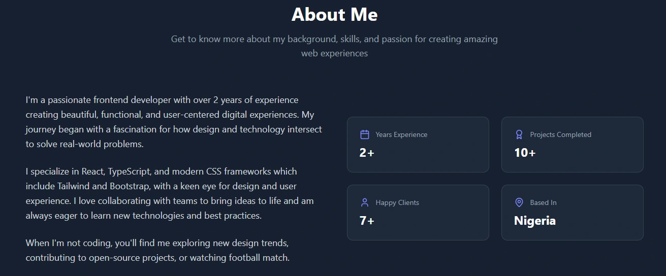 The final product provides a professional and engaging digital presence that reflects both technical competence and design awareness.