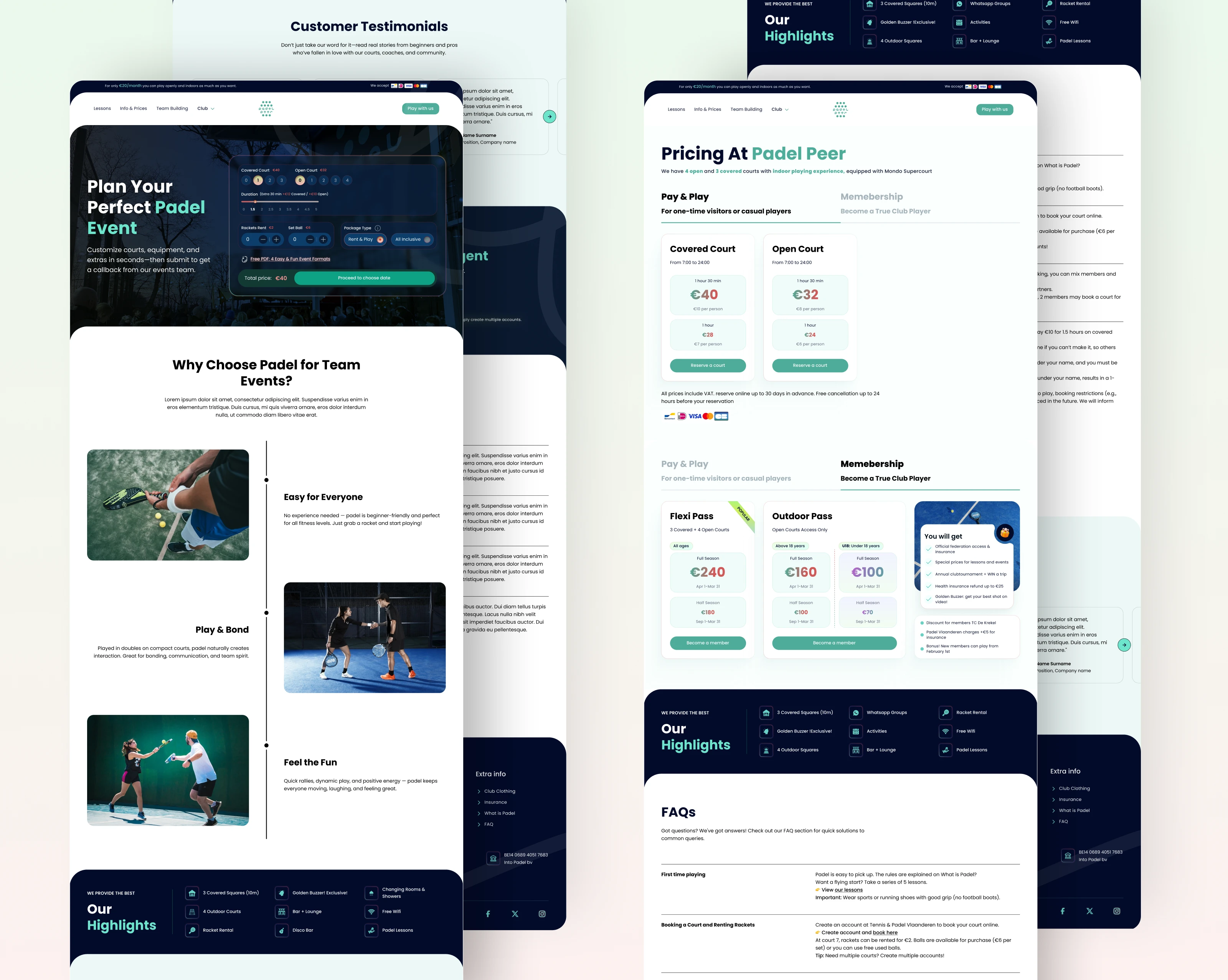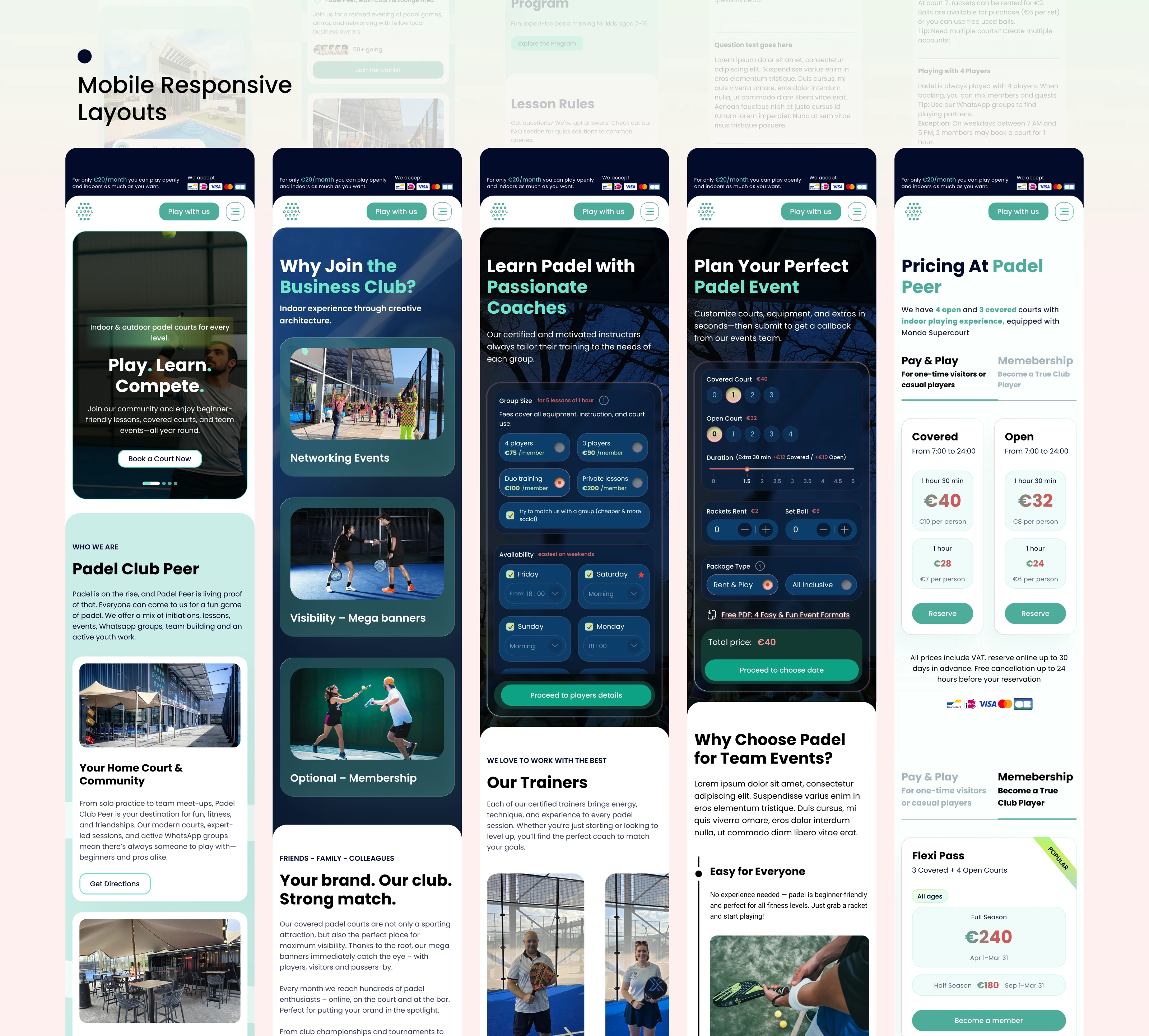 This redesign took the existing Padel Peer digital presence and elevated it into a more efficient and visually engaging booking hub. By diagnosing the friction points in the original UI and deploying a focus-driven carousel and responsive design system, I delivered a platform that more effectively supports the club’s community and revenue goals.