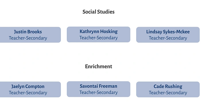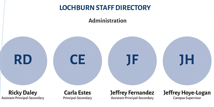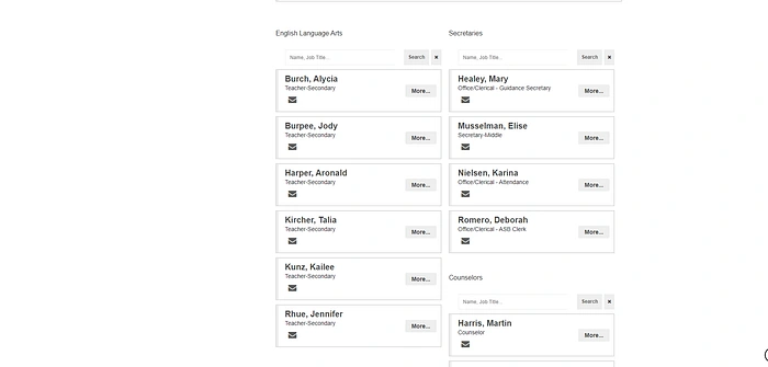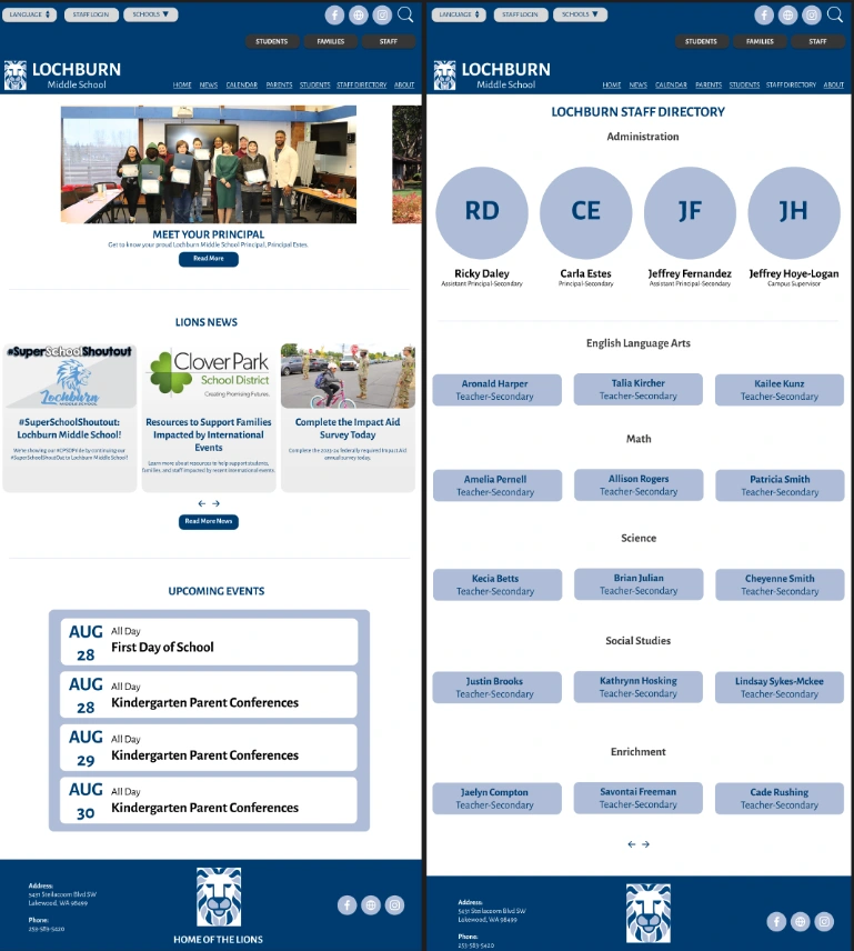 The second page, the Staff Directory, was probably the most challenging. This was mostly due to the sectioning. I decided to use circular profiles at the top, similar to what I’ve seen businesses do in the private sector. I kept the administration profiles above the fold with the option to add photos.