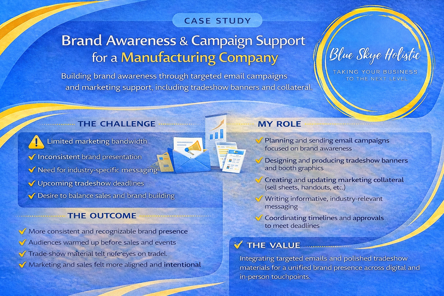 Created targeted email campaigns and trade show materials to help a manufacturing brand build recognition, trust, and momentum across channels.