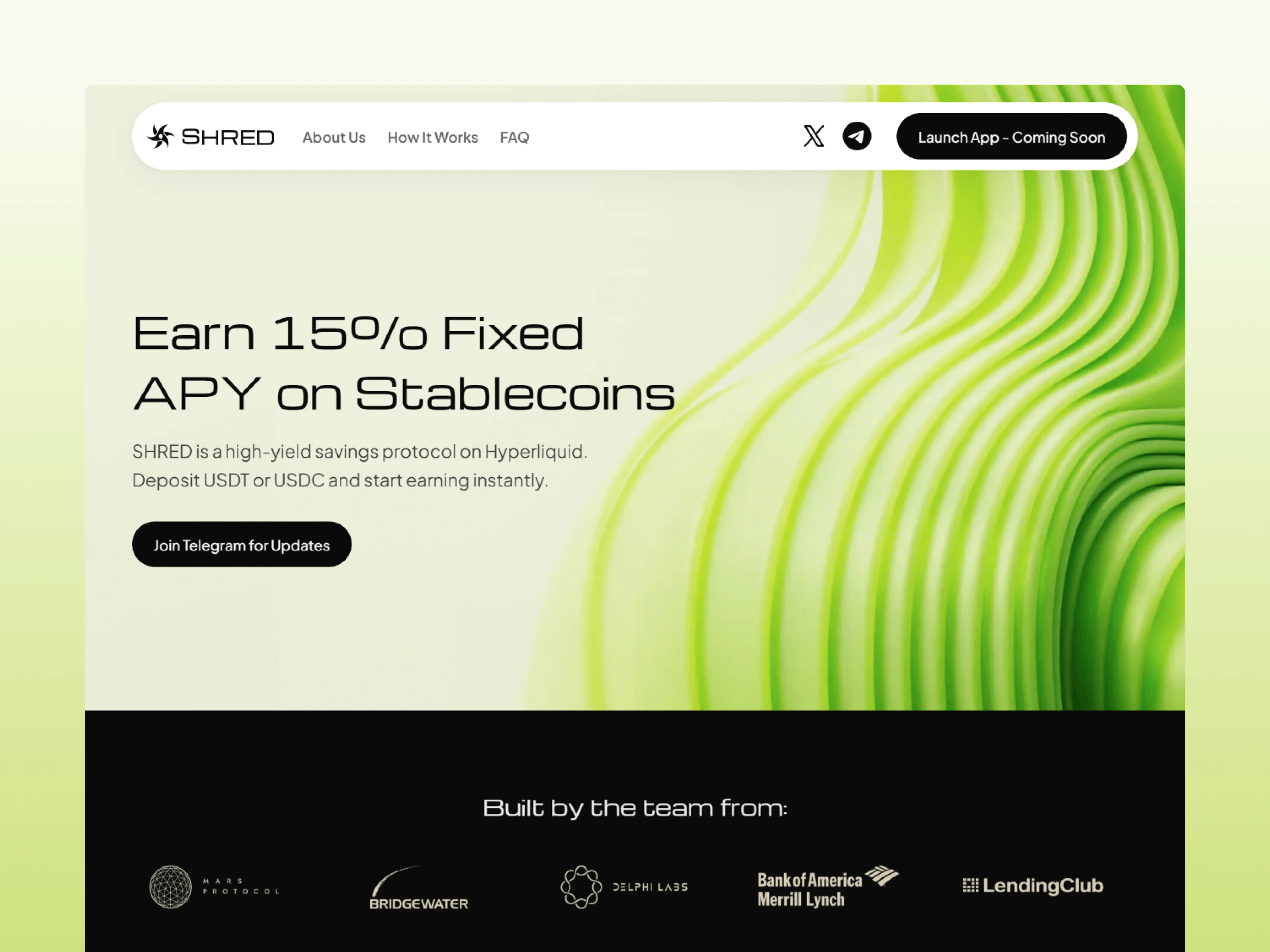 SHRED is a high-yield savings protocol designed to help users earn sustainable, real yield on stablecoins like USDC and USDT through delta-neutral strategies. By leveraging cross-chain arbitrage and automated vaults, the platform aims to provide a target 15% APY while maintaining asset safety and instant transparency for its users.