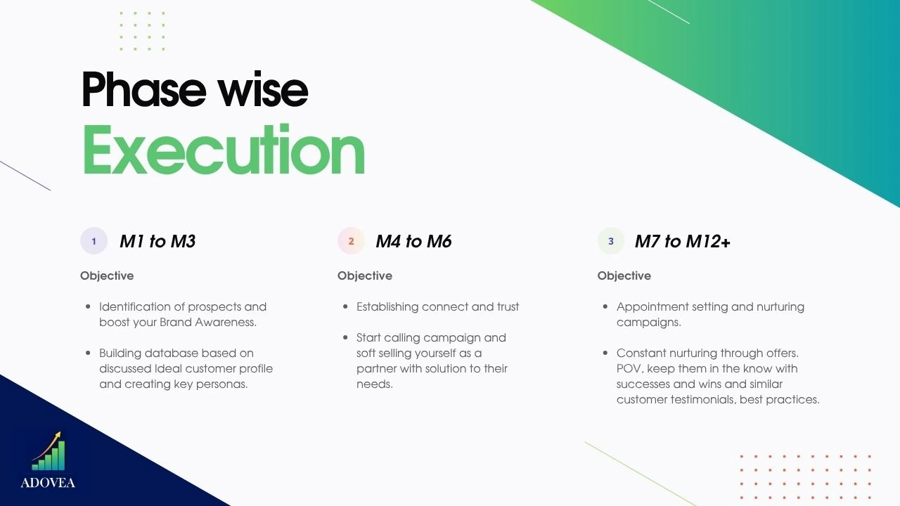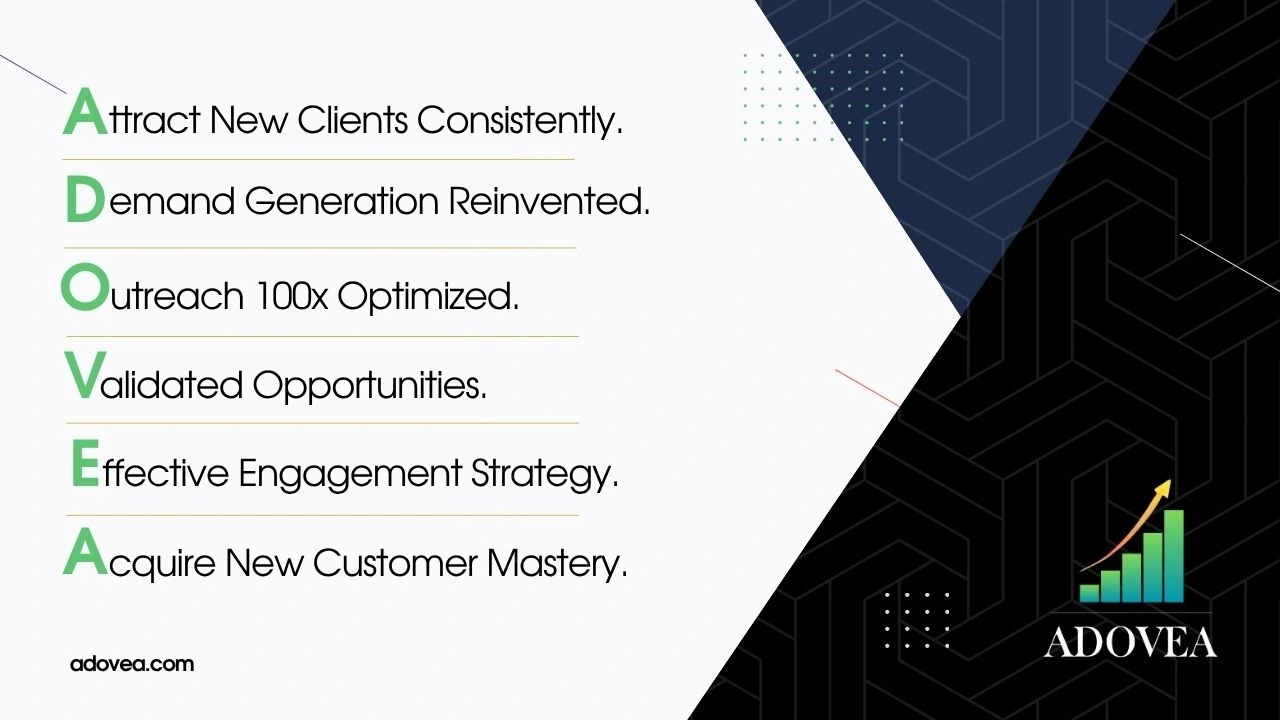 Adovea needed a formal, purpose-driven PDF deck outlining outbound service offerings targeting B2B prospects. Brand Blinks Global (BBG) handled the entire workflow, from strategic structuring to visual execution.