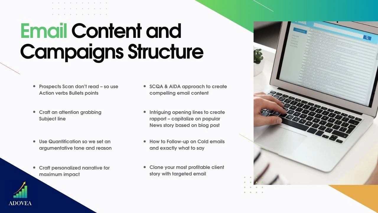 Mapped Adovea’s outbound messaging goals