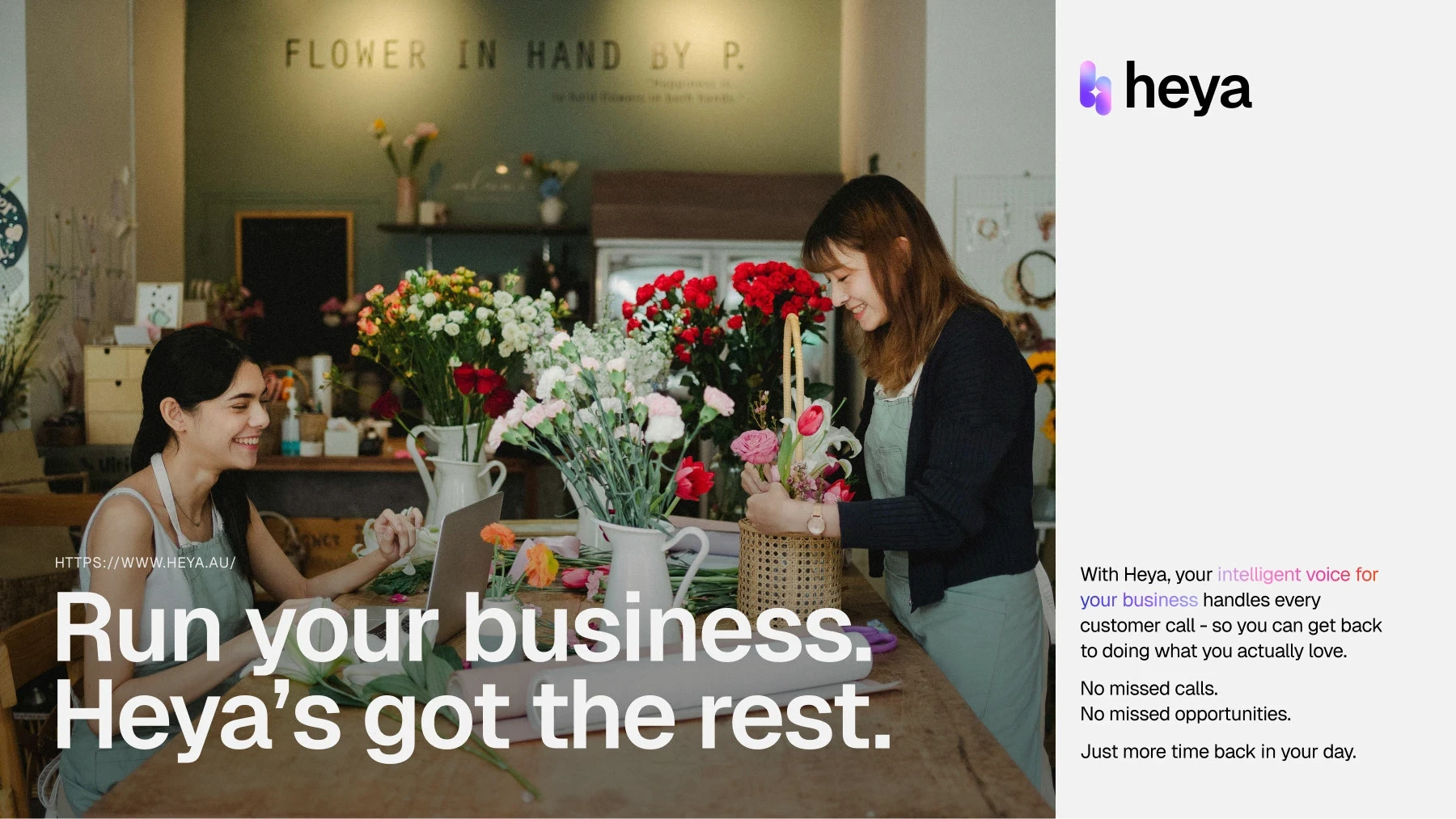 Heya is Australia’s first AI voice assistant built for local small and medium businesses. Born to bridge the gap between advanced AI and everyday business.