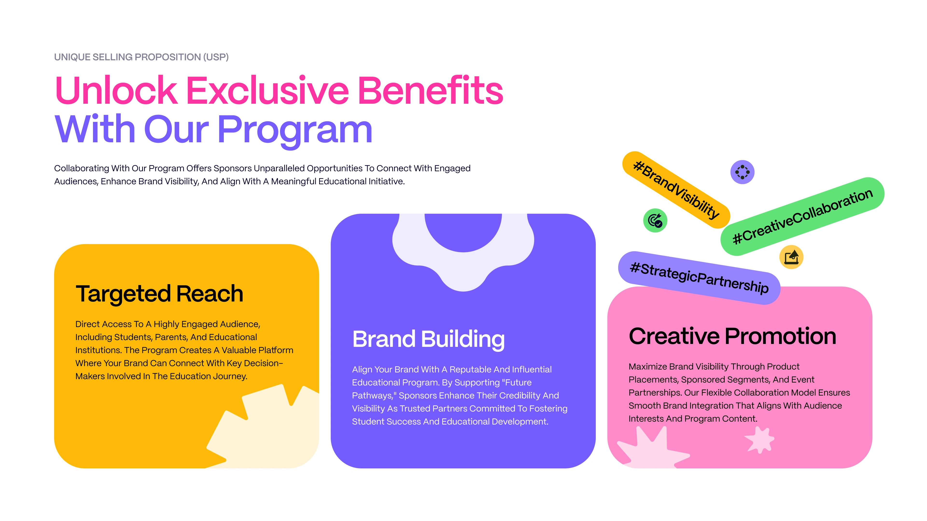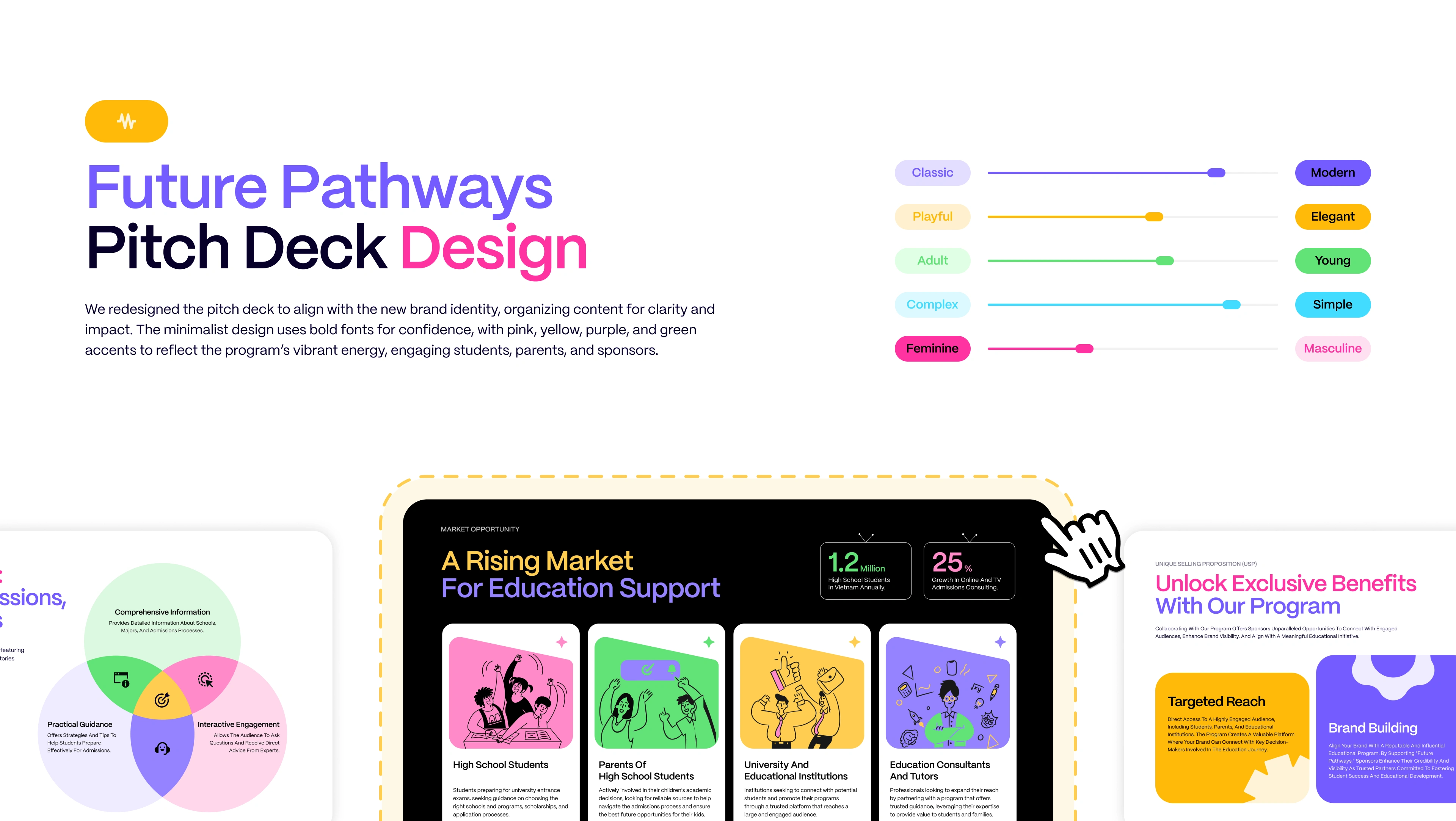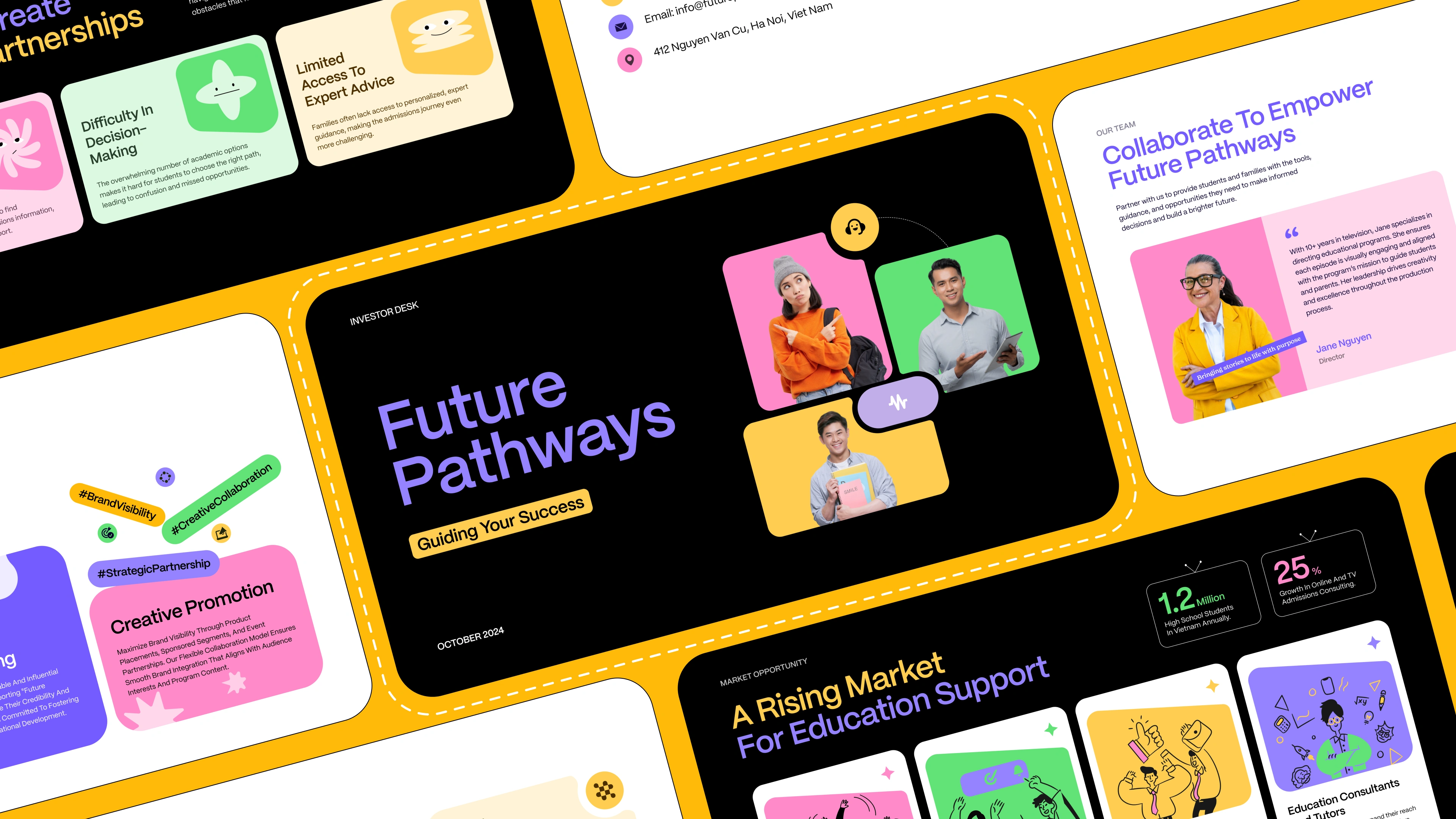 Future Pathways needed a pitch deck that could speak to multiple audiences—students, parents, and sponsors—while staying consistent with their new brand identity. Their previous materials felt generic and fragmented, making it difficult to build trust and excitement across such diverse stakeholders.