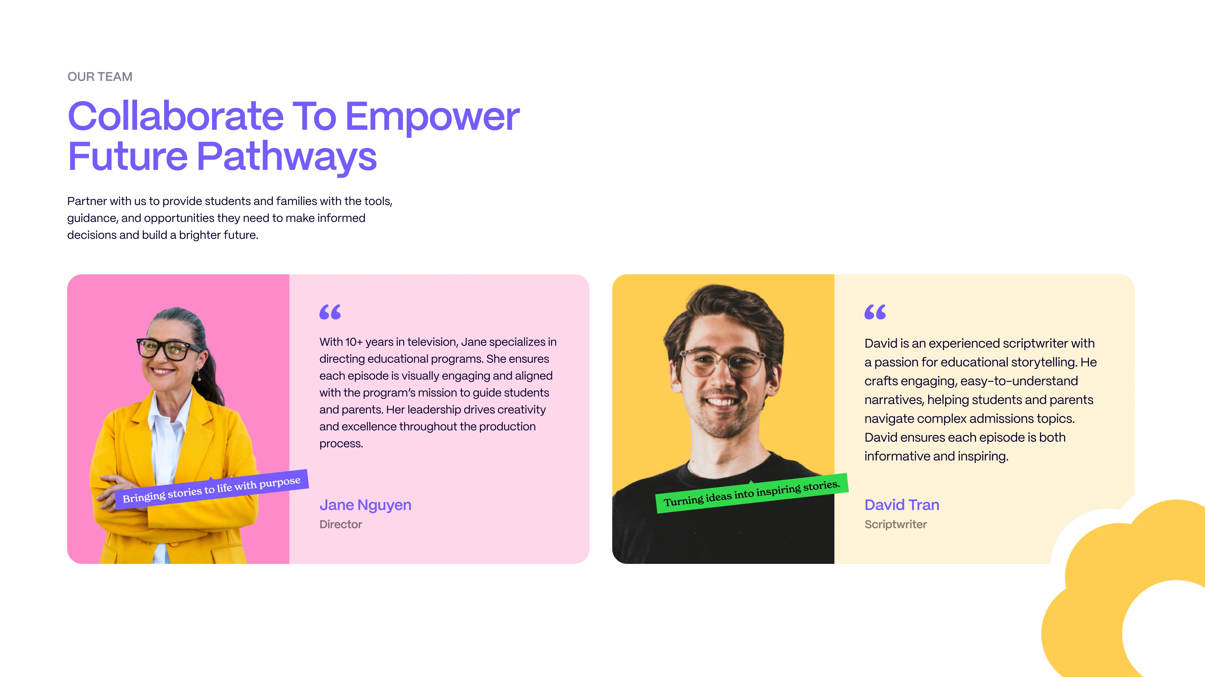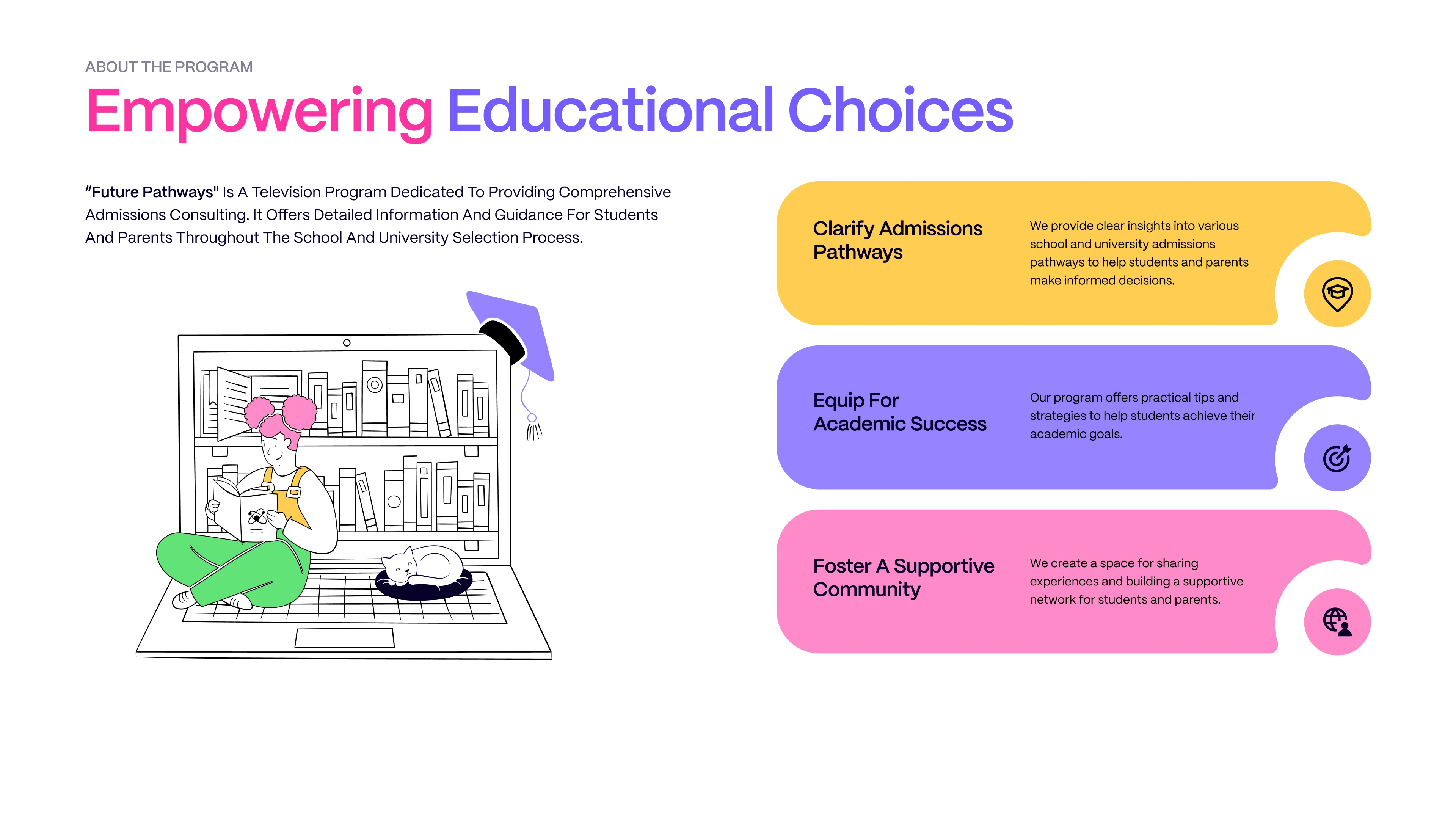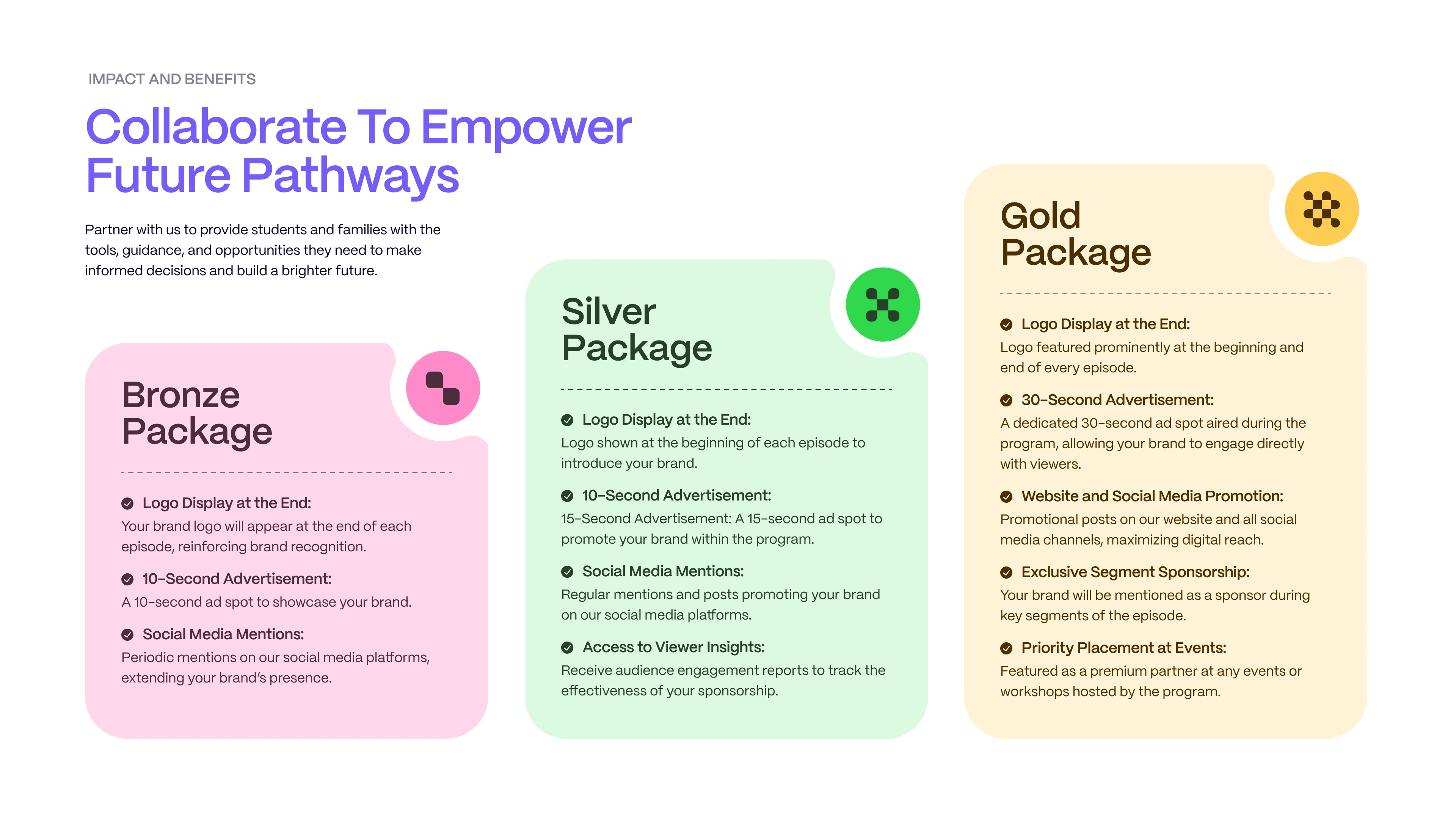 Future Pathways needed a pitch deck that could speak to multiple audiences—students, parents, and sponsors—while staying consistent with their new brand identity. Their previous materials felt generic and fragmented, making it difficult to build trust and excitement across such diverse stakeholders.