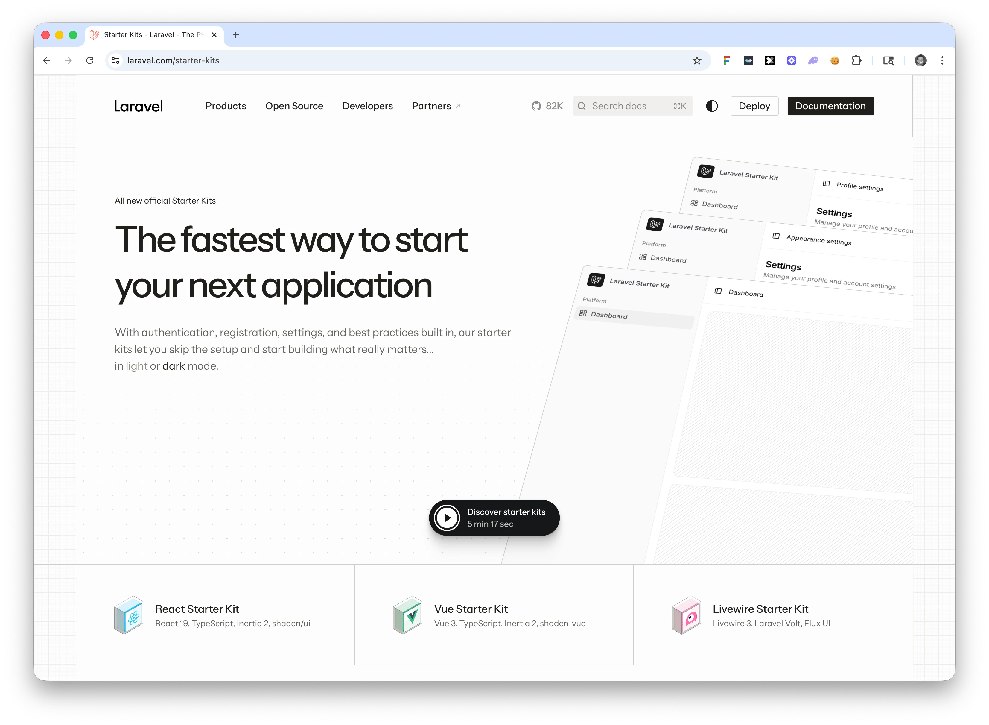 My experience to building starter kits in the past, led to this opportunity to collaborate directly with the Laravel team. You can view the latest starter kits at: https://laravel.com/starter-kits