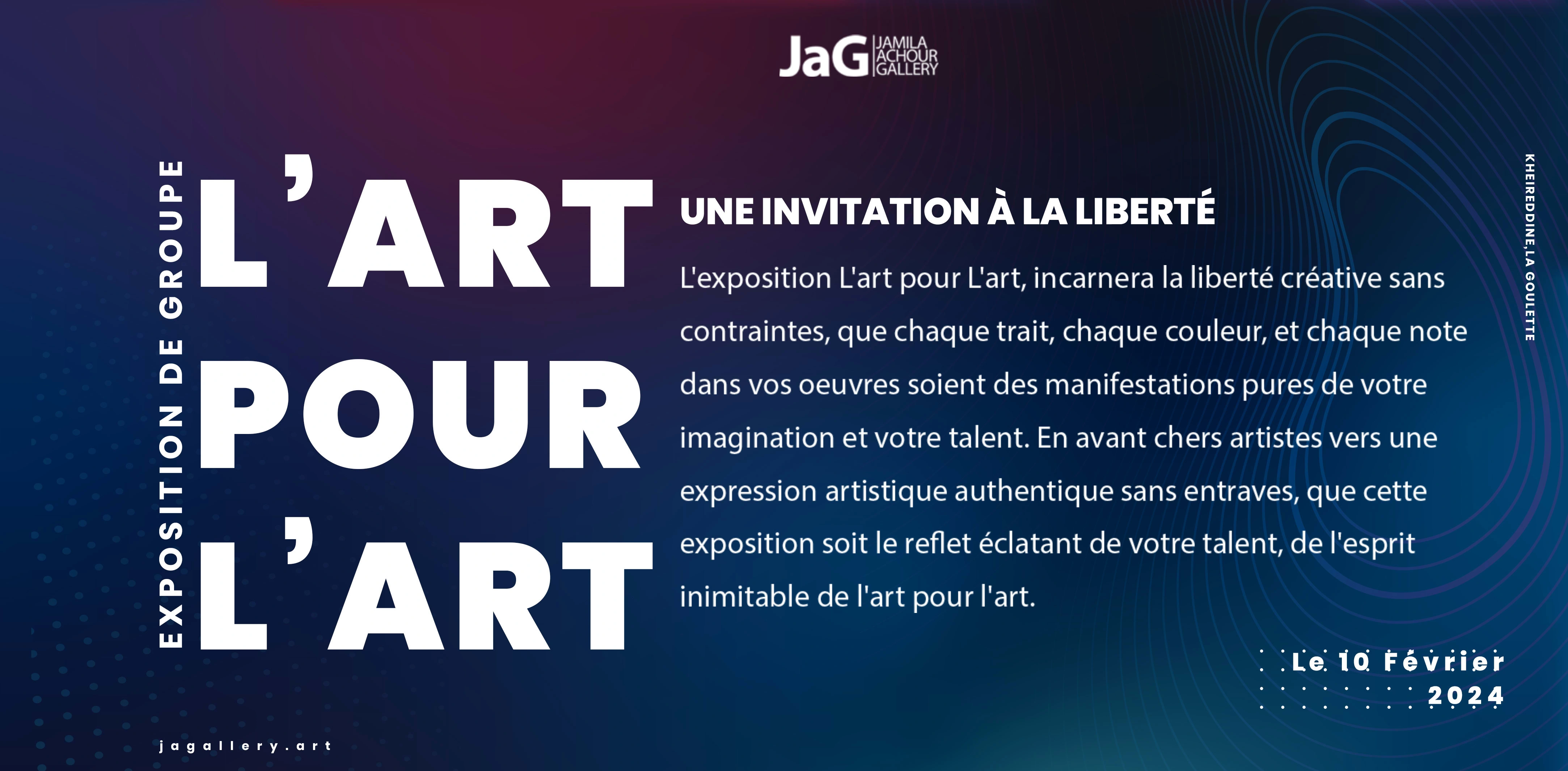 Experience the synergy of art and design in collaboration with JAG Gallery, a renowned institution in Tunisia. Presenting 'L'art pour L'art,' a group exhibition