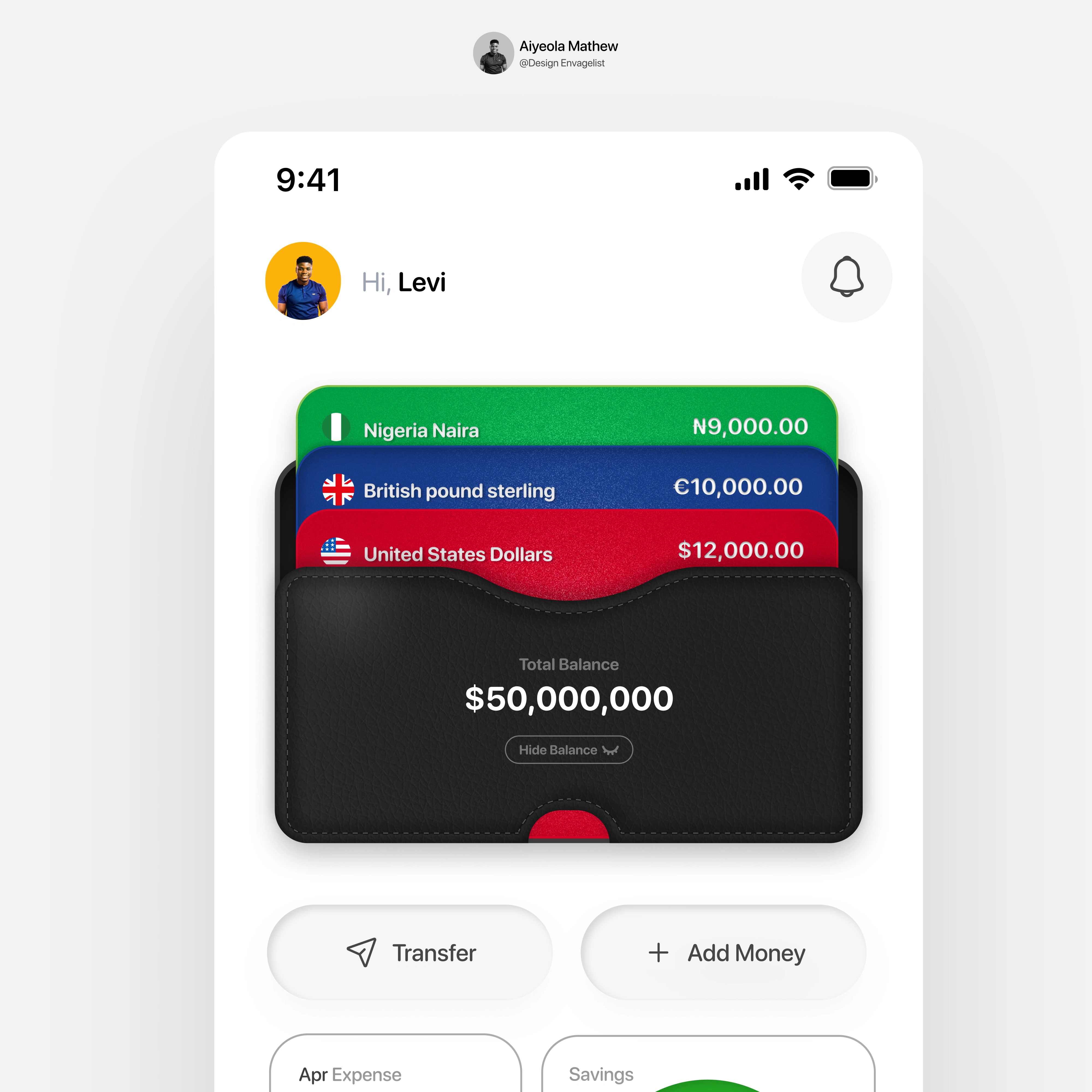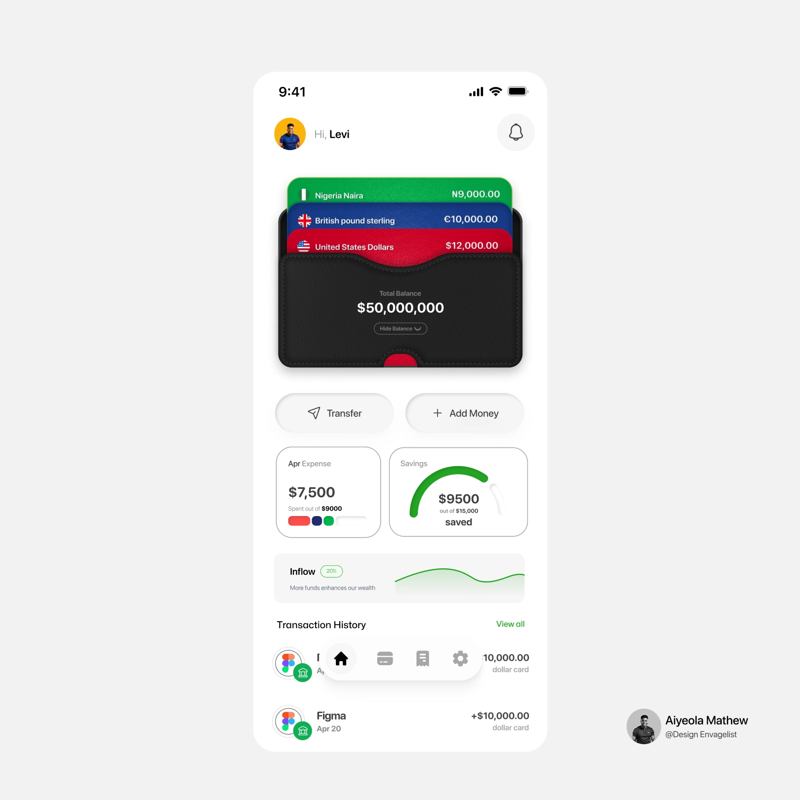 Here is a dashboard of a Multi-Currency Wallet