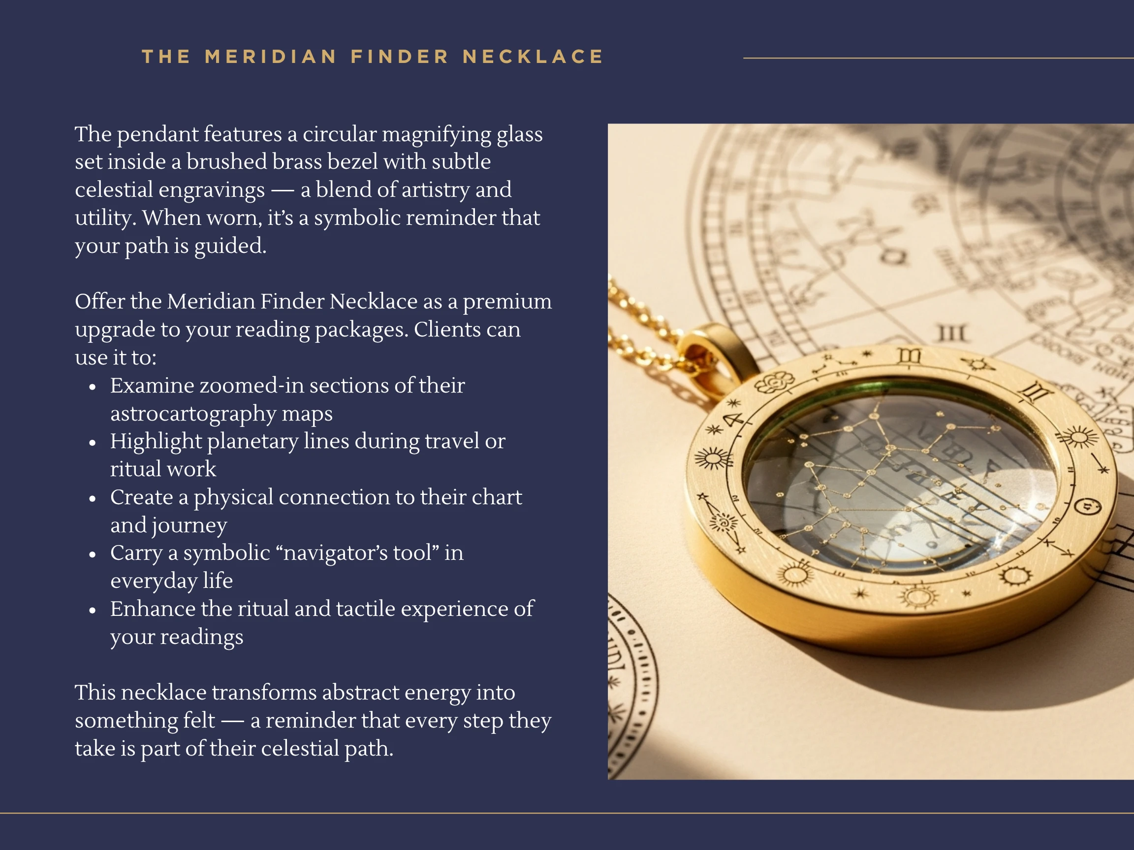 I developed a complete brand identity including logo suite, color palette, typography, iconography, and illustrated celestial elements. The design direction draws from star maps, meridian lines, planetary movement, and the warm tones of sunrise. The final identity balances luxury and mysticism, creating a trustworthy and intuitive visual experience for clients seeking guidance through their locations and life paths.