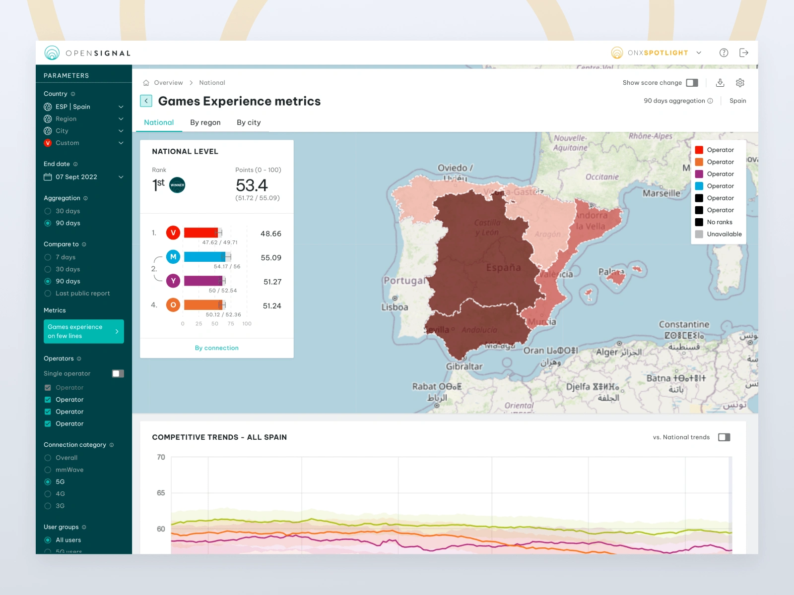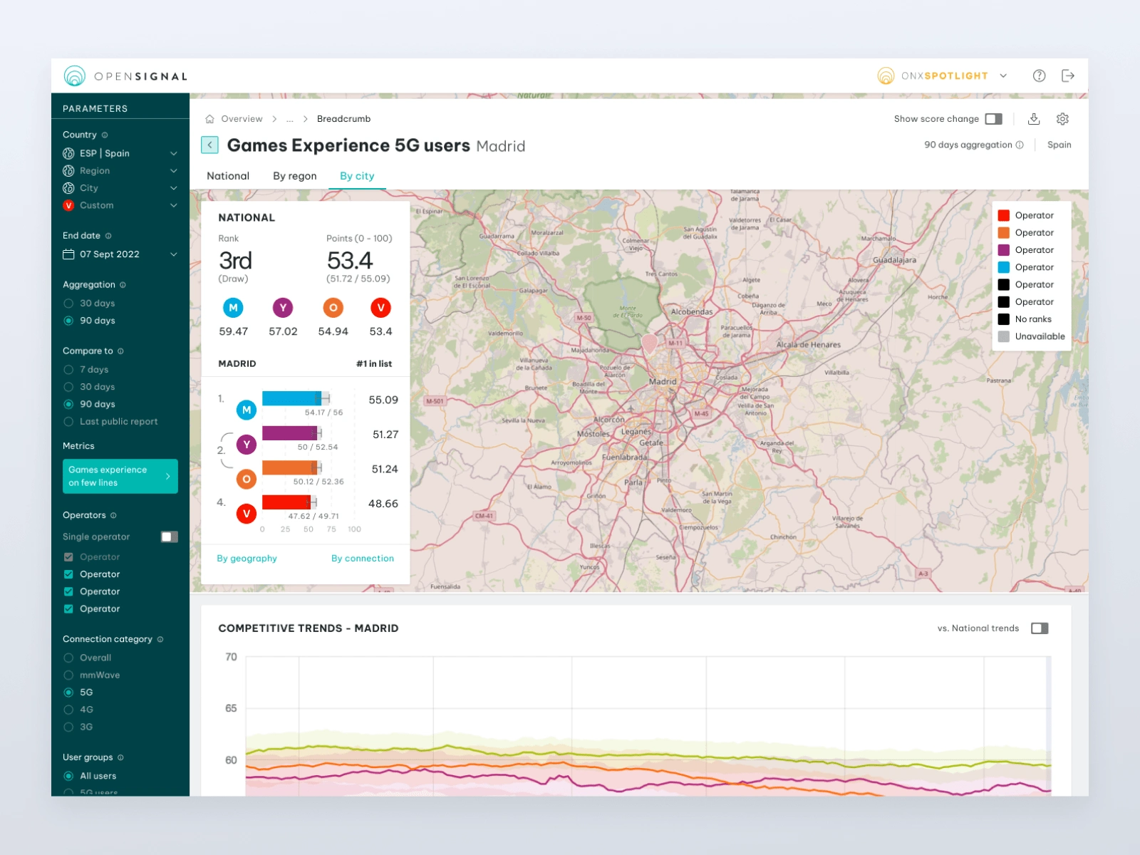 Opensignal’s platform needed a user-friendly redesign to handle millions of data points and present them as actionable insights. The existing interface was overwhelming and lacked clear navigation, making it difficult for users to compare telecom providers or regions effectively.