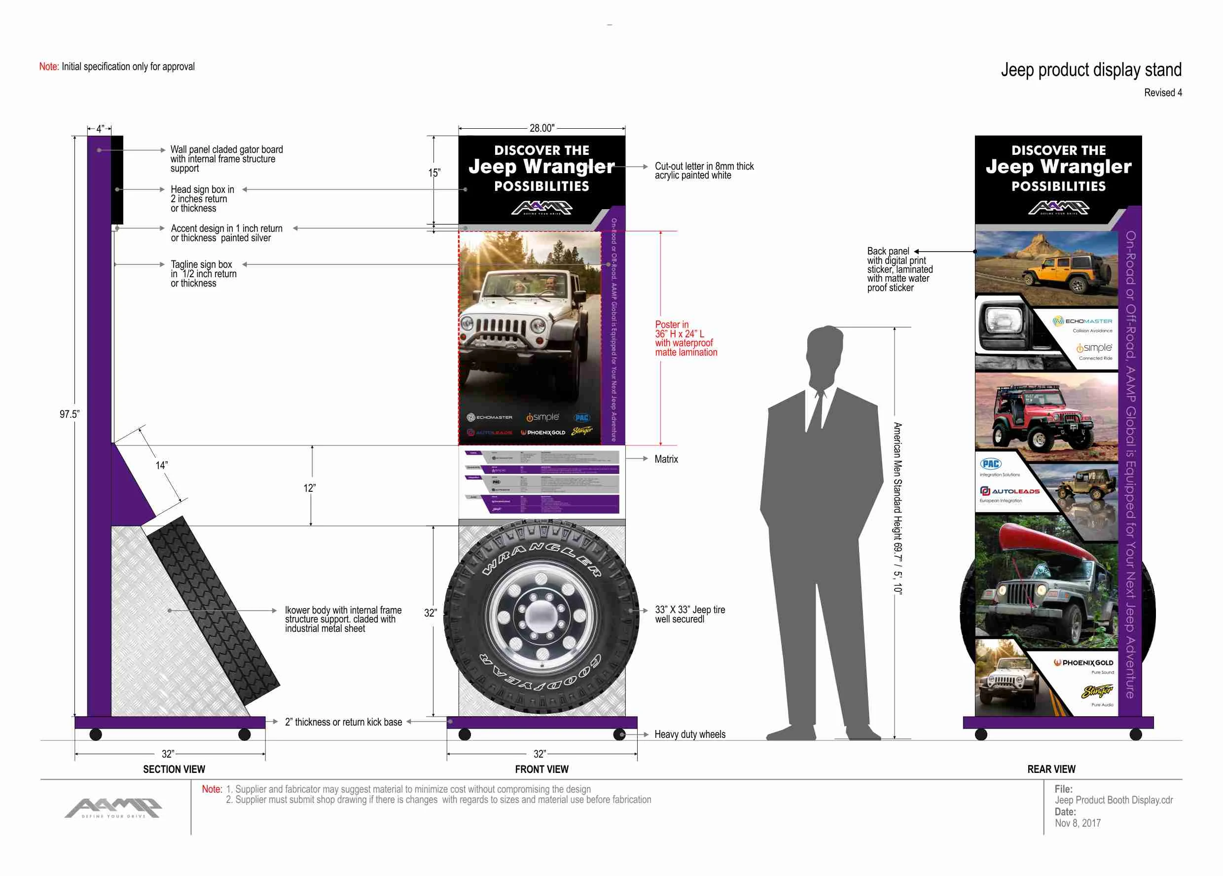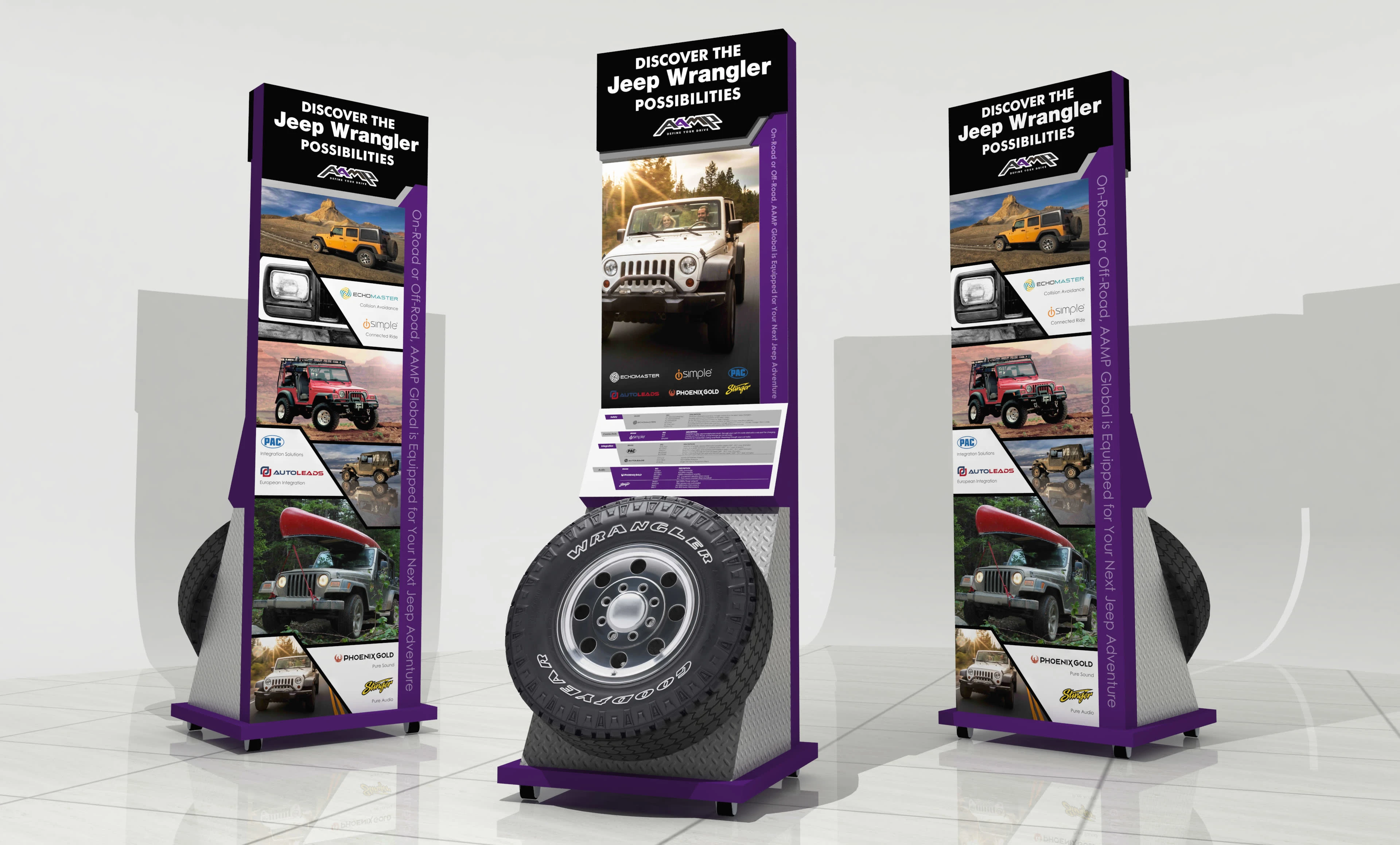I designed an event display for the Jeep Wrangler to showcase their latest innovation in tire technology. To highlight the product's off-road power, the installation allowed attendees to experience the aggressive tread and engineering up close. The final design successfully bridged the gap between Jeep’s legendary durability and its newest technical advancements.
