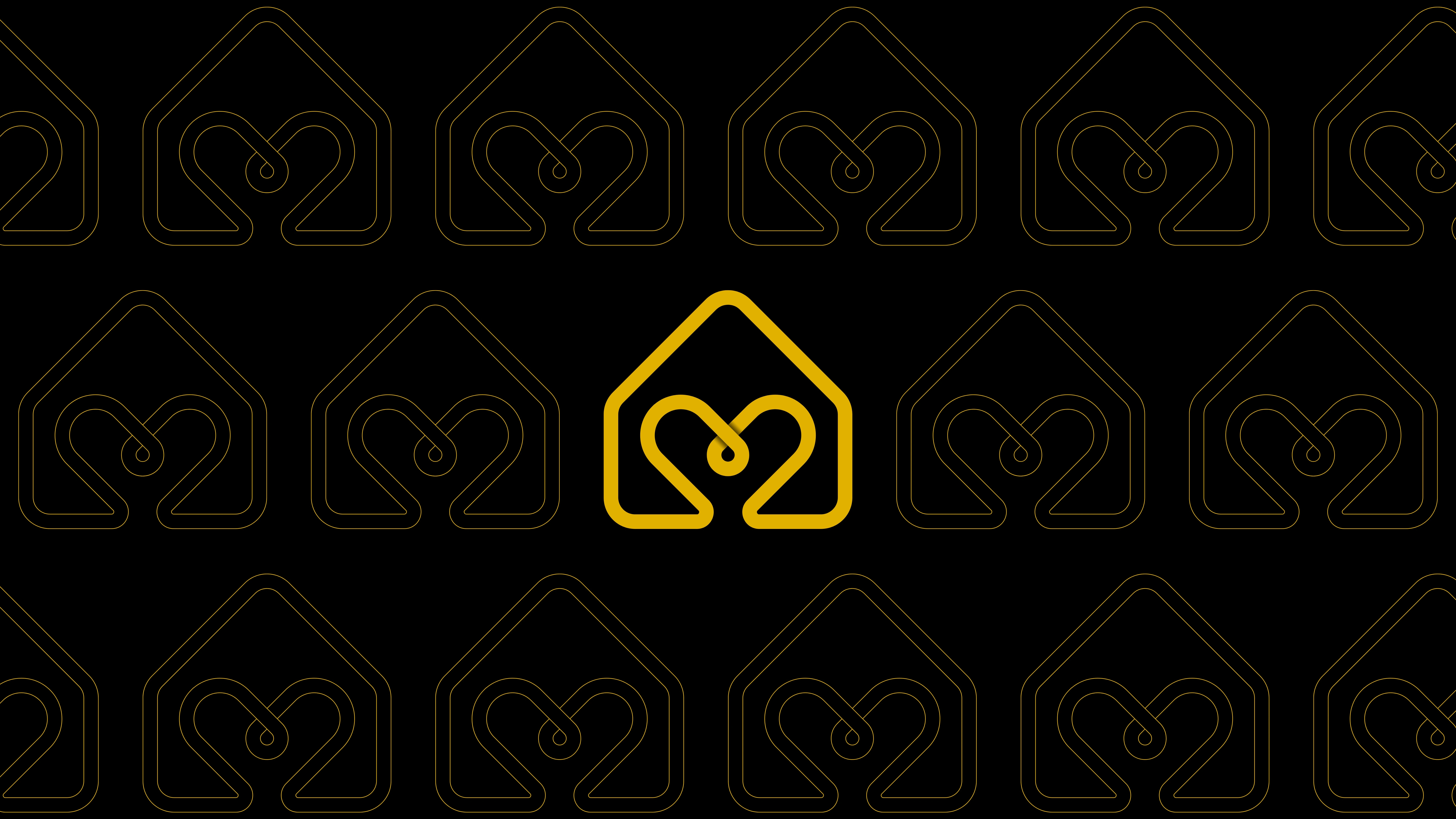 Inside the home outline sits a soft, elegant “M” shaped like a heart.