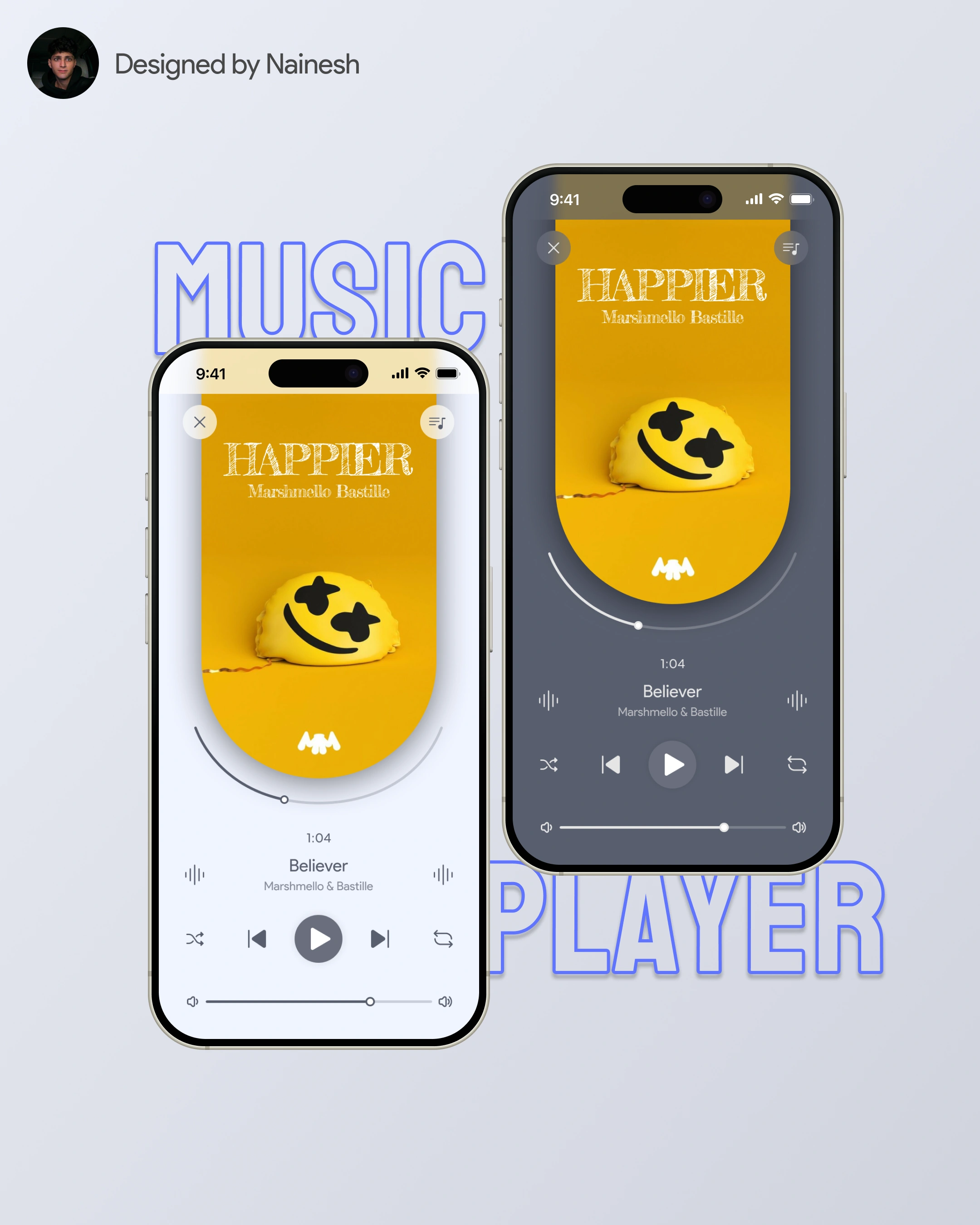 Sleek music player UI designed for smooth navigation, easy playlist control, and an immersive listening experience with both light and dark modes.