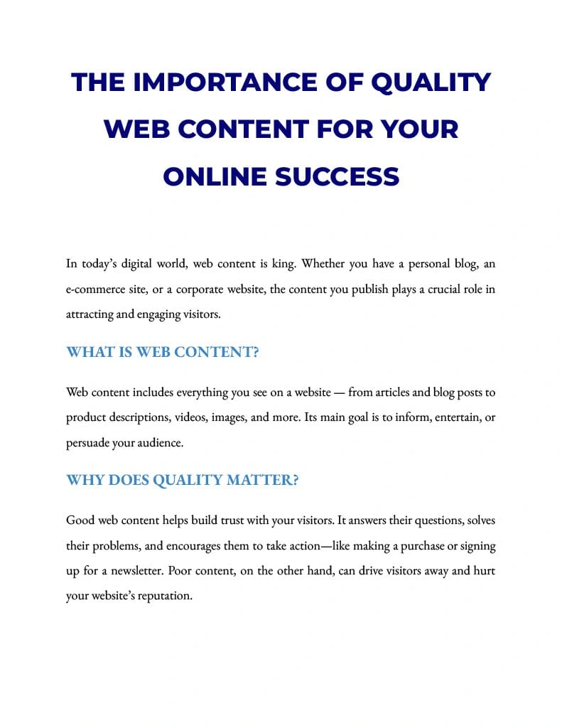 Helped improve website traffic, increased user engagement, boosted search engine rankings, and strengthened brand credibility.