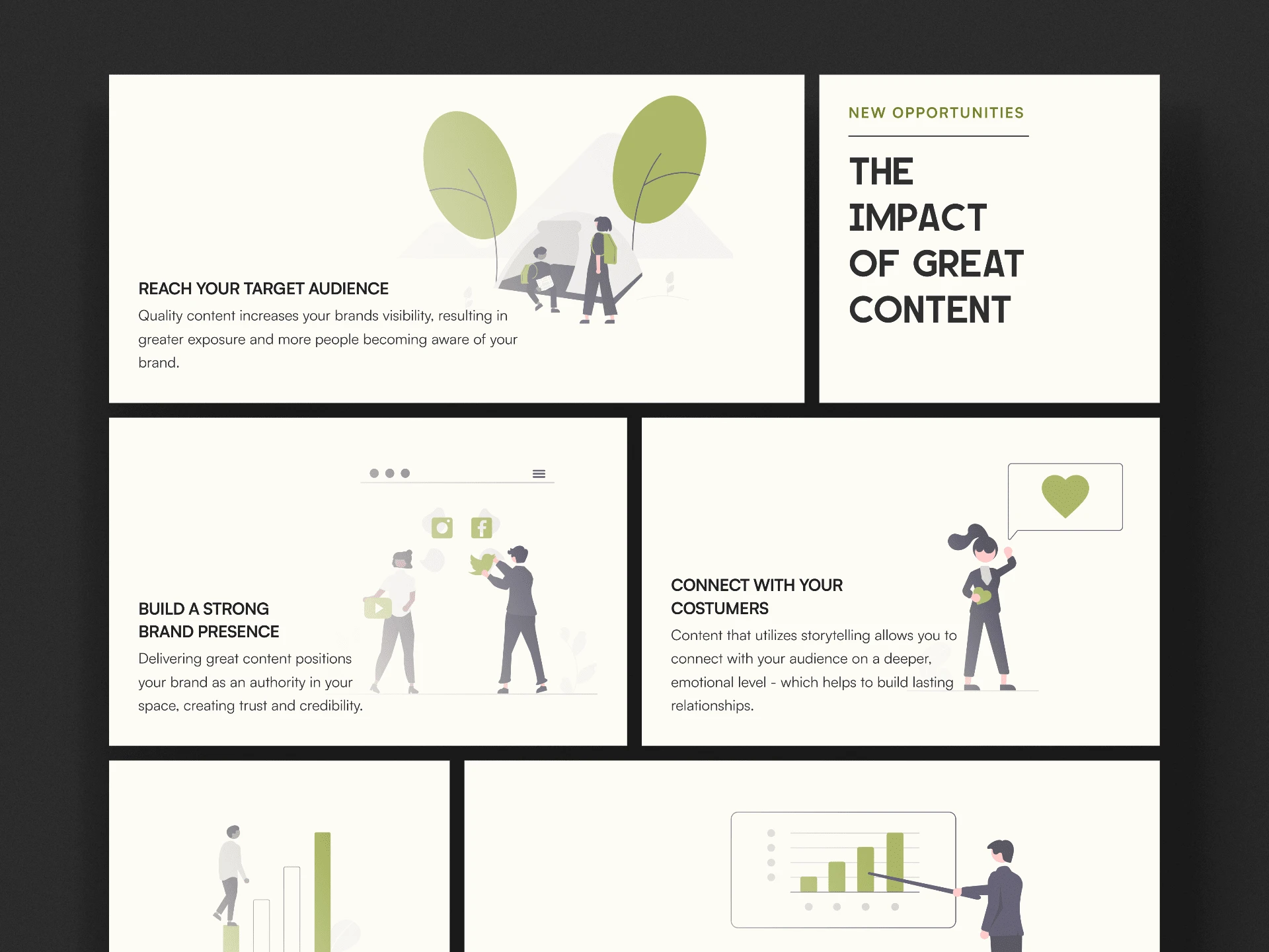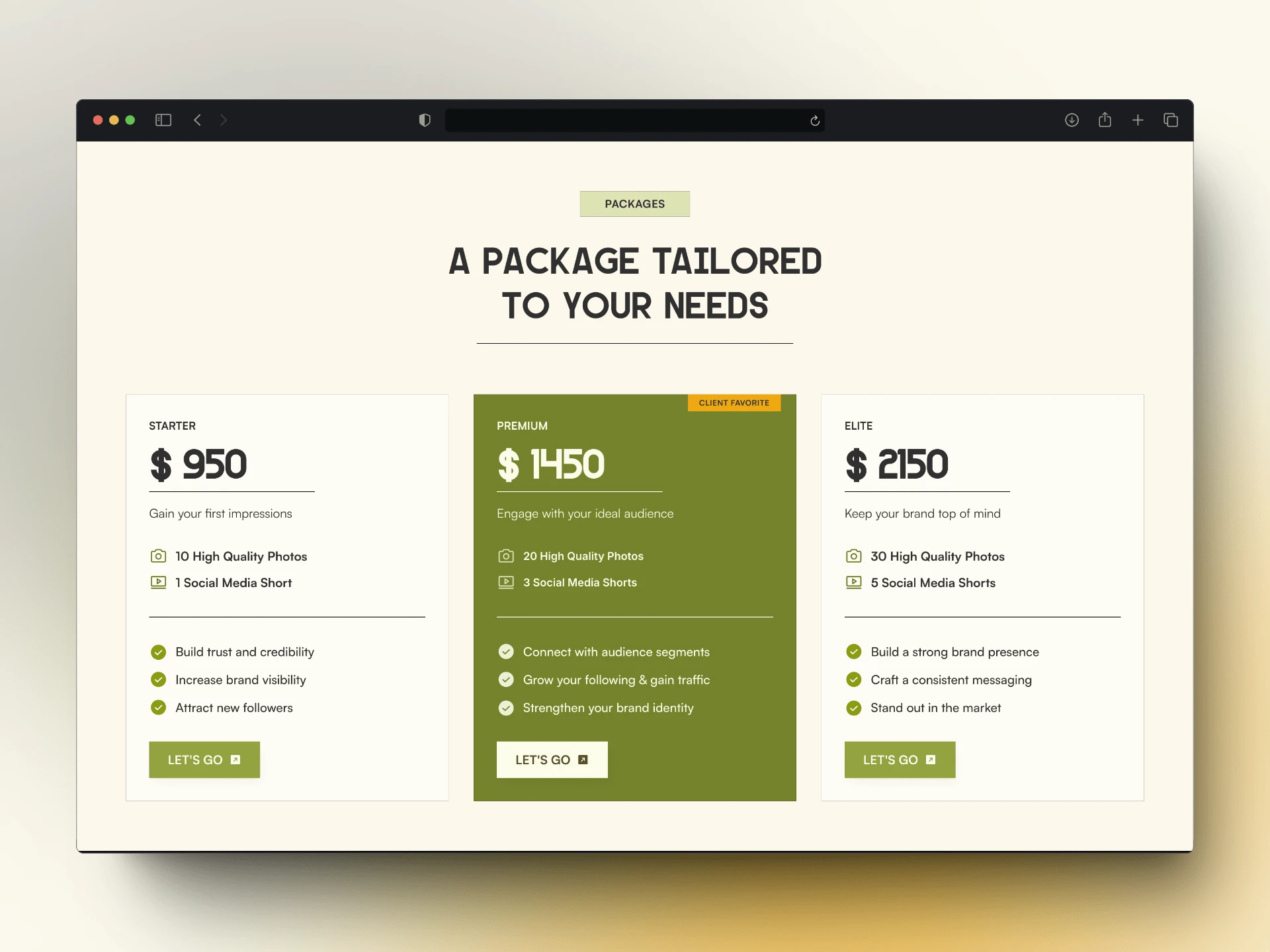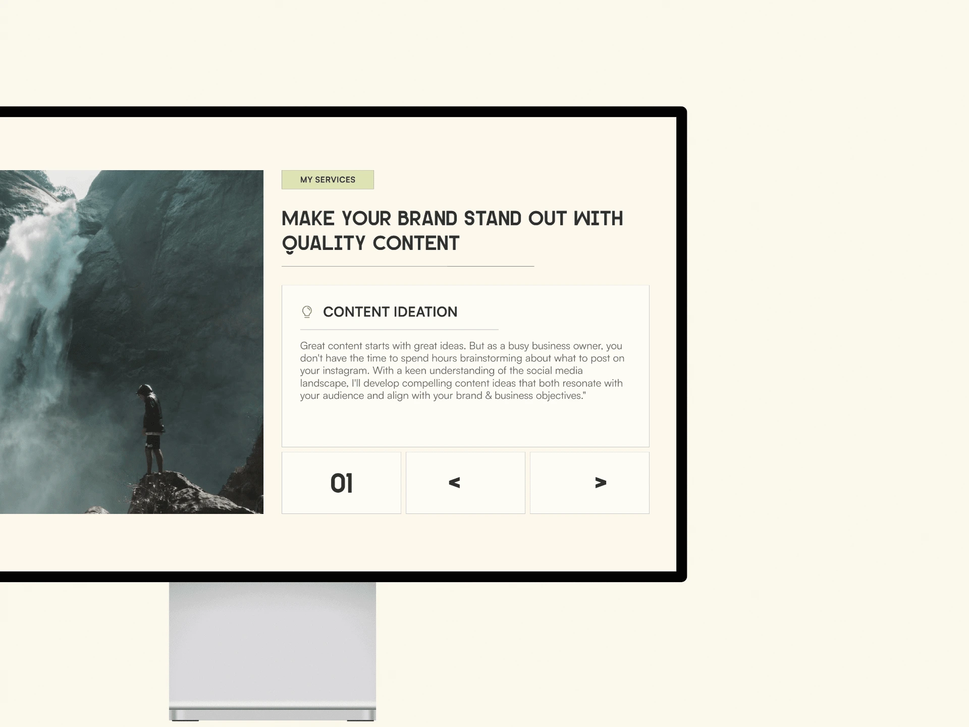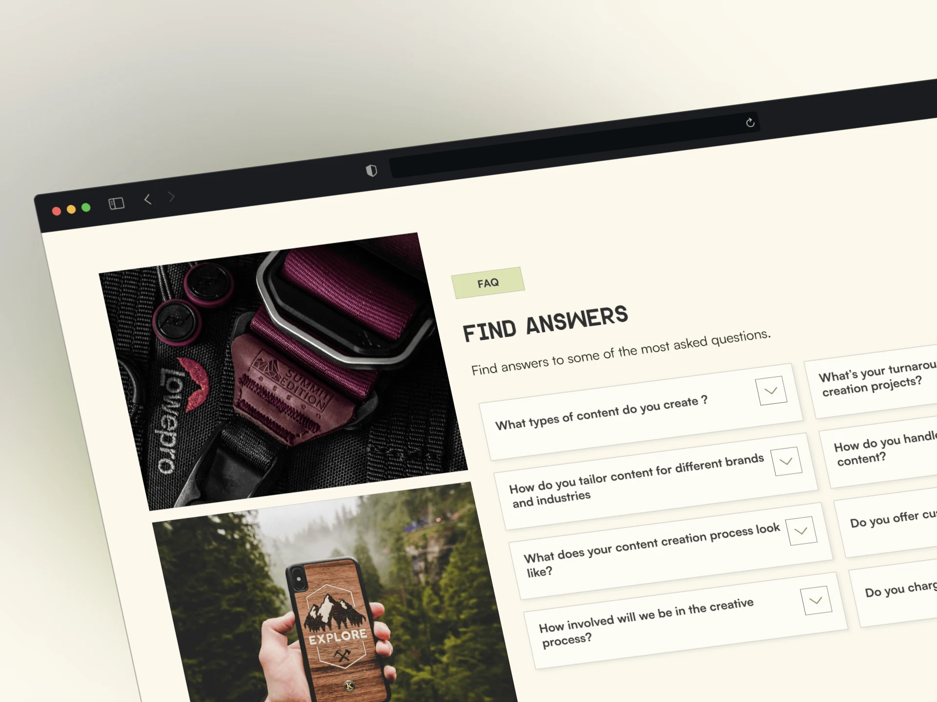 To align the creator's positioning with the target niche of travel, outdoor, and experience-focused brands, I based the branding and website design on a simple palette of natural colors, complemented by a bold yet playful, outdoorsy typeface. The rich pastel green primary color reflects the creator's nature-centered content while also symbolizing the growth his work aims to bring to brands.