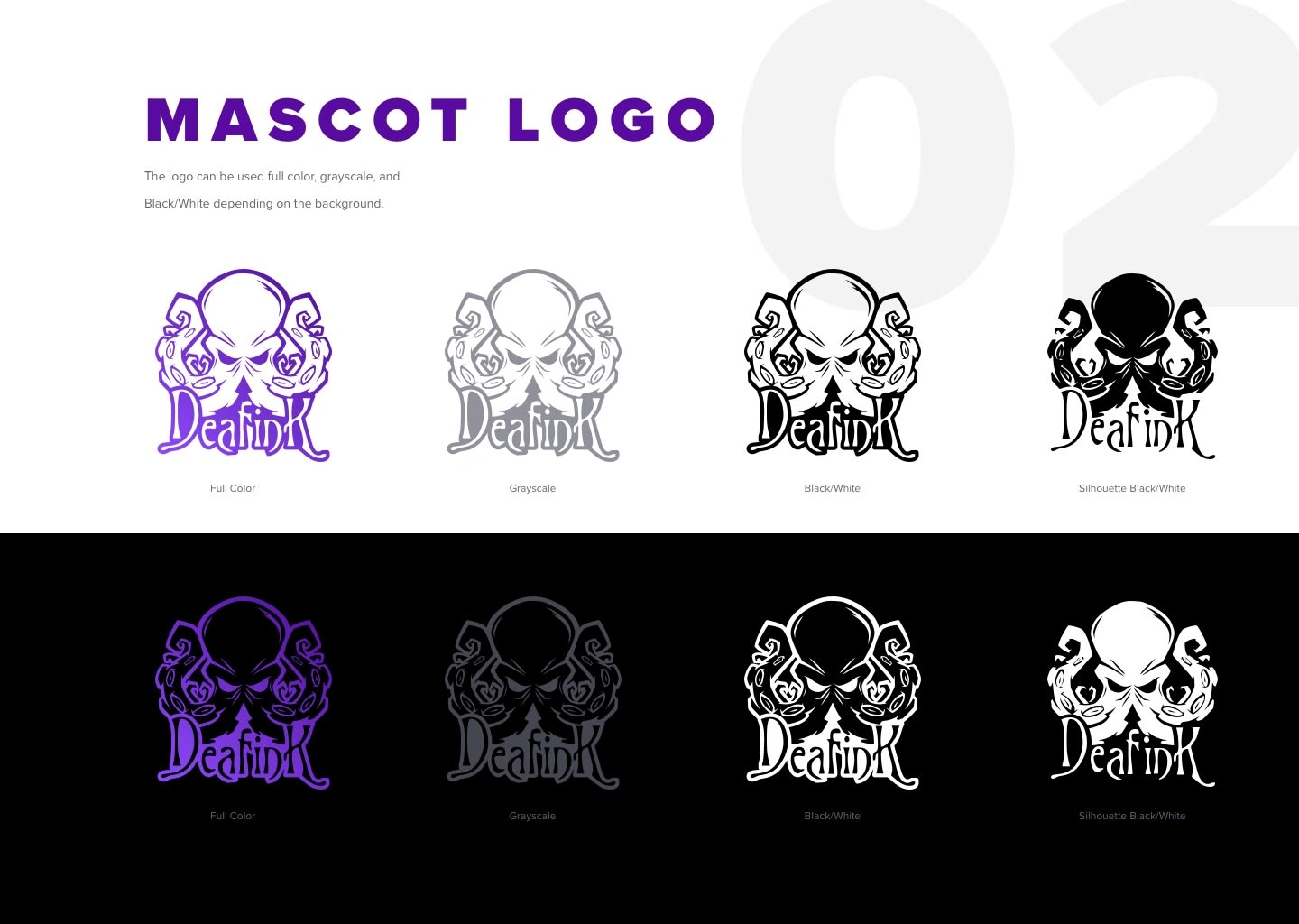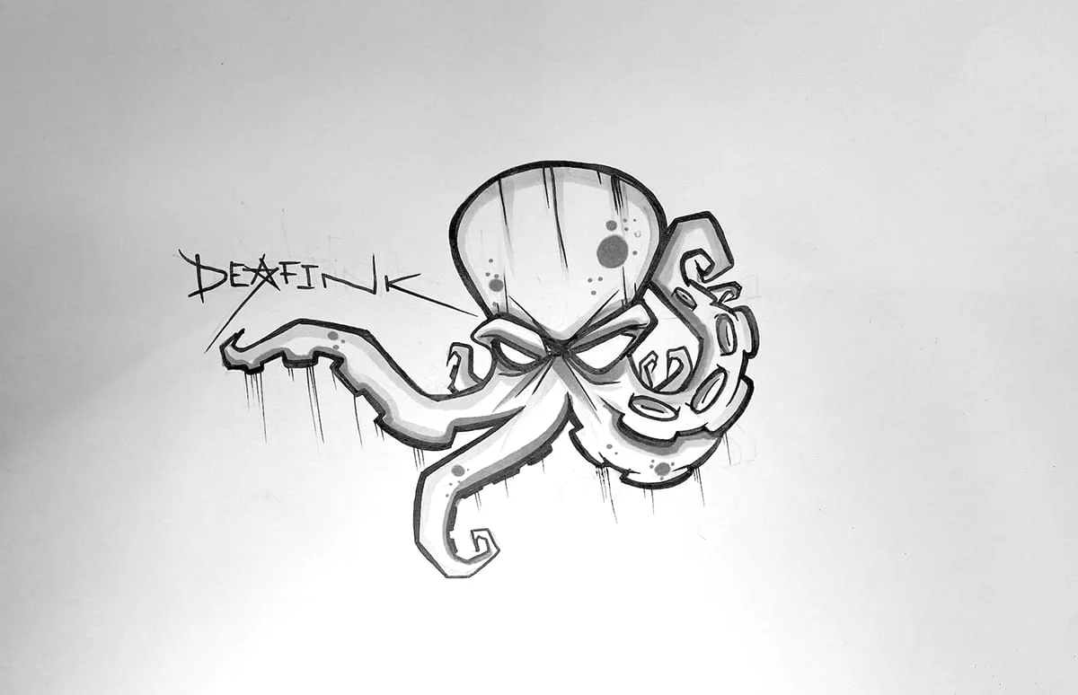 I began by gathering as much information and ideas. One thing that instantly stood out was the name DeafInk combined with an octopus mascot. The octopus has 8 tentacles, which represent the different abilities and skills of the artist.