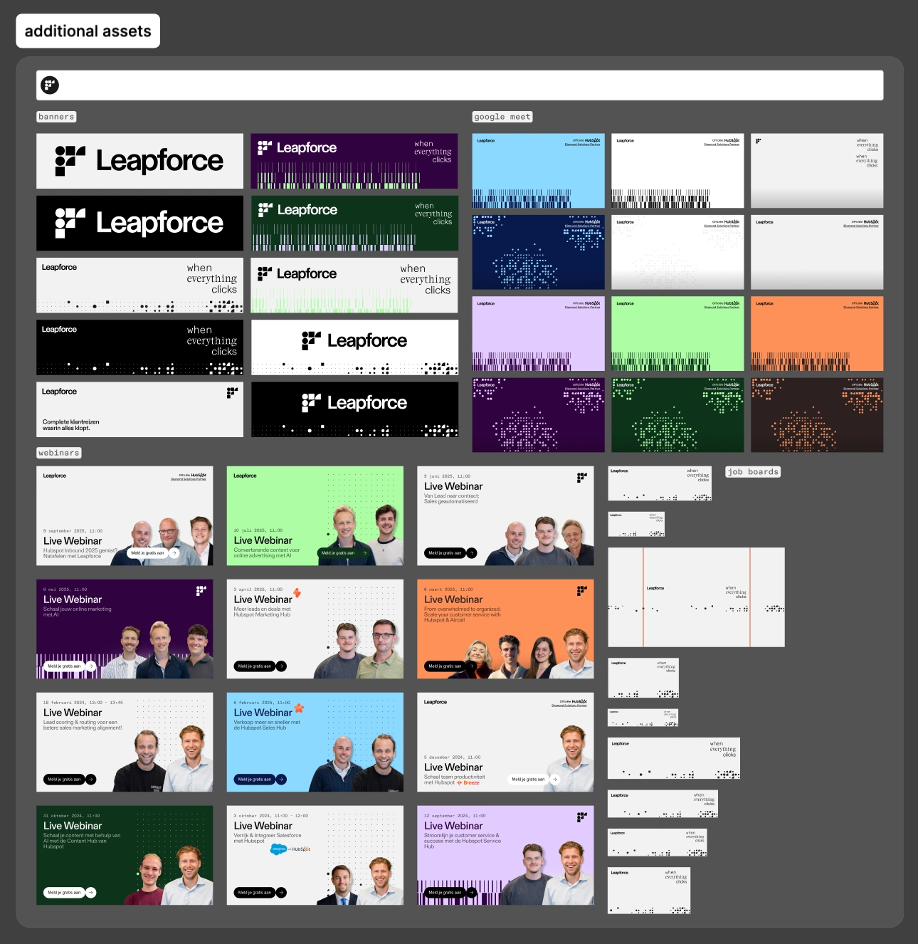 Leapforce went through a rebranding process and asked me to help translate their new identity into social media templates and branded assets. The focus was on building a flexible, professional system primarily for LinkedIn, where the company shares updates, insights, and growth stories. This work became part of rolling out their refreshed brand.