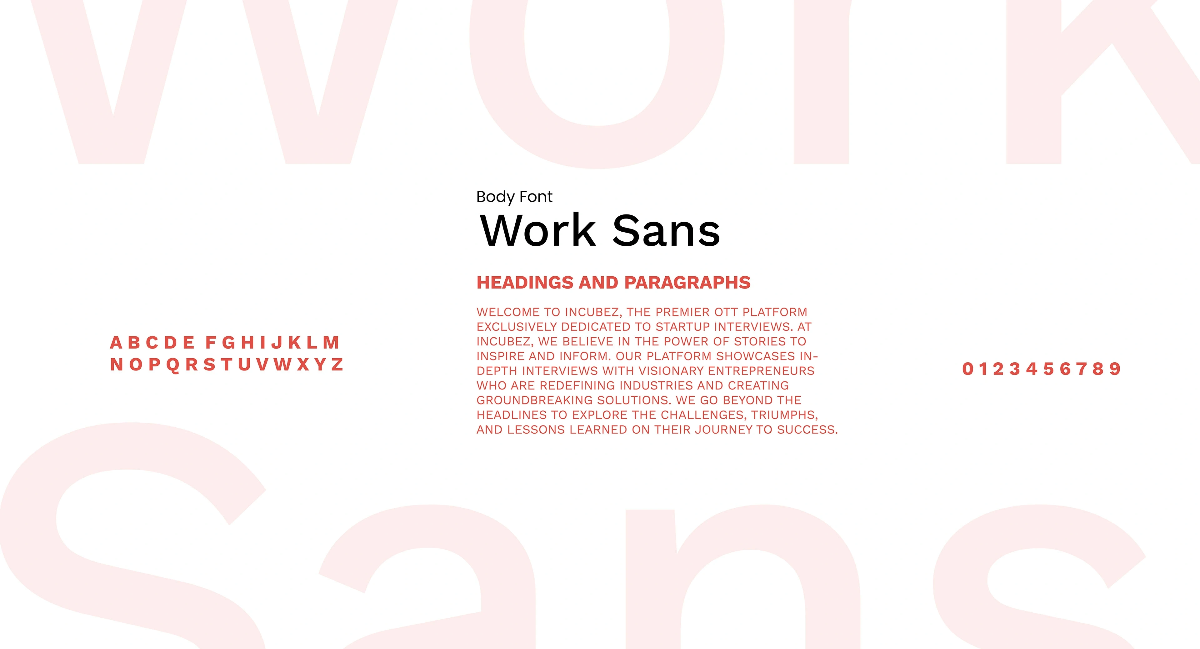 Work Sans, a typeface chosen for clarity and approachability, anchors the Incubez identity—reinforcing its community-first and information-rich ethos.