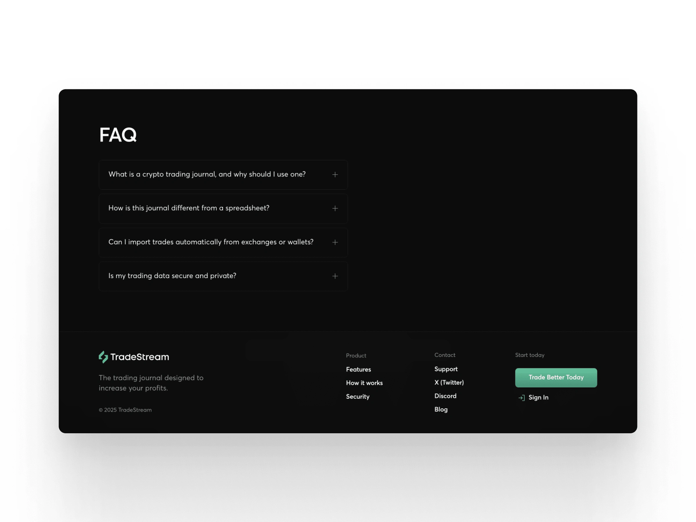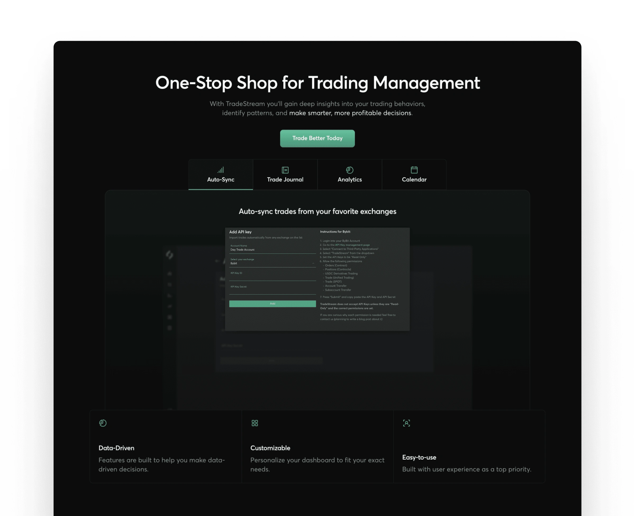Our primary objective is to convert visitors into registered users and ensure they connect their trading API keys.