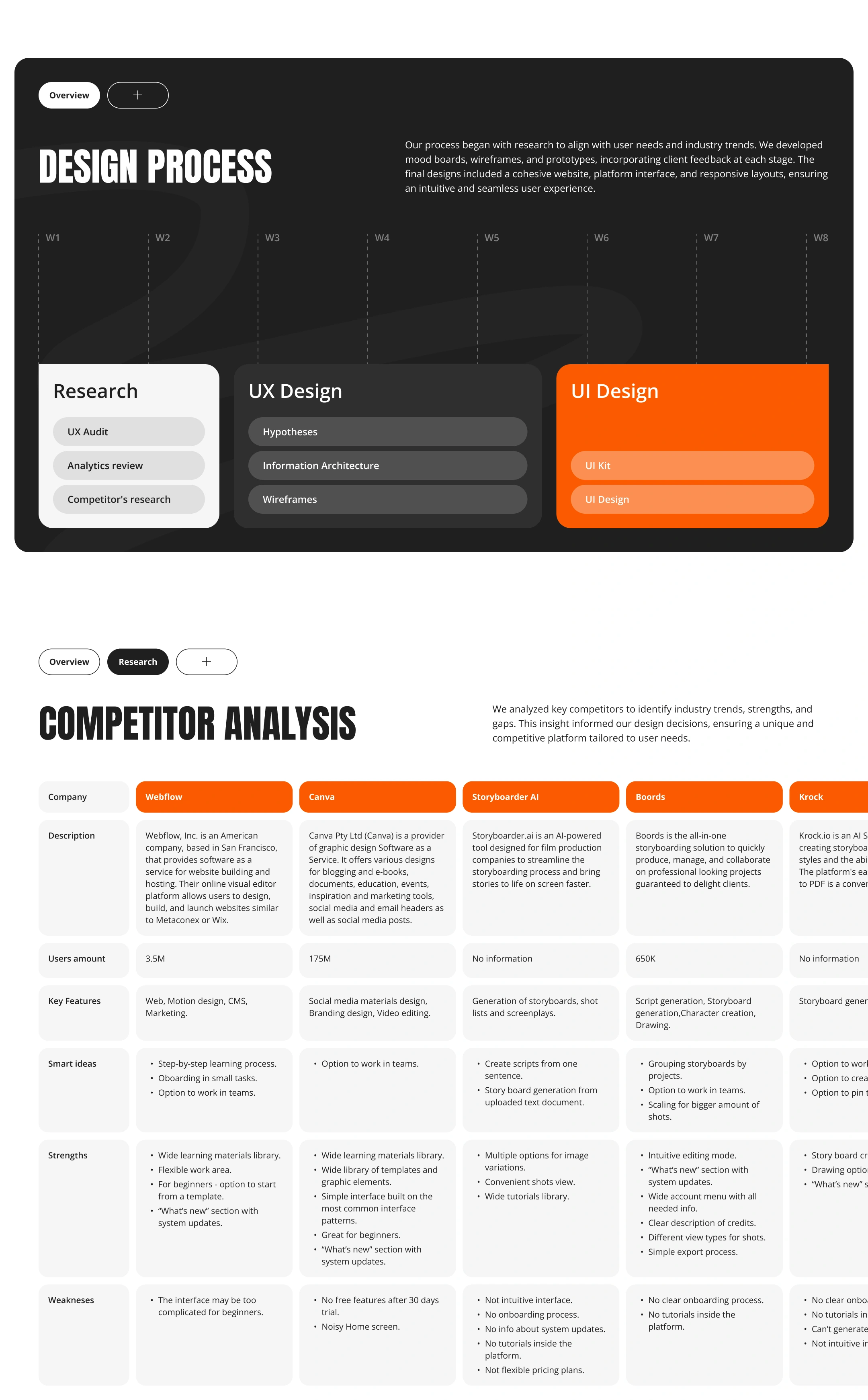 Website design for dynamic, user-friendly platform for creating and sharing storyboards