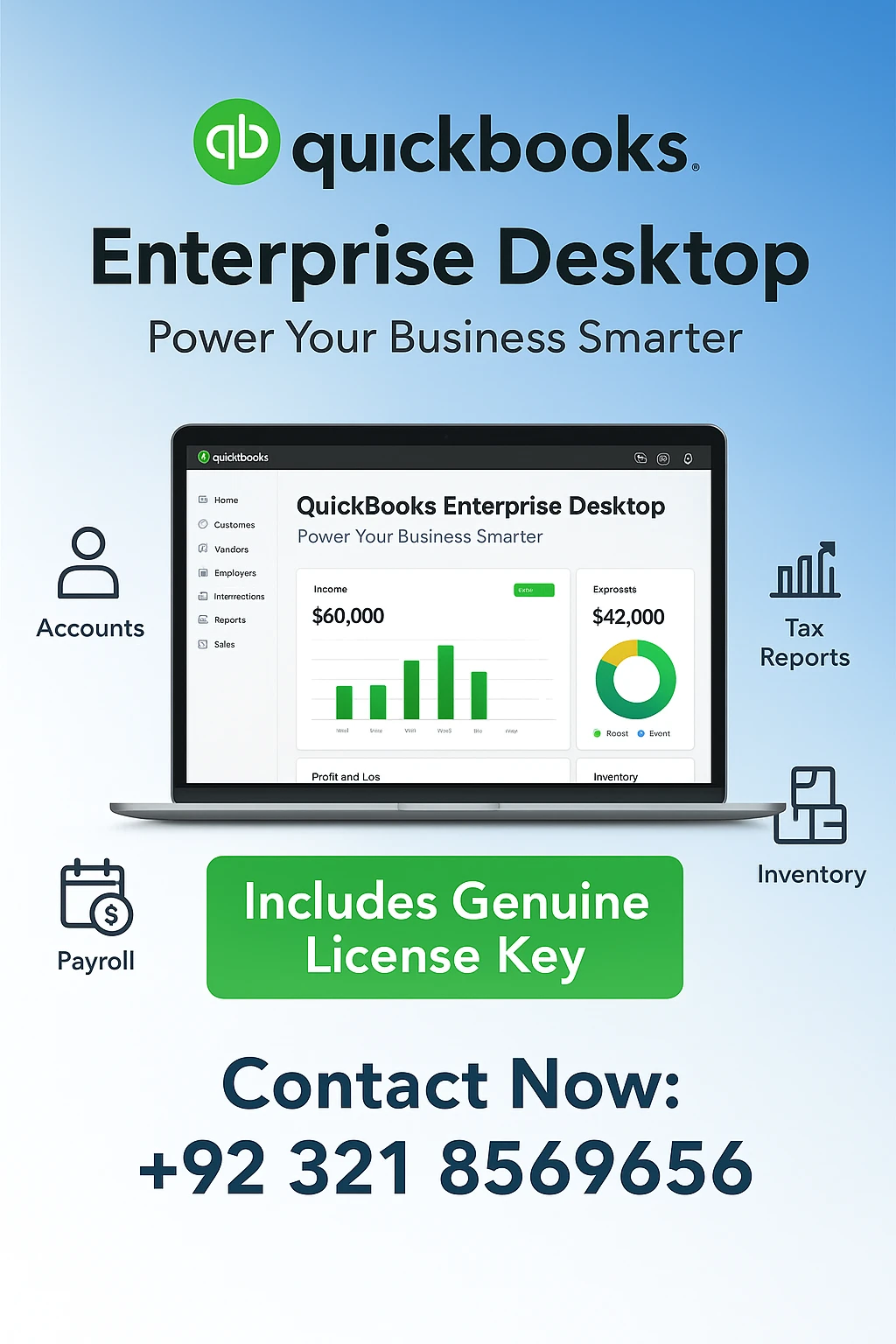 I designed this professional promotional poster for QuickBooks Enterprise Desktop. The goal of this project was to create a clean, modern, and corporate-style layout that highlights the software’s key features while maintaining brand trust and professionalism.