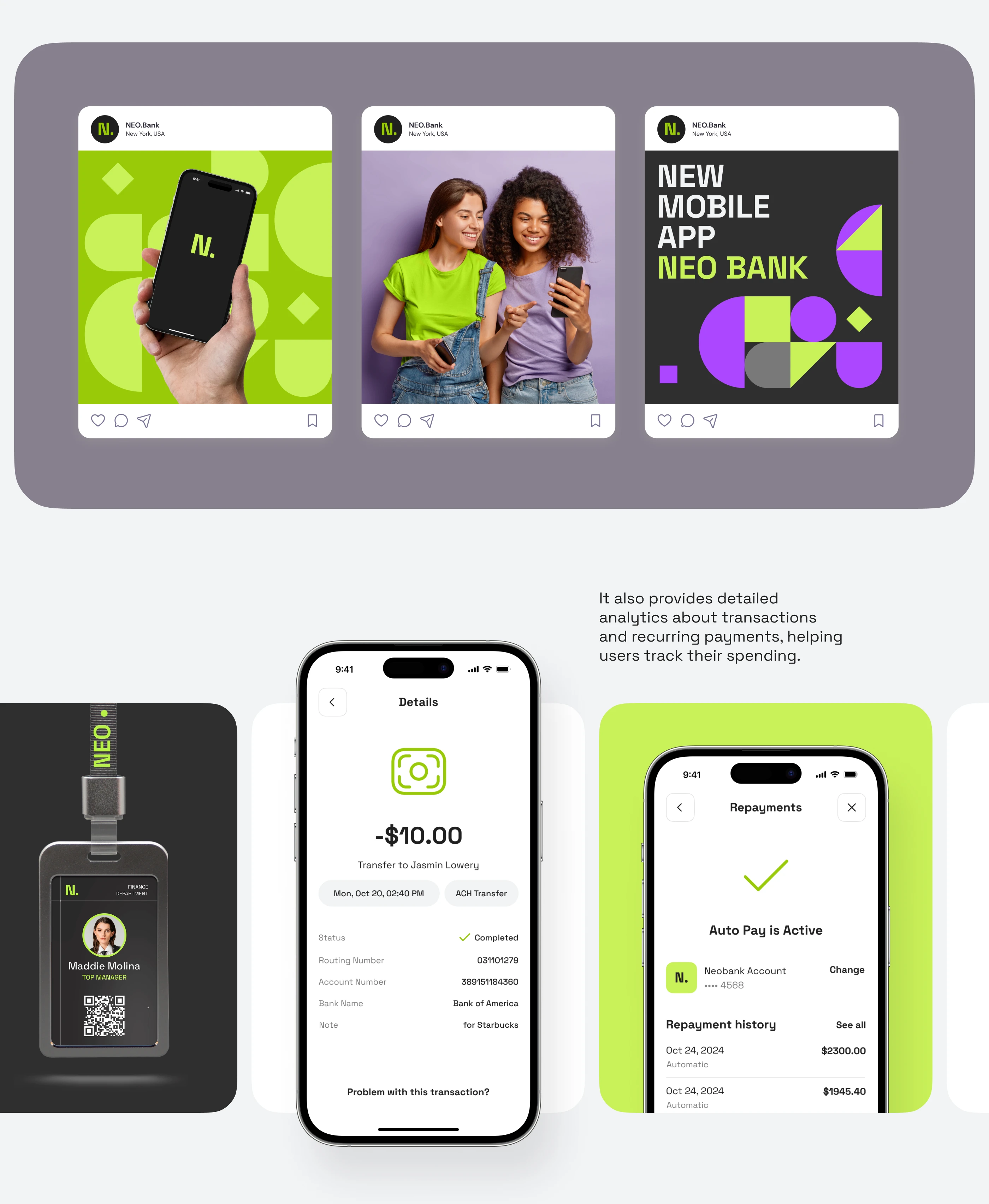 Neobank app helps users build credit scores with real-time monitoring, personalized advice, secure payments combining bank reliability and fintech innovation.