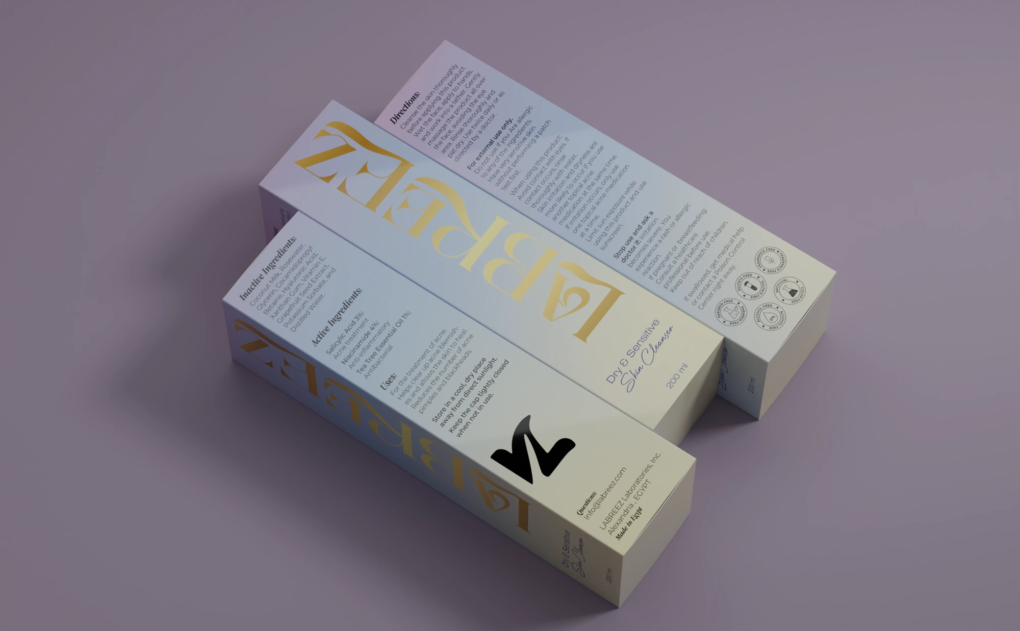 Presenting the packaging design for LABREEZ Skin Cleanser, a collection crafted to bring elegance and functionality to skincare. Each variant in this line features unique colors, tailored to represent the specific benefits and ingredients of each cleanser, offering a visually captivating and cohesive collection.