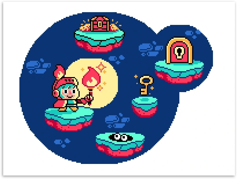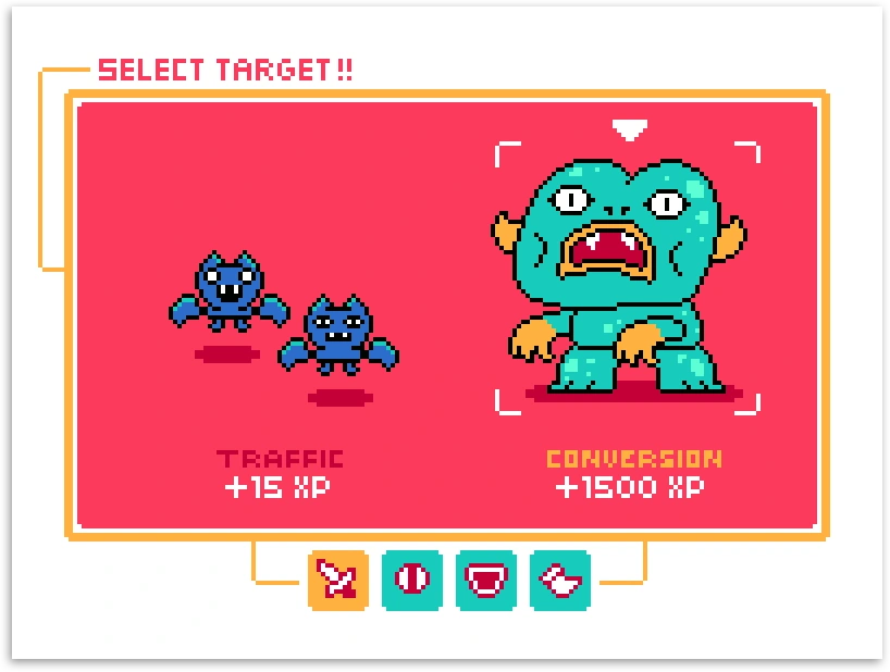 A set of pixel art illustrations to add some fun visualisation to an article on data analytics.