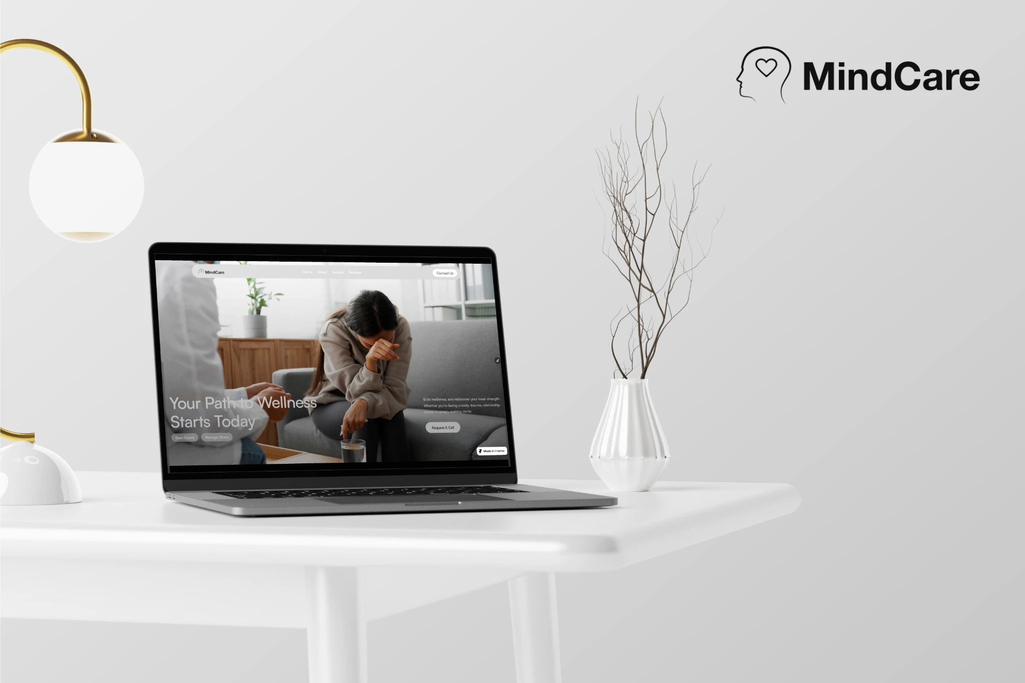 Interactive sections highlight services, appointment booking, therapist profiles, and resources, all framed in a way that feels supportive rather than overwhelming. Subtle animations, like fading transitions and hover highlights, provide a sense of gentle movement, evoking reassurance and balance.