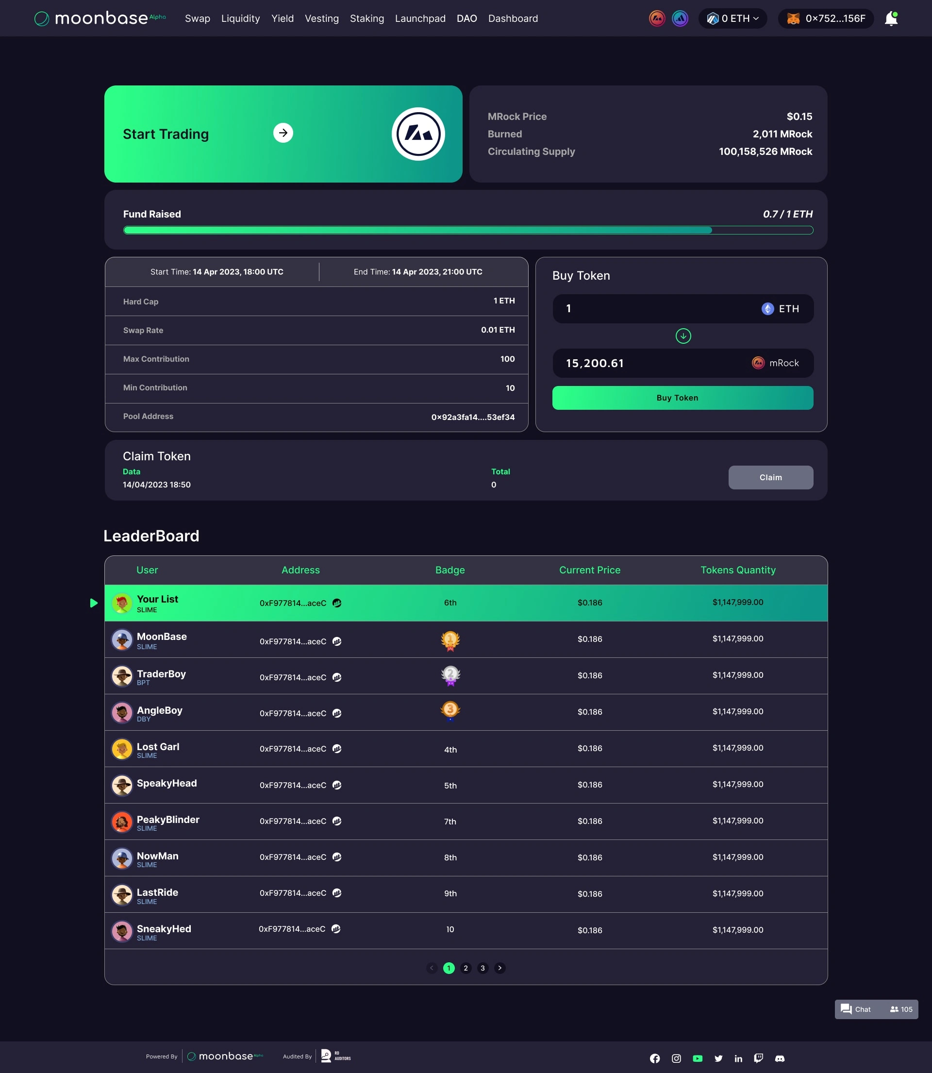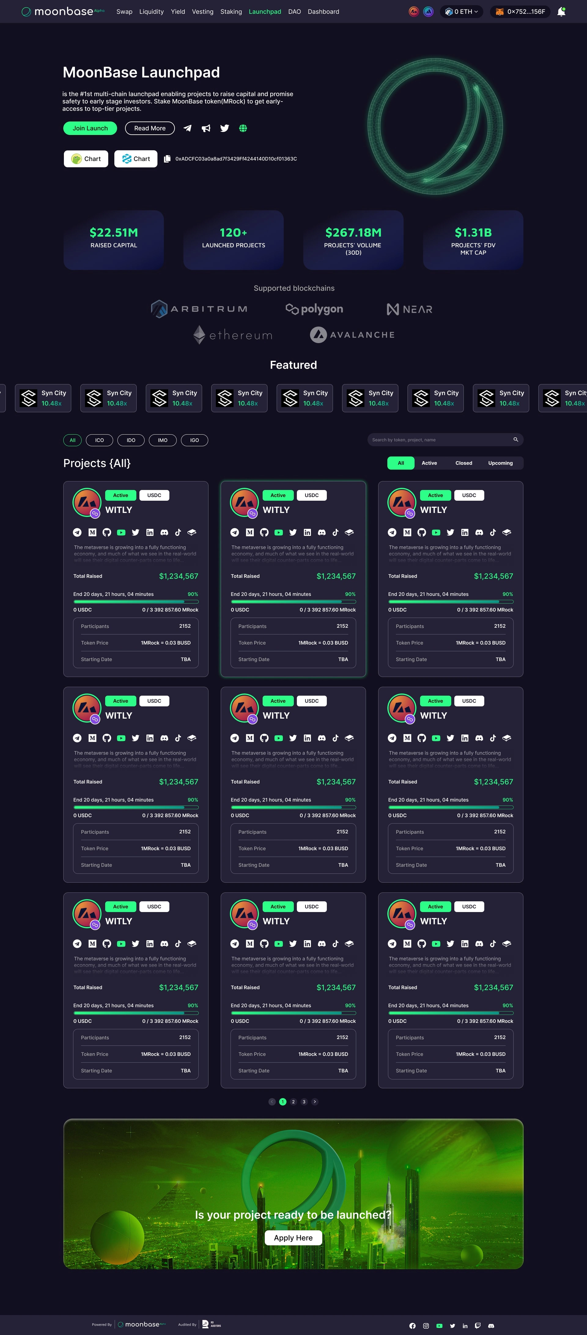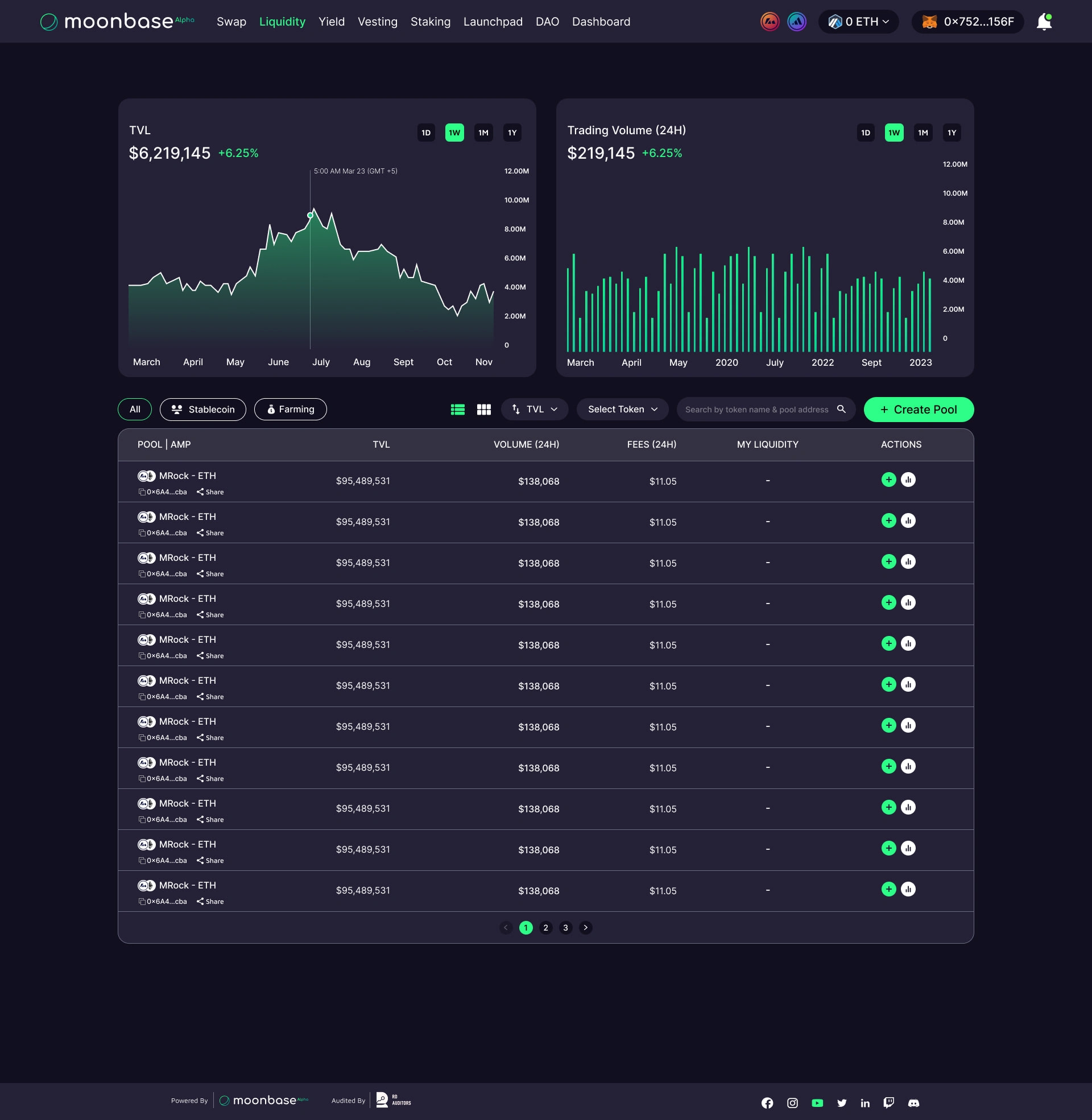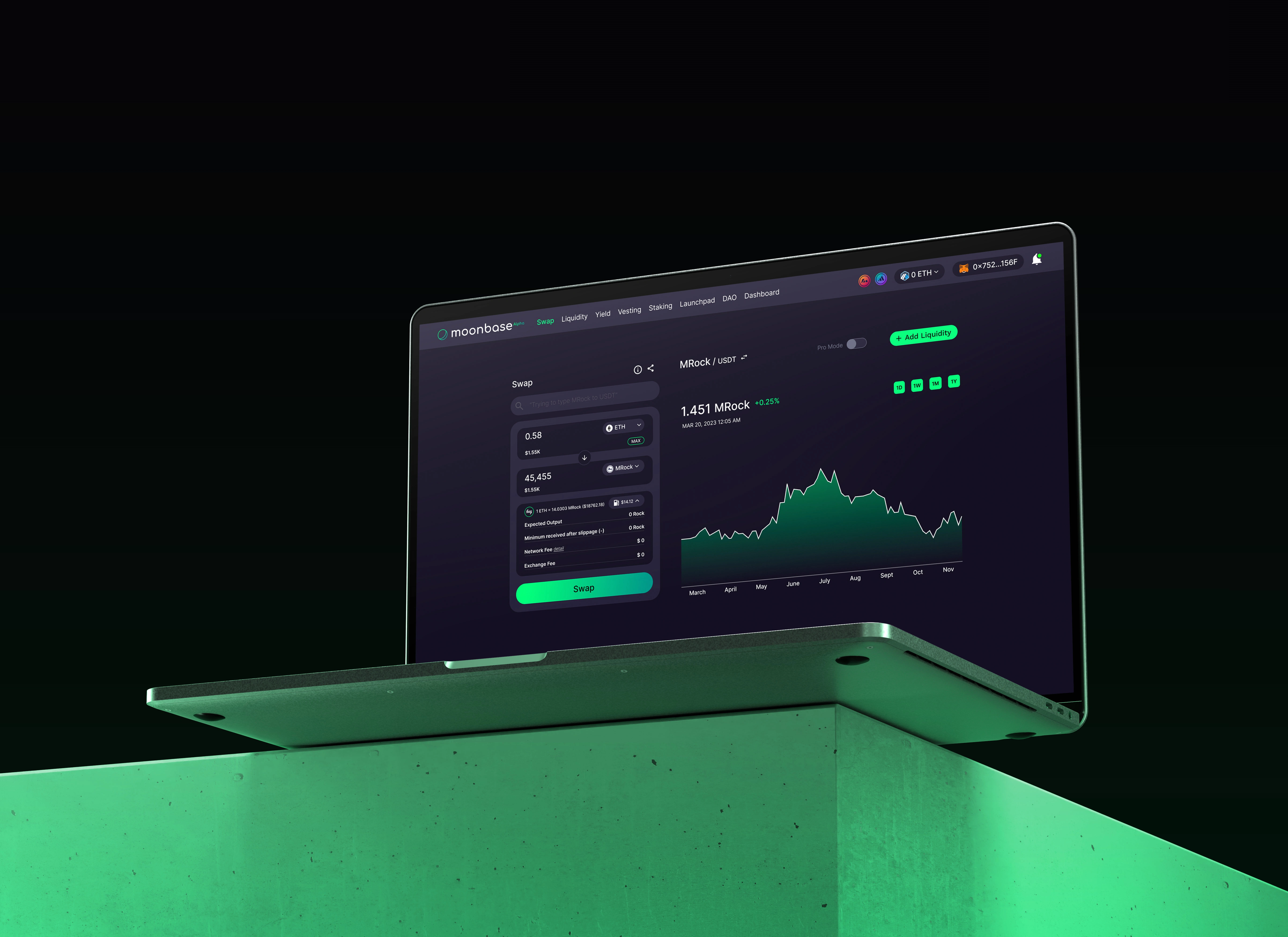Moonbase is a next-gen DEX with token swaps, a launchpad for crypto projects, and DAO governance. Trade fast, secure, and permissionless in Web3.
