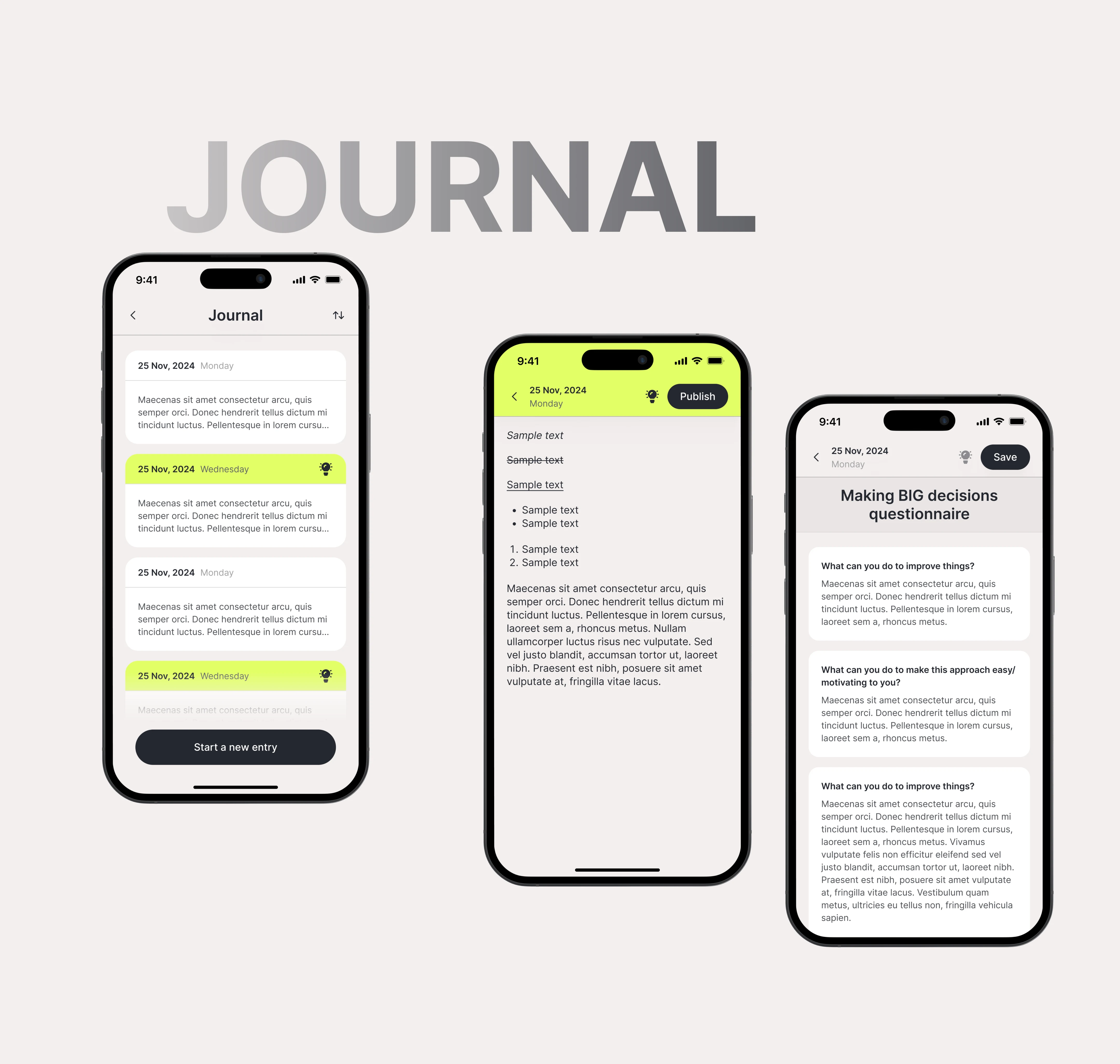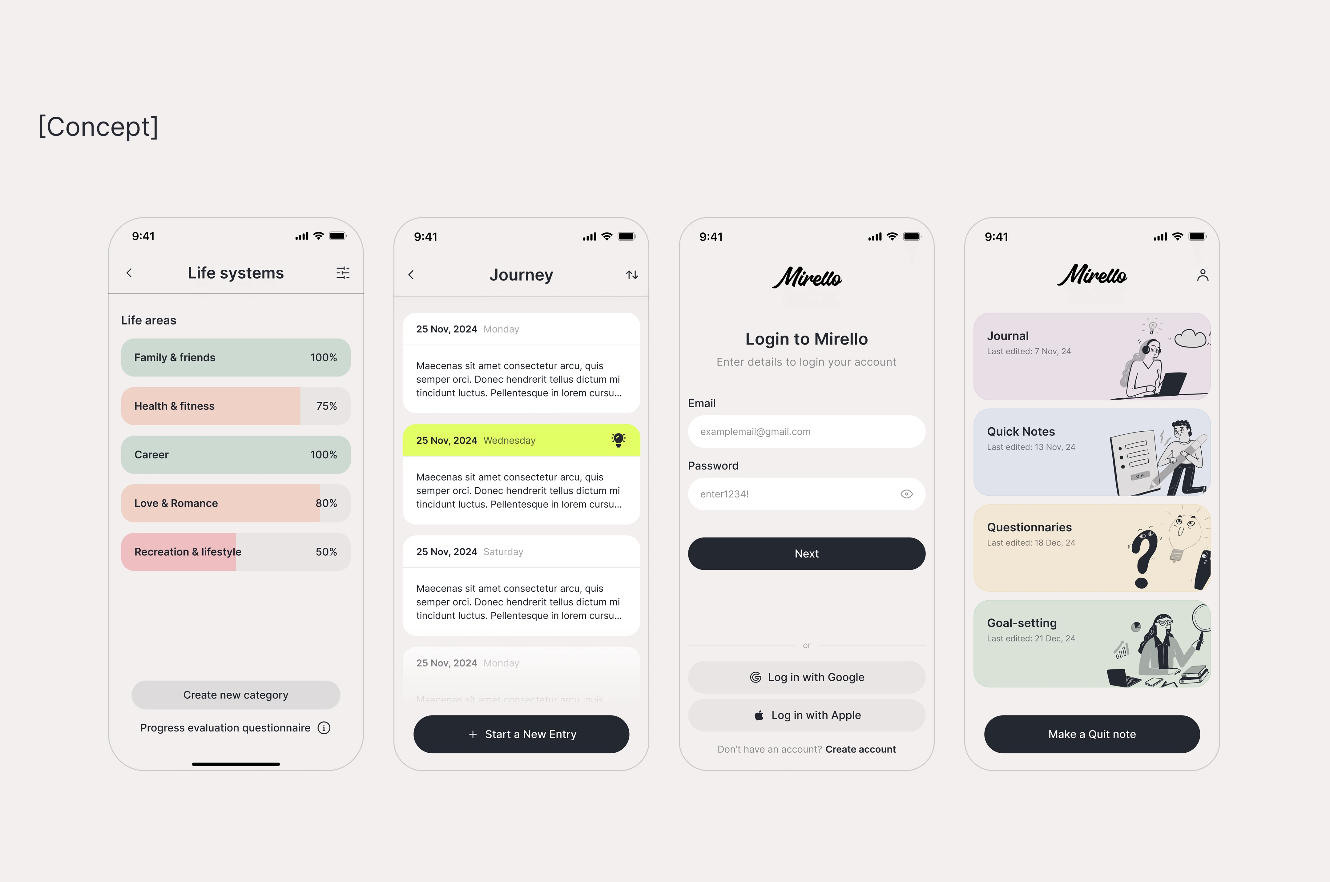 Designed a mobile app for mental wellness with journaling, affirmations, and mood tracking — promoting emotional balance and daily reflection.