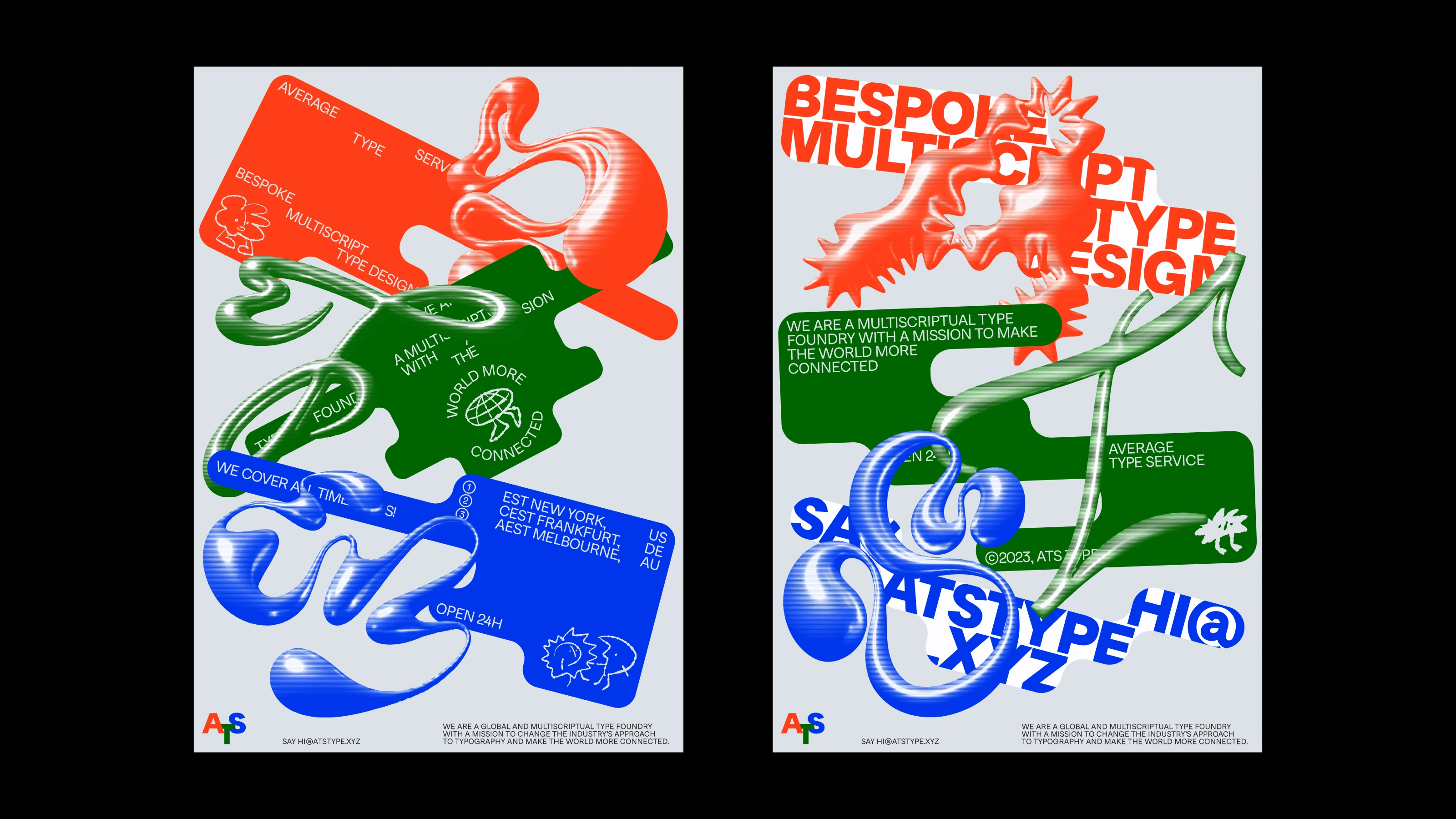 Brand identity for ATS Type, a multilingual type foundry based in New York, Melbourne and Frankfurt.
