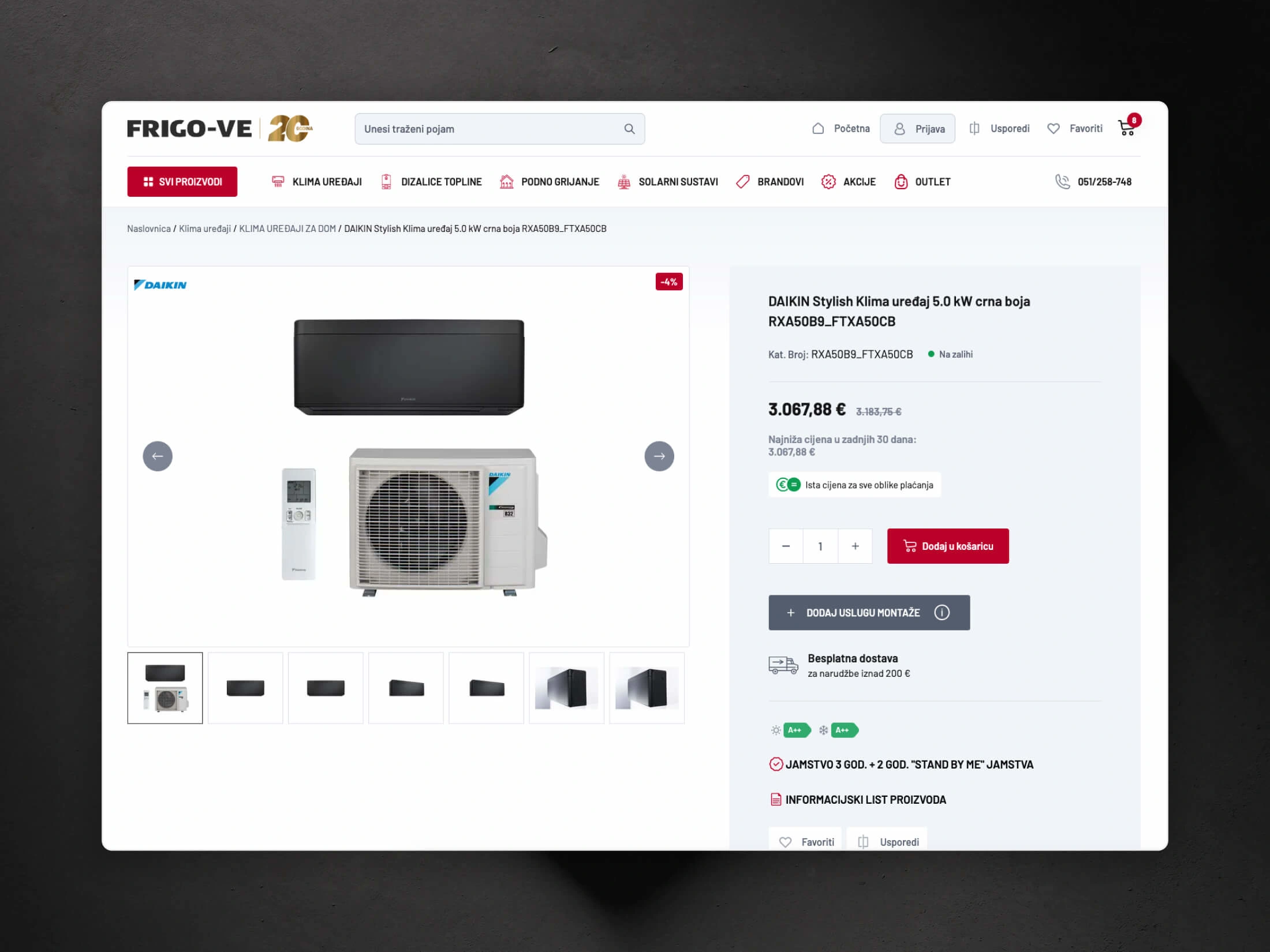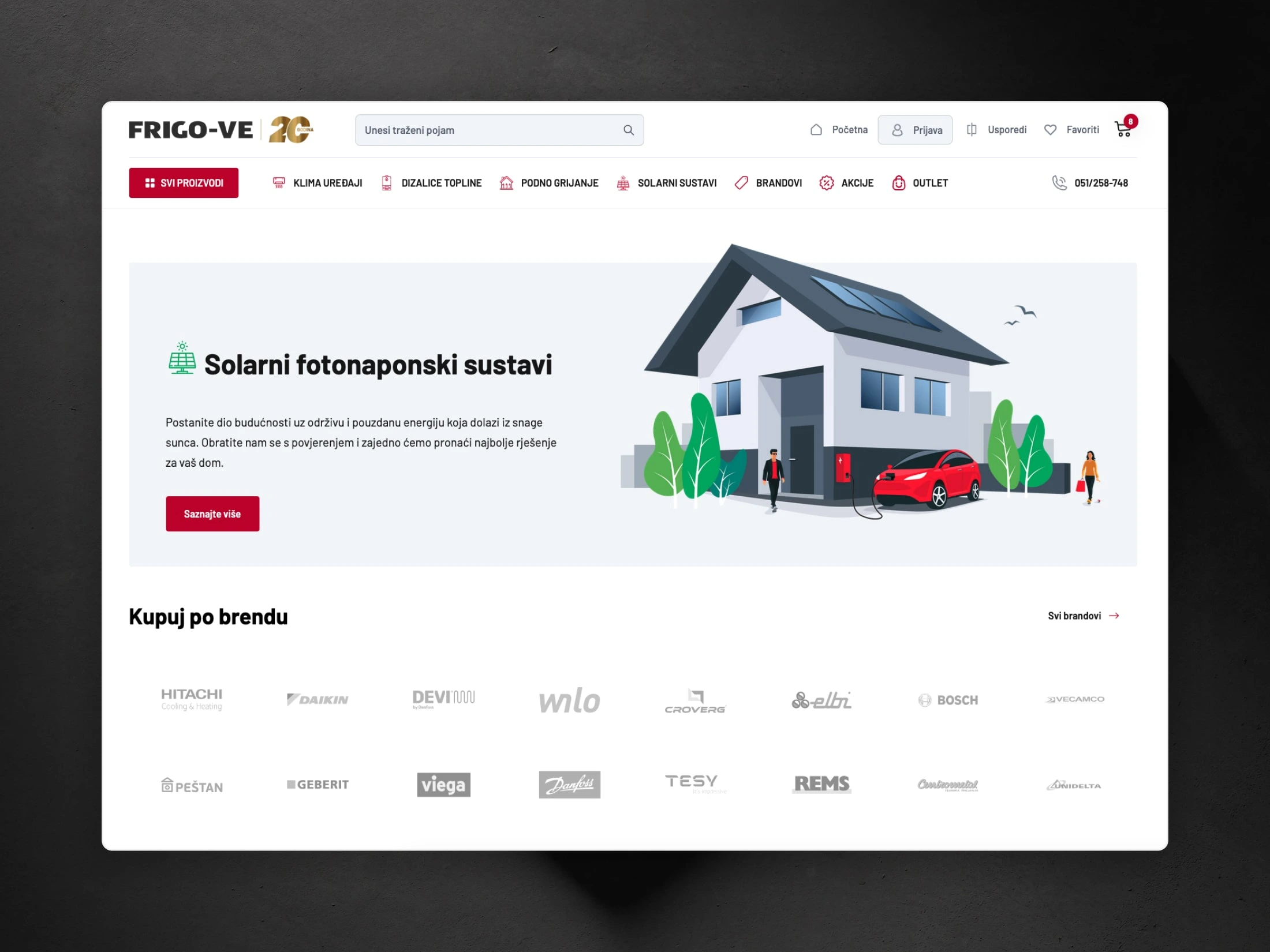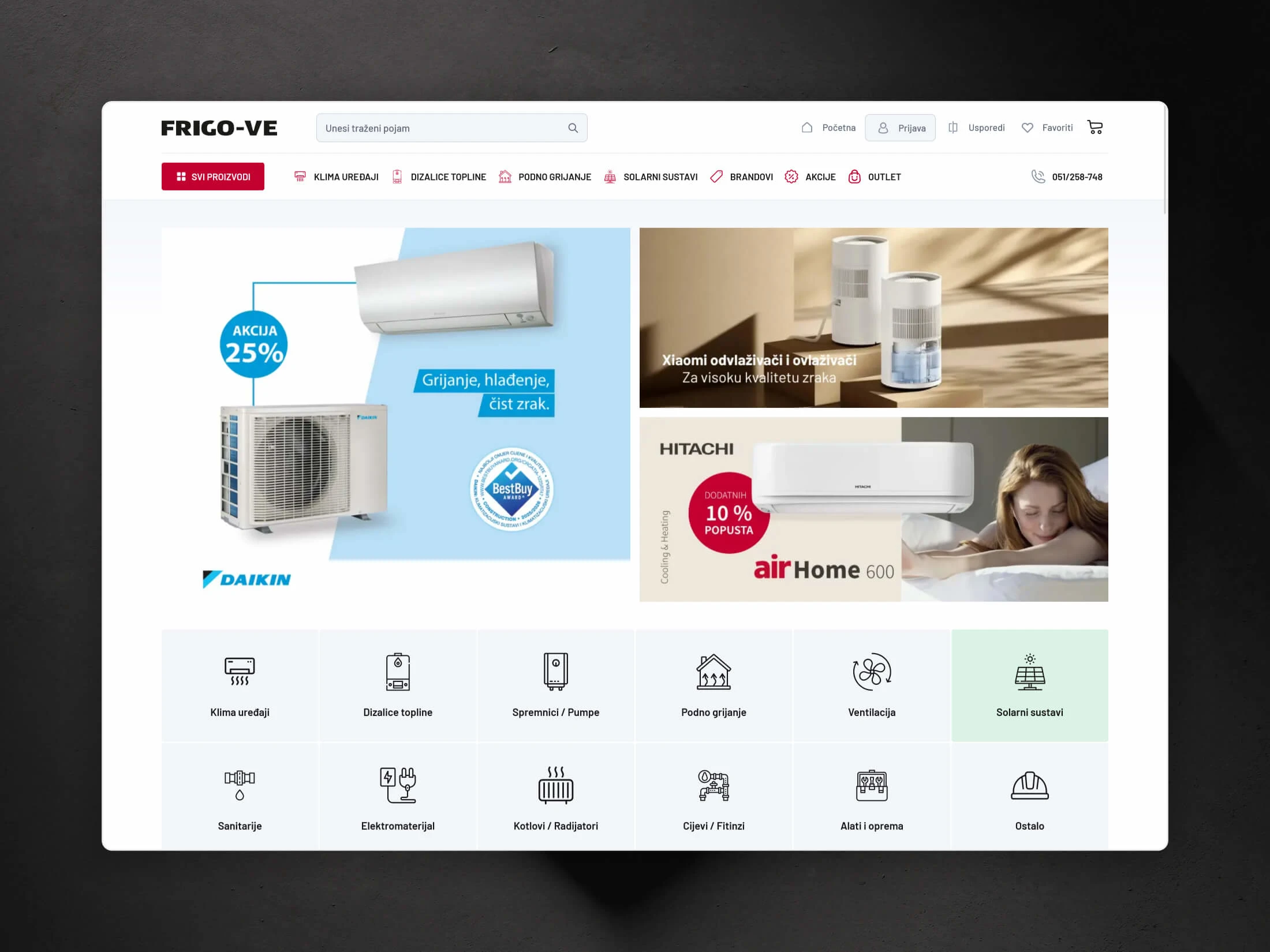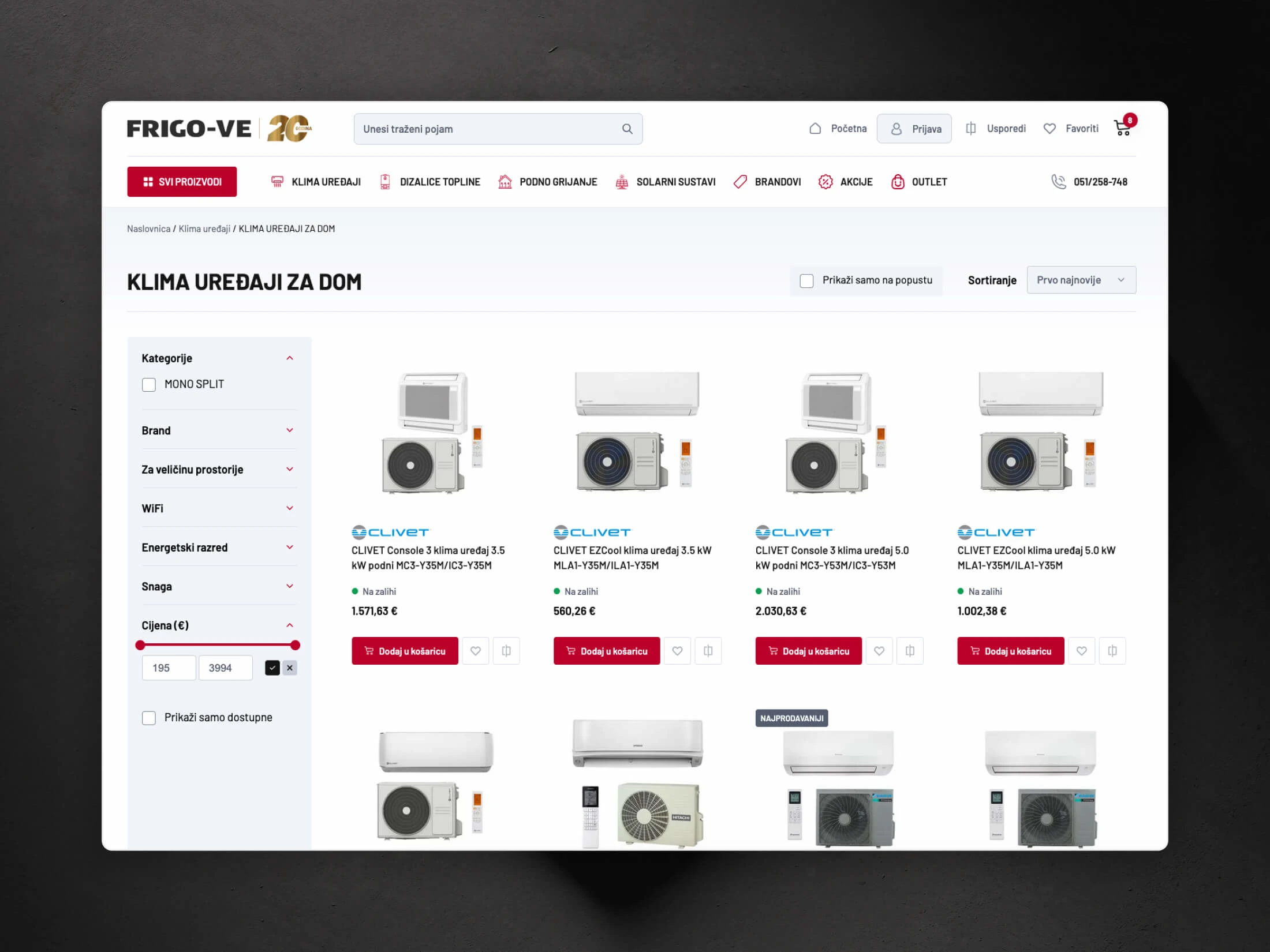 Frigo-VE d.o.o. is a Croatian company specializing in heating and air conditioning systems, with over 20 years of experience. They sought a modern, user-friendly e-commerce store to showcase their diverse product offerings, including air conditioners, heat pumps, underfloor heating systems, and solar solutions. With large number of products and categories it was imperative to create functional and ease to use website.