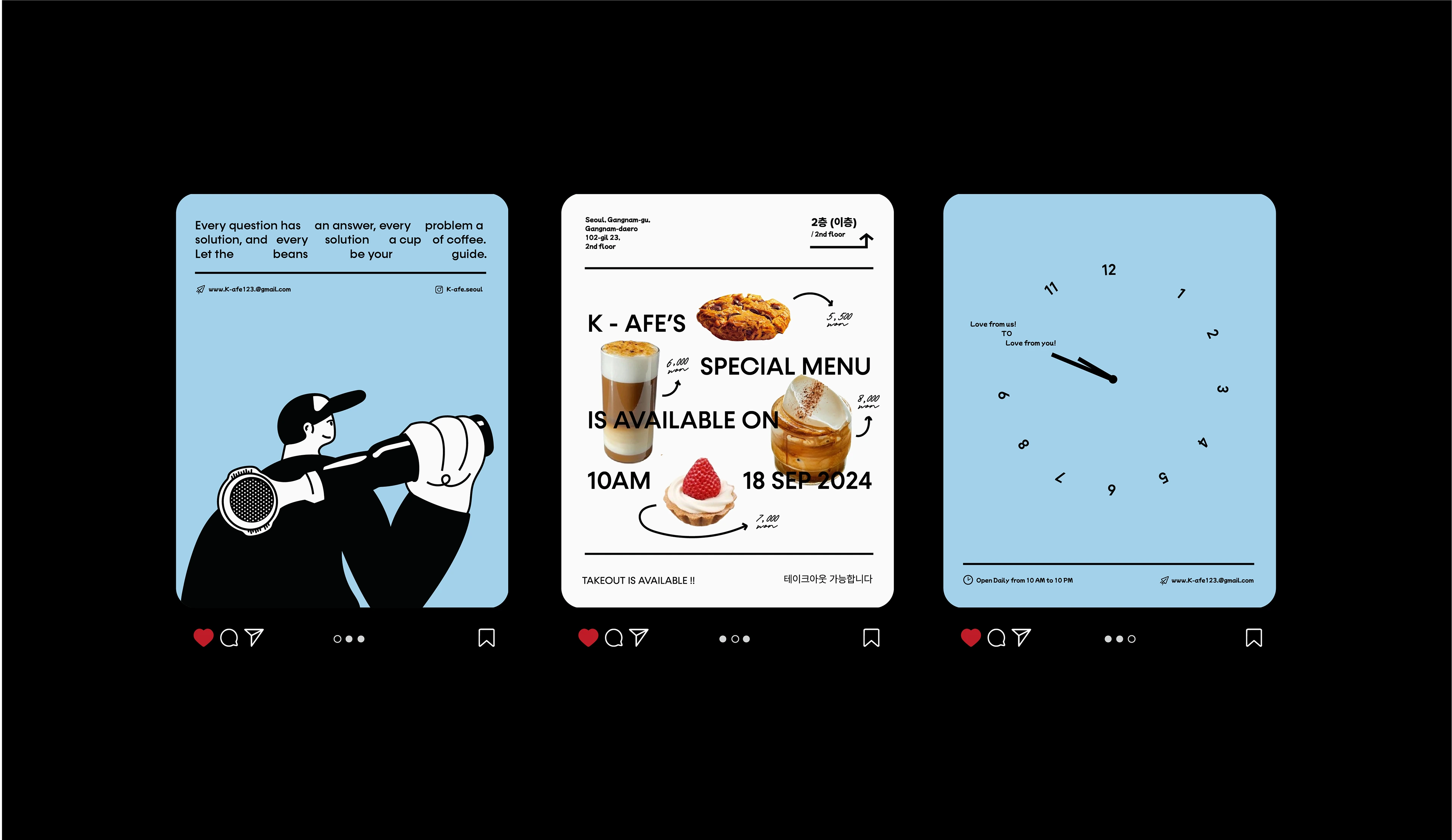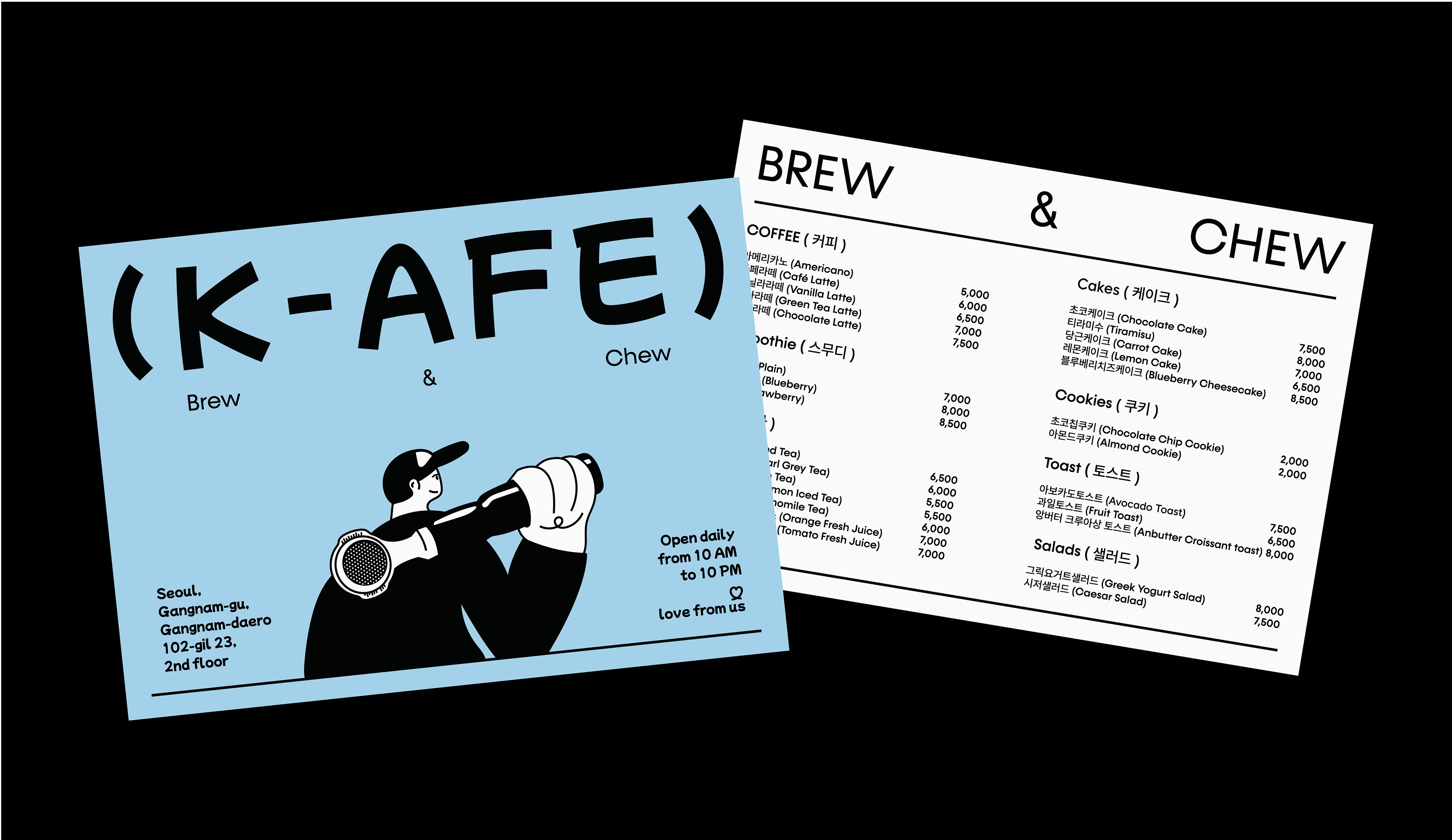 K-AFE is a vibrant Korean café that blends playful aesthetics with minimalist approach. Our brand is inspired by the youthful and energetic spirit of Korea.