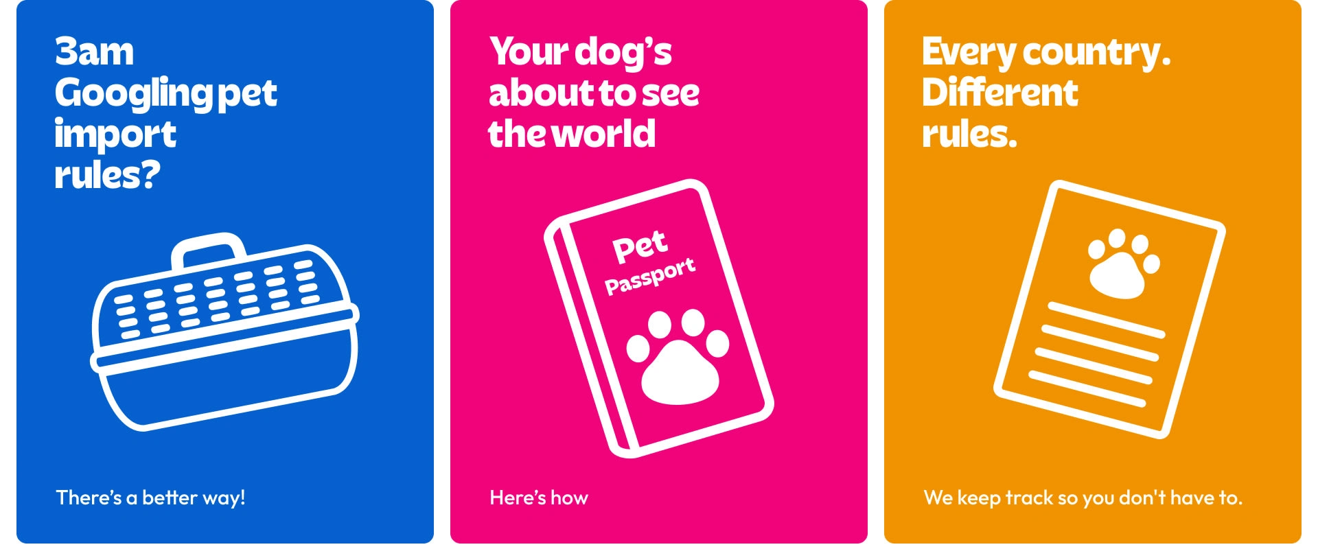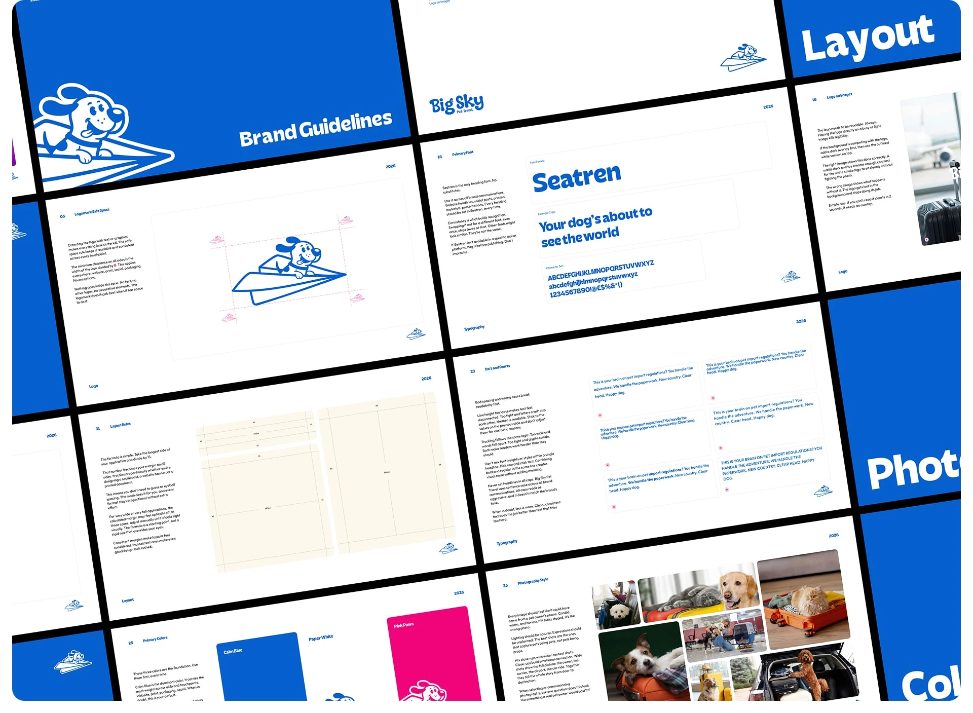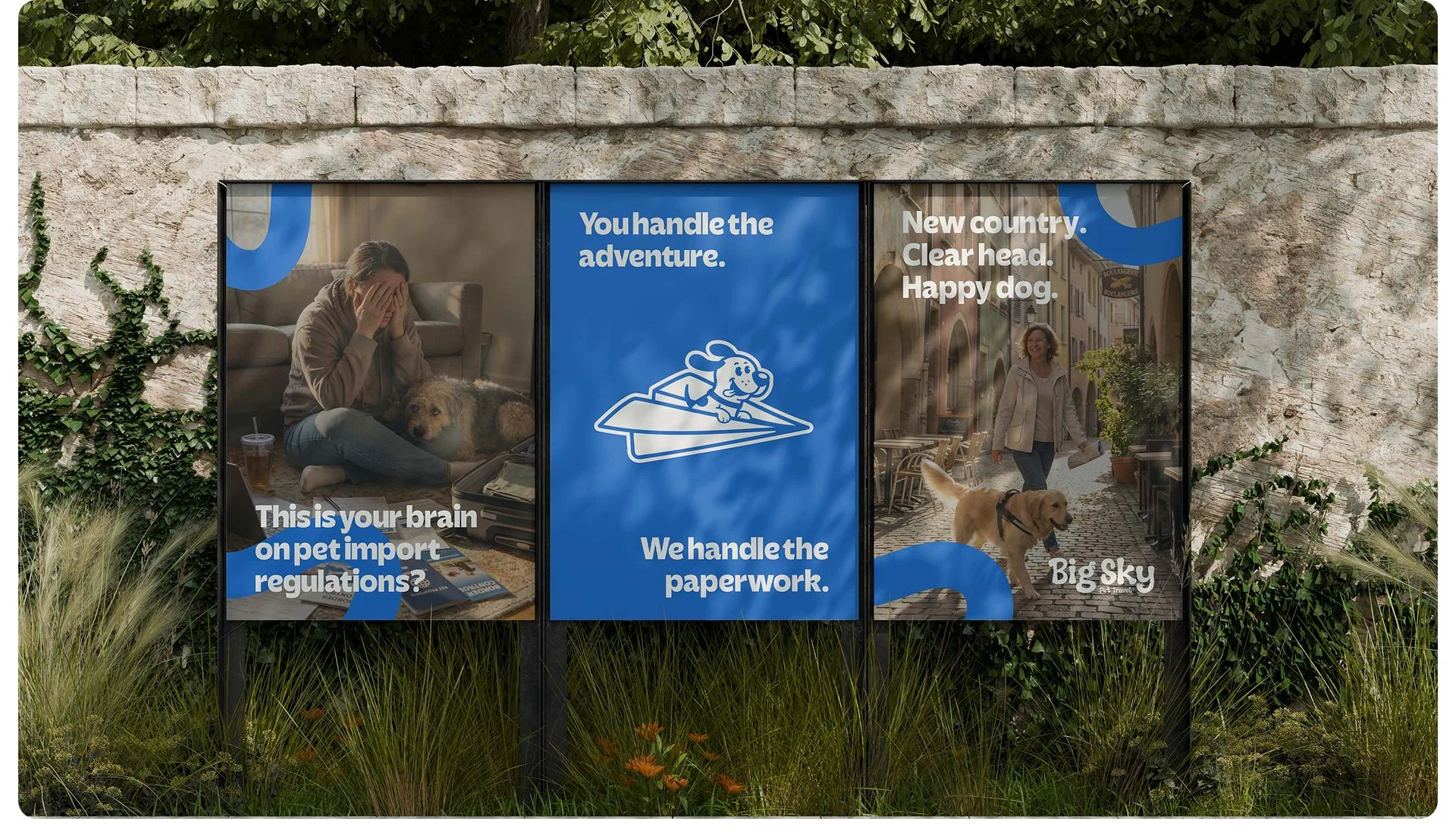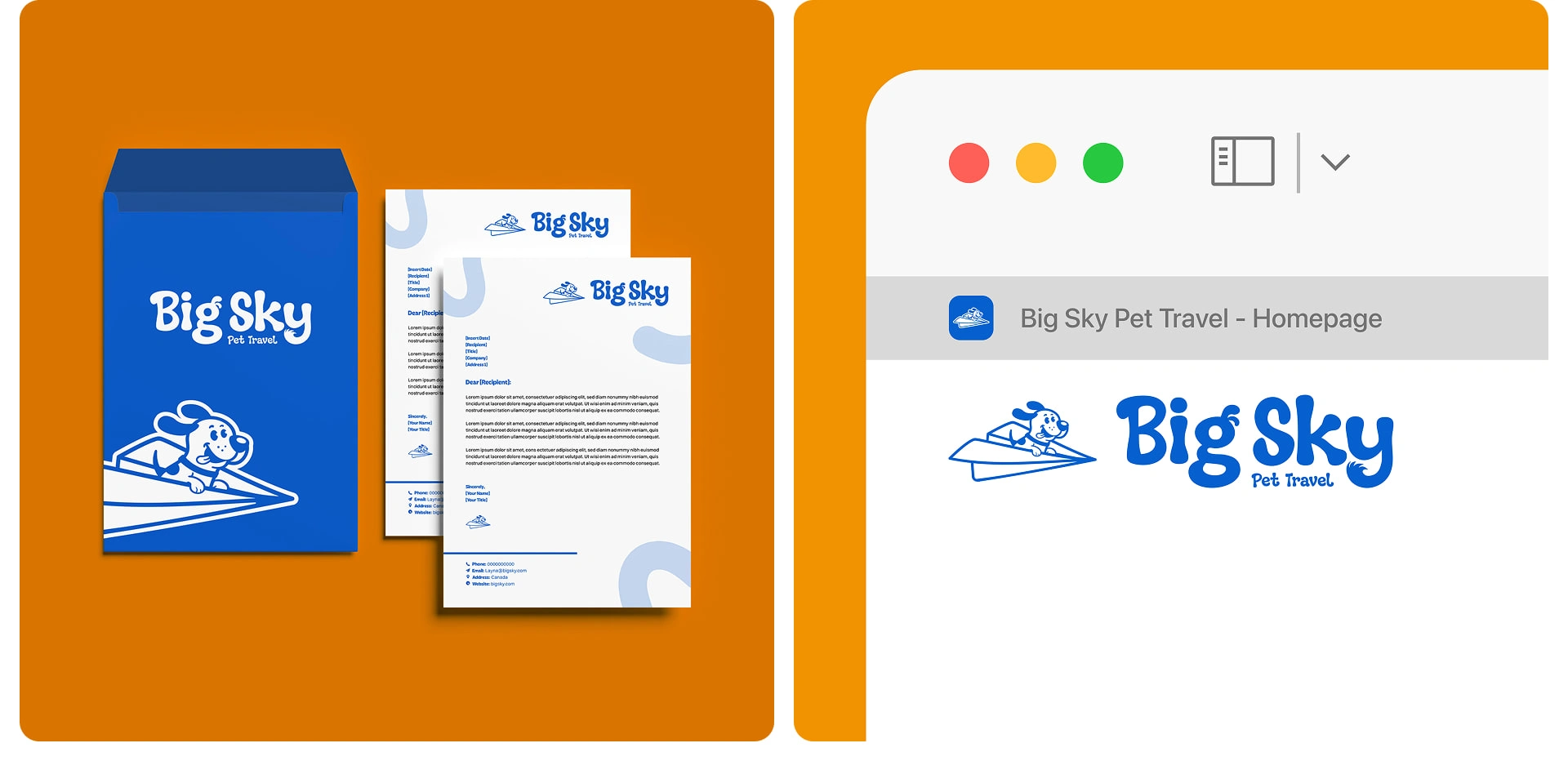 Brand identity for a Canadian pet relocation service built from scratch. Strategy, visual identity, mascot design, and messaging, all designed by me.
