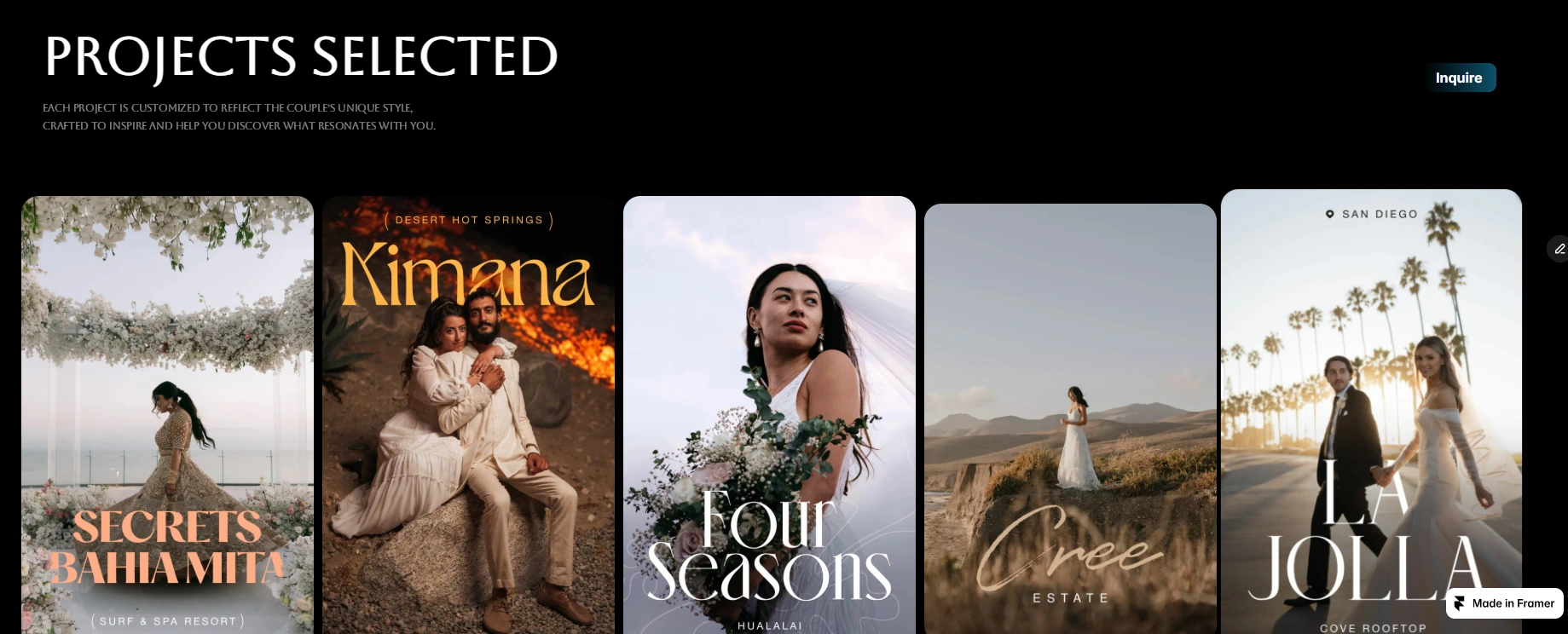 I designed and built the entire site using Framer, focusing on smooth animations, intuitive navigation, and high-impact visuals. The result is a website that feels both artistic and professional, giving couples a glimpse into the beauty and authenticity of ICC’s work.