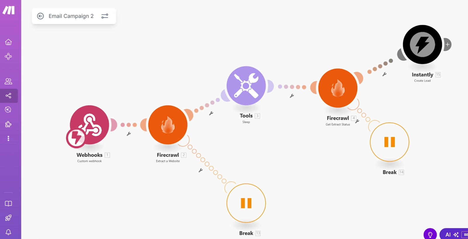 A fully automated end-to-end cold email system was built leveraging Make.com to streamline and scale outreach. The pipeline includes: